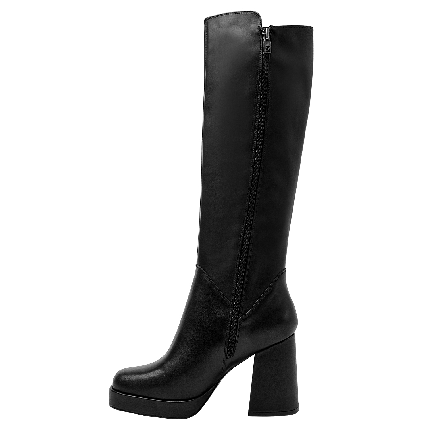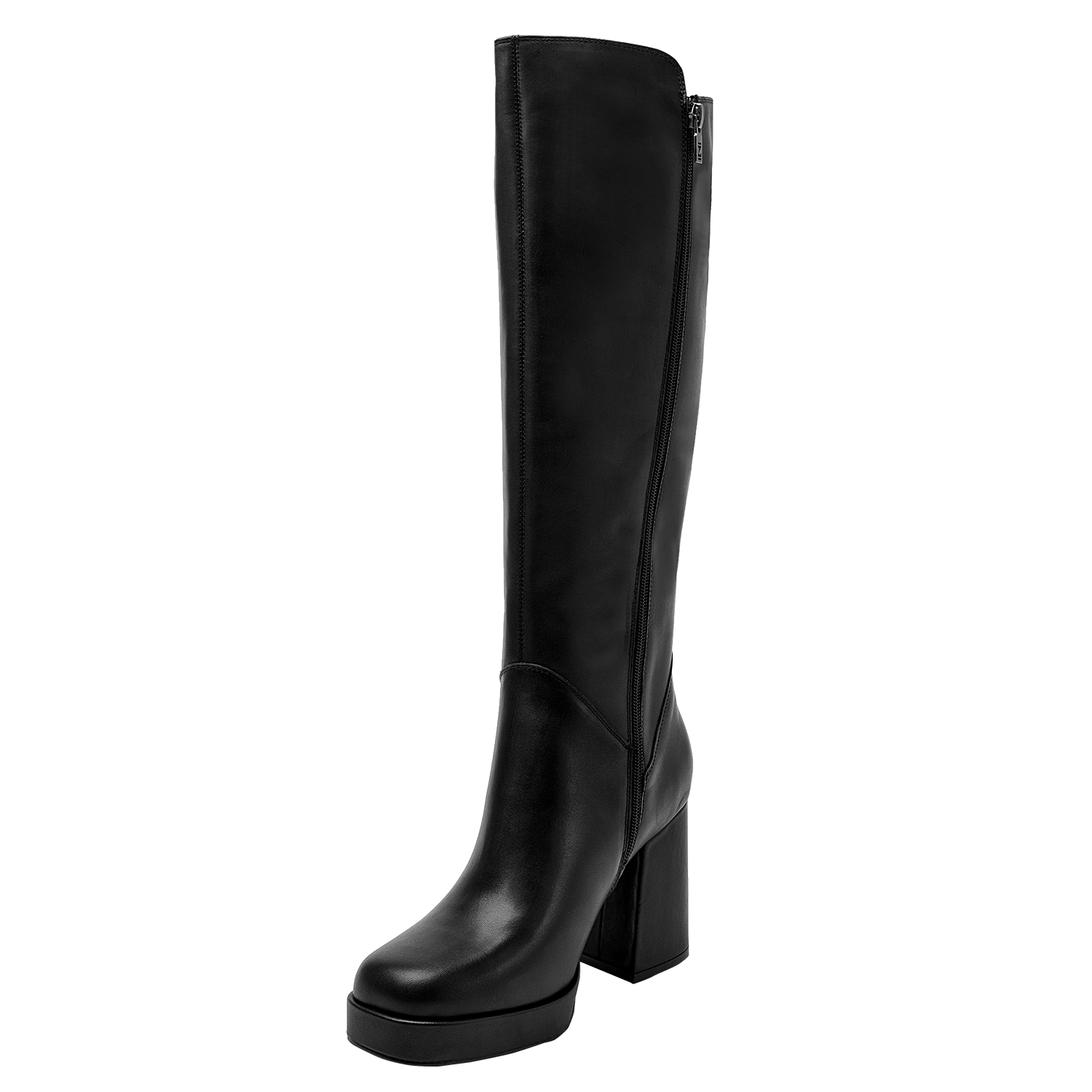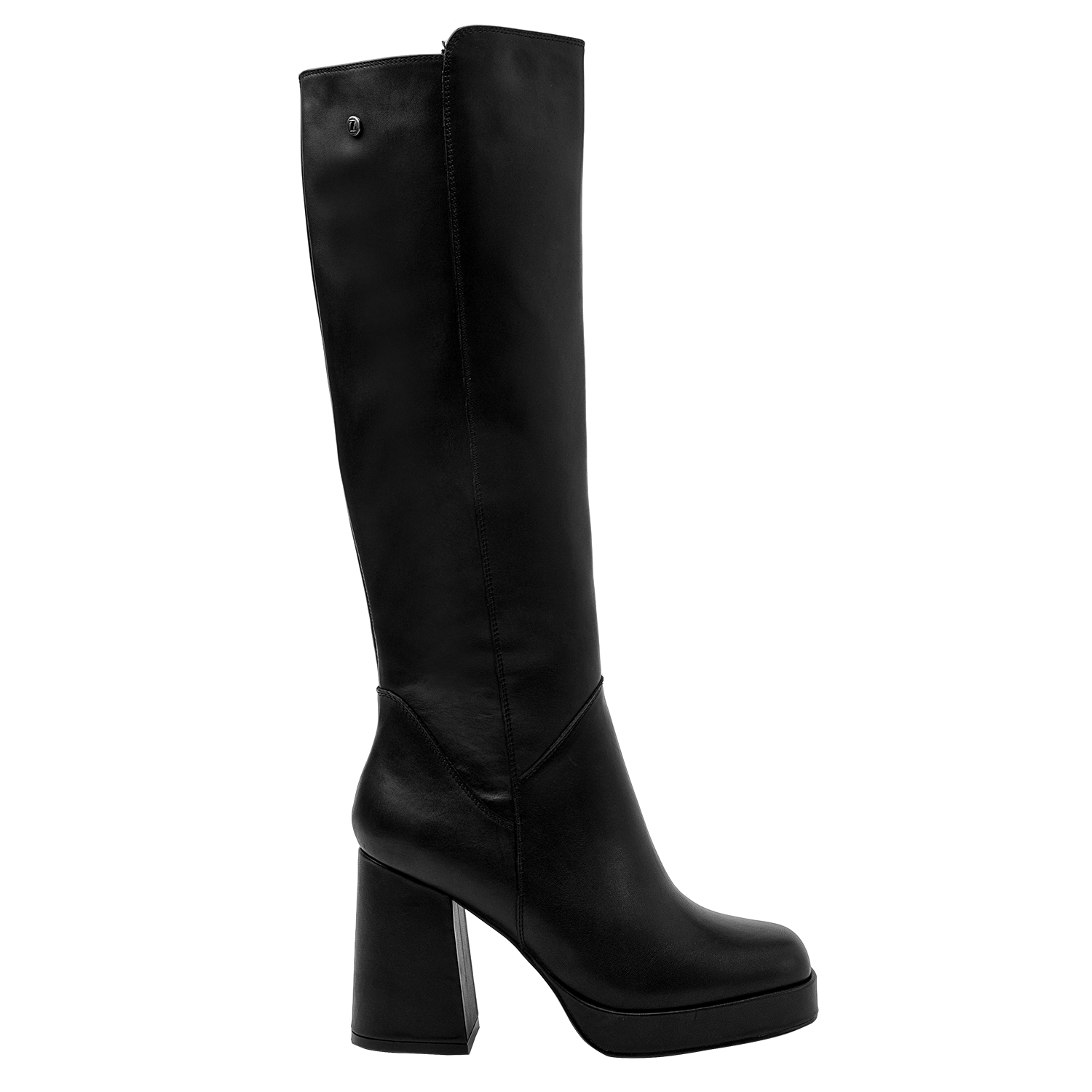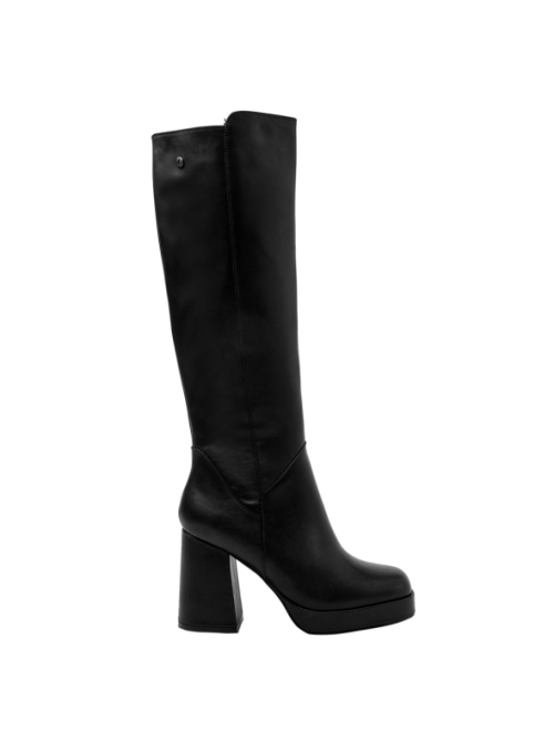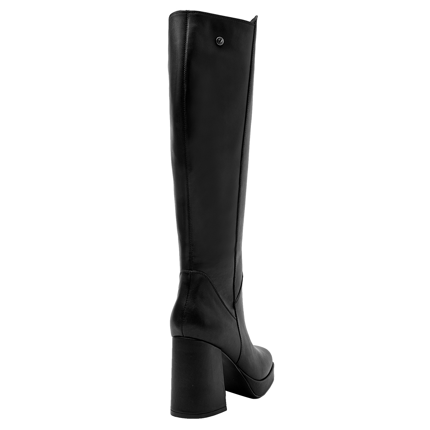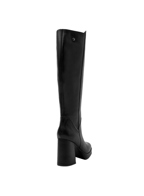 La singularidad de esta bota se atribuye a los excepcionales materiales con los que está elaborada: la capellada es 100 % cuero, de calidad premium. En su interior cuenta con un forro de textil, que añade una suavidad adicional, proporcionando una experiencia de uso sumamente confortable. El diseño se completa con un taco bloque de 9.3 cm que no solo estiliza tu figura, sino que también proyecta una presencia imponente. La punta puntiaguda y la impresionante altura de la caña con 38.5 cm brindan el equilibrio perfecto entre estilo y practicidad.