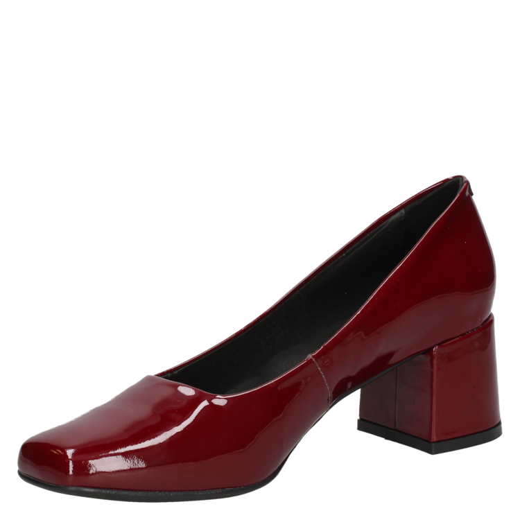 Zapato cerrado burdeo de cuero charol, sofisticado y formal, con taco grueso para estabilidad en eventos elegantes. Zapato clásico burdeo de cuero charol, taco grueso y sin adornos, ideal para un look estructurado en ambientes formales. Zapato burdeo de charol, diseño minimalista stiletto, ideal para entrevistas y cenas de gala. Zapato de mujer burdeo en charol de cuero, diseño clásico y elegante con taco grueso, ideal para eventos formales. Calzado burdeo tipo stiletto de cuero charol, estilo minimalista, perfecto para reuniones laborales y ocasiones discretas.