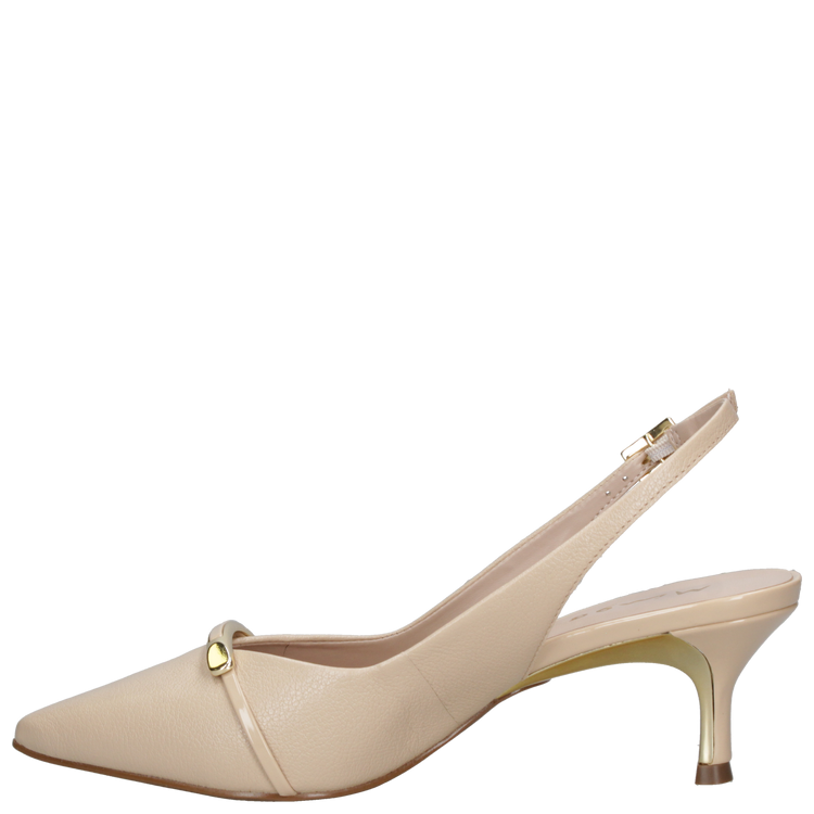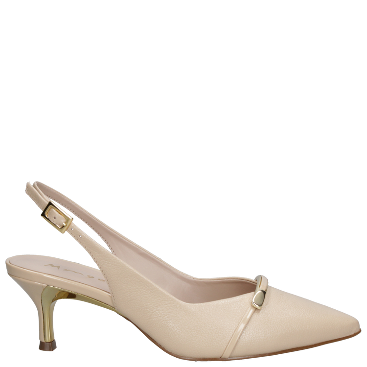 El material exterior utilizado en su elaboración es 100% cuero de alta calidad, trabajado para que sea suave al contacto con la piel. Su forro es de sintético, que aporta suavidad extra. Posee un taco aguja de 5.5 cm, punta puntiaguda y no posee altura de caña en su diseño. Un conjunto de características que lo hacen perfecto.