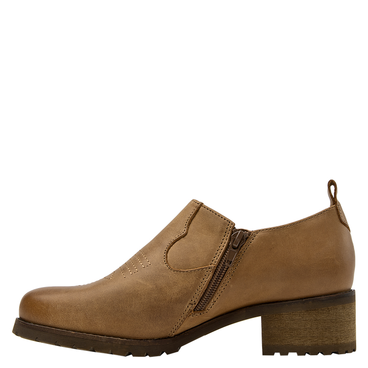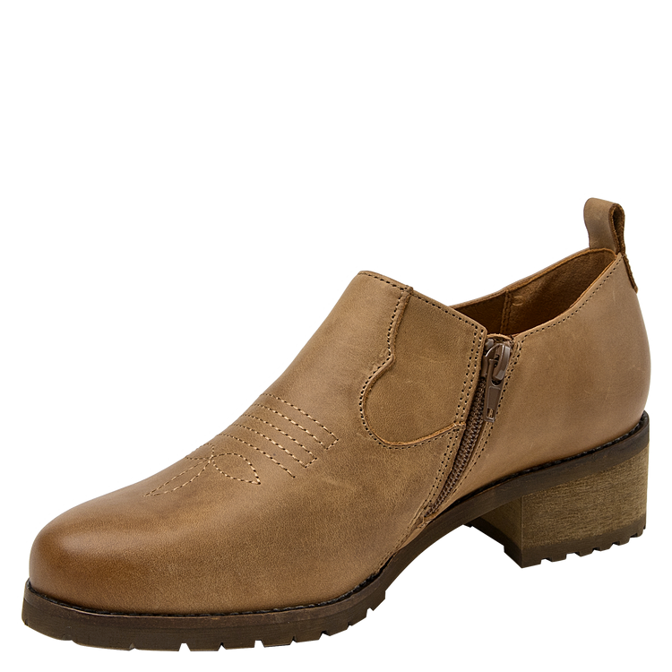 El material exterior utilizado para su elaboración es 100% cuero, de calidad premium. El taco tipo bloque de 4.5 cm proporciona una elevación cómoda y estable, que junto con su suela ofrece un excelente agarre en distintas superficies. Para disfrutar de una sensación de confort en cada paso, cuenta con un suave forro de poliuretano, punta redonda y una altura de caña de 8 cm.