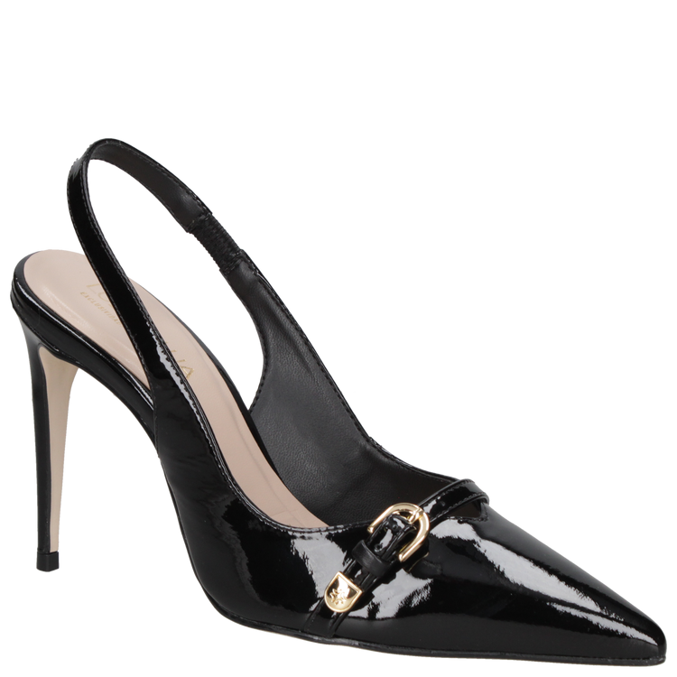 Elaborado en cuero charol premium de alta calidad, este zapato destaca por su acabado impecable y gran durabilidad. Su interior con forro sintético brinda suavidad y confort en cada paso. El diseño se eleva con un taco aguja de 10 cm que estiliza la figura y aporta una elegancia imponente, complementado por una punta fina y una caña de altura media que refuerzan su estilo moderno y sofisticado. Ya sea para una reunión de negocios, una cena elegante o un evento social, en nuestro catálogo podrás encontrar el zapato de cuero, con taco o el zapato con plataforma perfecto para cada ocasión.