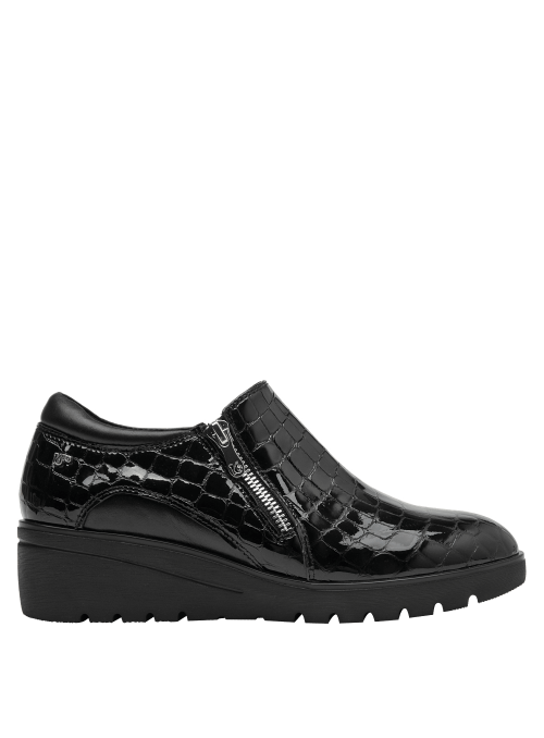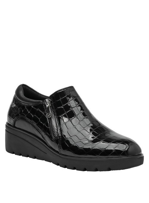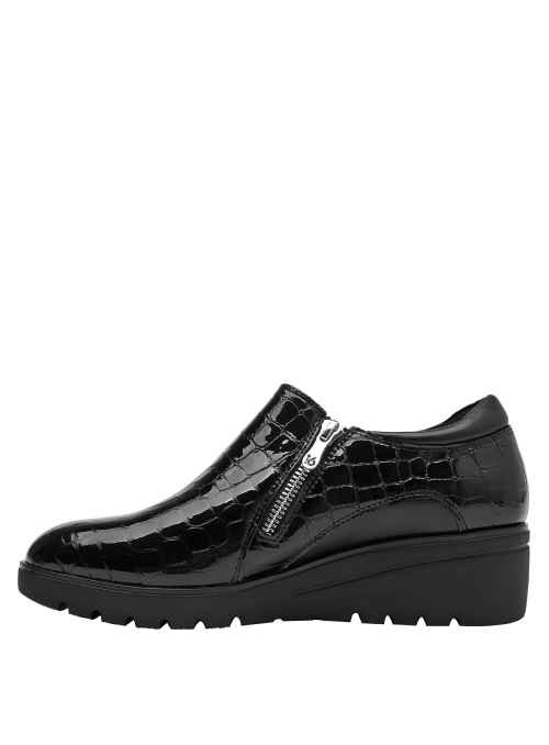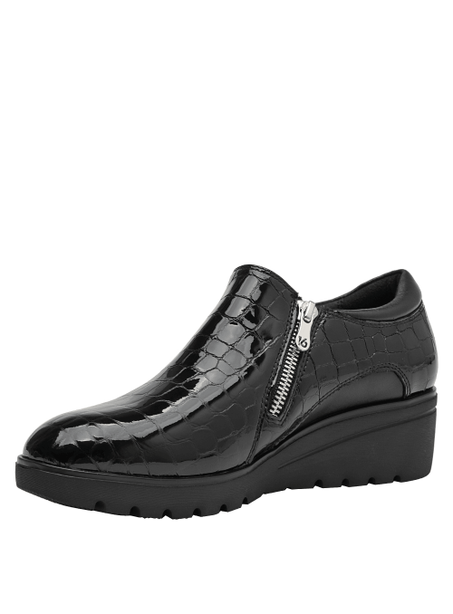 El zapato de mujer de 16HRS L115 es la elección perfecta para quienes buscan un calzado que combine elegancia y funcionalidad. Diseñado con un estilo casual y clásico, este zapato se adapta a cualquier ocasión, desde compromisos diarios hasta salidas informales. Su exterior de cuero charol y su diseño tipo botín bajo con cierre lateral aseguran un ajuste cómodo y fácil. La altura del taco de 5 cm añade un toque de sofisticación, mientras que la suela gruesa y antideslizante proporciona estabilidad en cada paso. Además, el forro interno de microfibra garantiza suavidad y confort. Con un acabado de imitación de piel de cocodrilo, este zapato no solo es práctico sino también elegante, ideal para el uso diario.