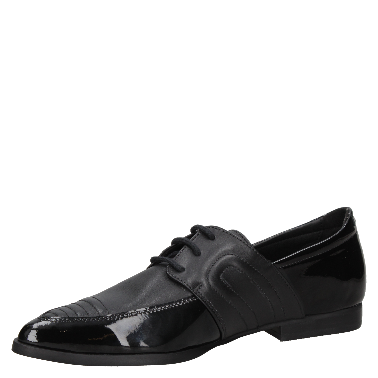 El zapato oxford de mujer de Mingo L450 redefine el estilo clásico con su diseño tipo oxford, ideal para quienes buscan una apariencia pulida y elegante. Con una estructura cerrada y cordones, este zapato se presenta con una suela baja y un aspecto formal que se complementa con detalles de costura en la parte frontal y una punta puntiaguda ligeramente alargada. Fabricado en cuero, su acabado en charol añade un toque de sofisticación sin necesidad de elementos decorativos sobresalientes, lo que lo convierte en un accesorio esencial para un look "smart casual" o de oficina.