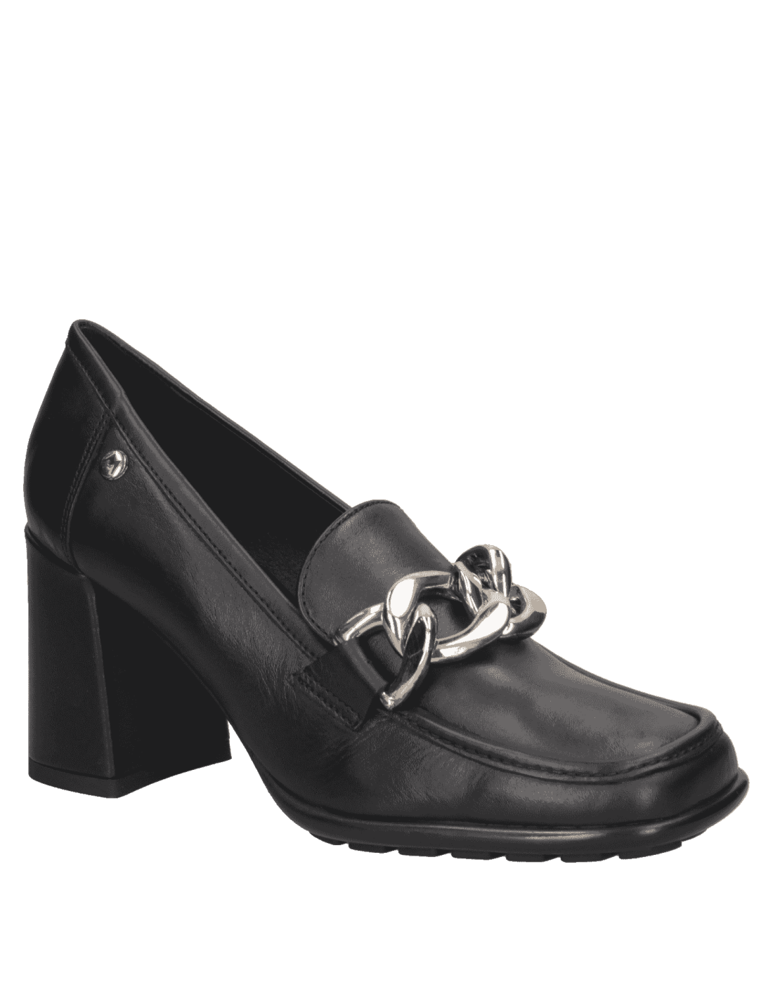 Descubre la elegancia atemporal del mocasín de mujer Mingo L448, que fusiona lo clásico con lo moderno. Este mocasín, confeccionado con un exterior de cuero, presenta un taco bloque de altura media de 8 cm, proporcionando la estabilidad y comodidad ideales para el día a día. Su diseño se distingue por una cadena decorativa de gran tamaño y acabado brillante en el empeine, que añade un toque contemporáneo y sofisticado. Perfecto para quienes buscan un ""mocasín de cuero elegante para mujer"", este calzado es la elección perfecta para elevar cualquier atuendo.