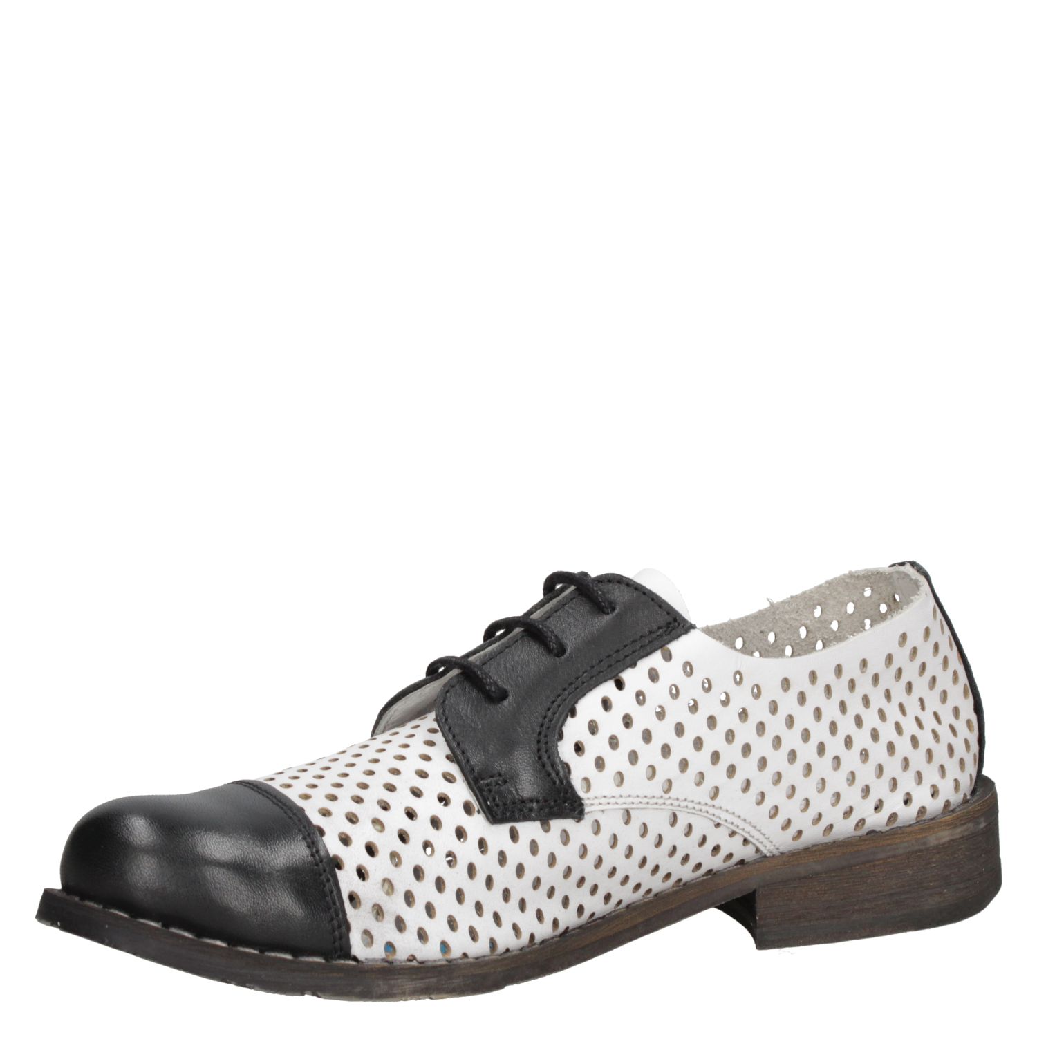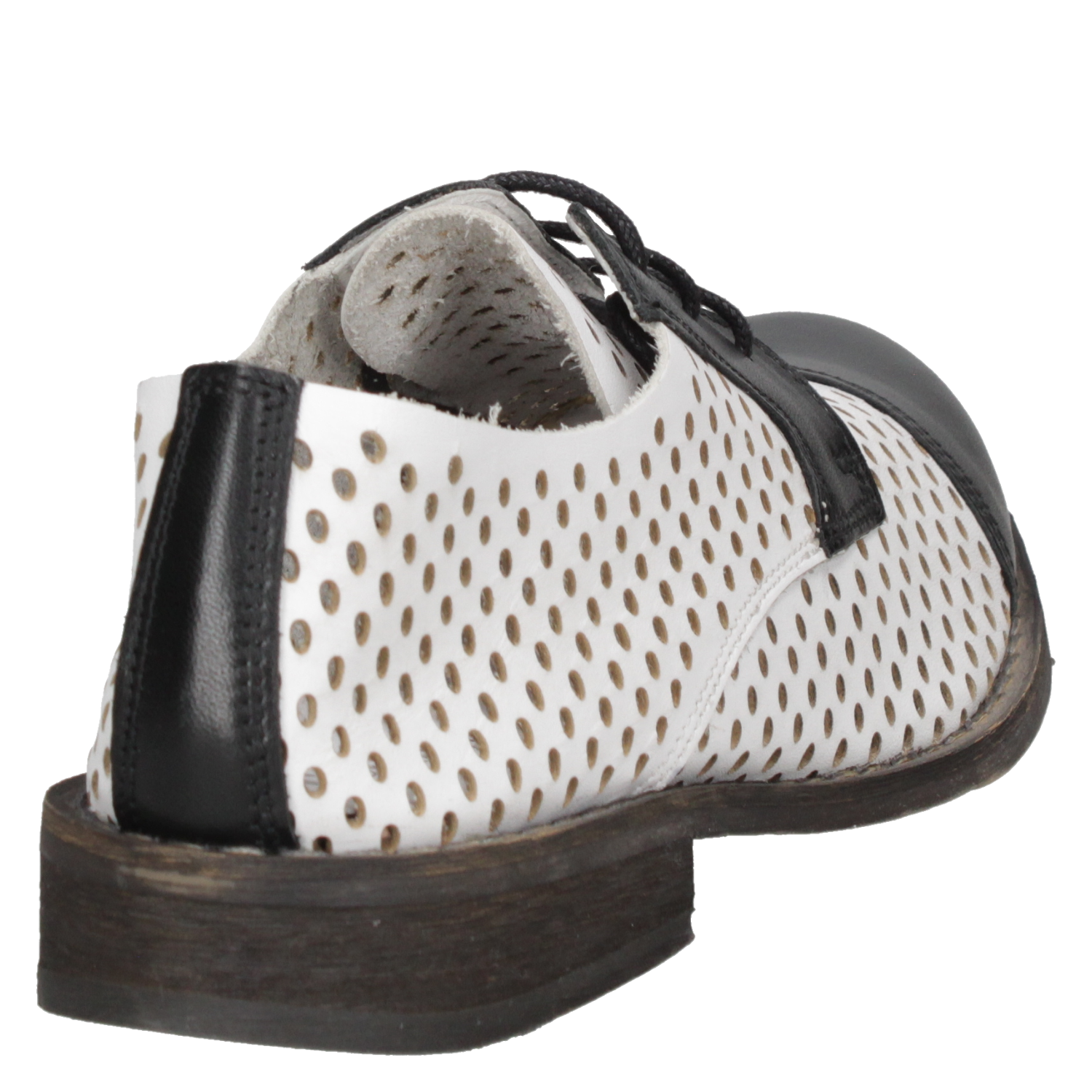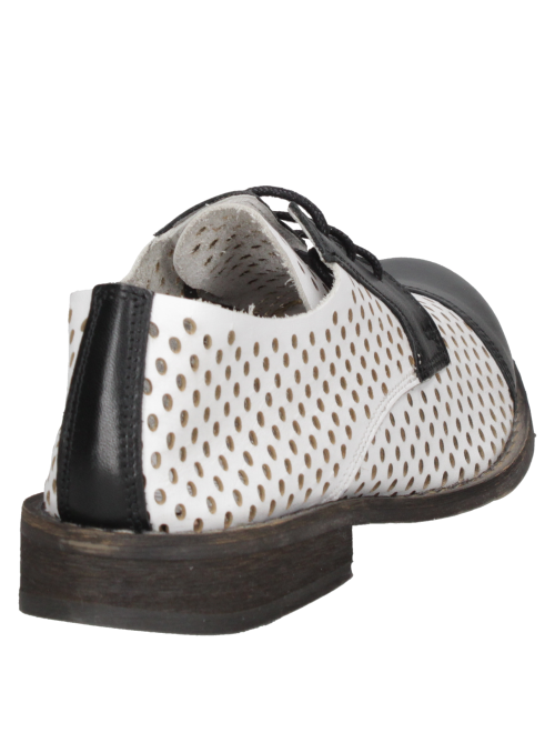 Descubre la elegancia atemporal con un toque moderno en el zapato de mujer de Felmini. Este diseño tipo Oxford, confeccionado en 100 % cuero, fusiona lo clásico con lo atrevido gracias a su diseño perforado que no solo es visualmente impactante, sino que también mejora la transpirabilidad. Los contrastes entre el área del talón y la puntera añaden un interés visual único, mientras que sus cordones formales y su suela robusta de taco bajo de 2 cm refuerzan su carácter contemporáneo. Ideal para combinar con pantalones culotte, faldas lápiz o vestidos camiseros, este zapato es perfecto para el trabajo, reuniones profesionales o eventos culturales, y se convierte en la elección perfecta para quienes buscan originalidad y estilo en su día a día. SKU: J565.