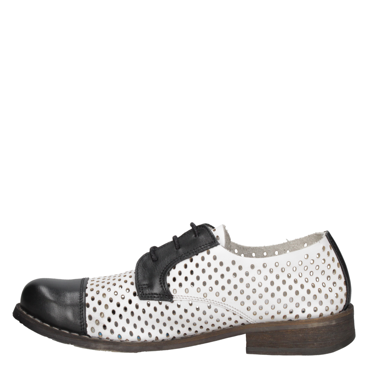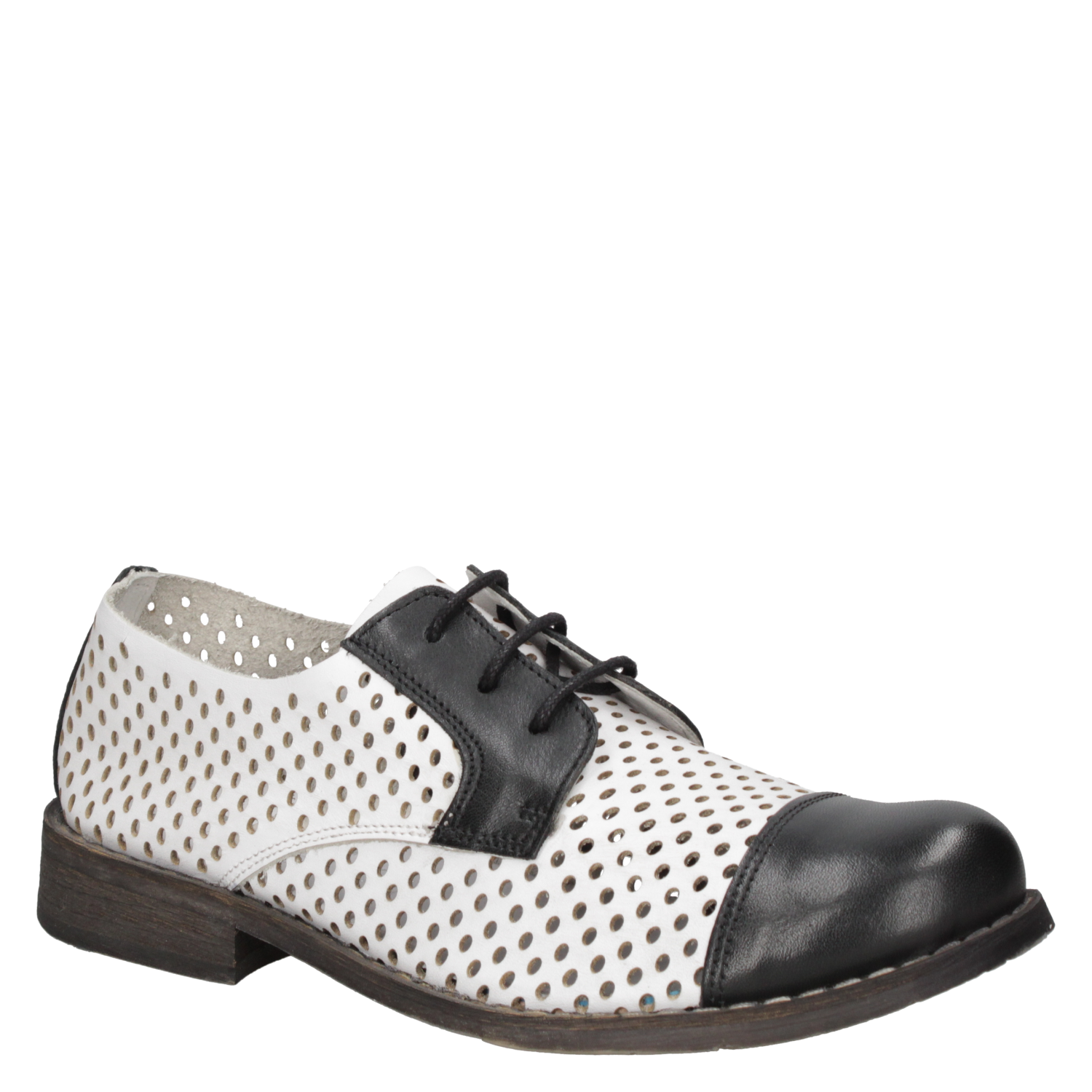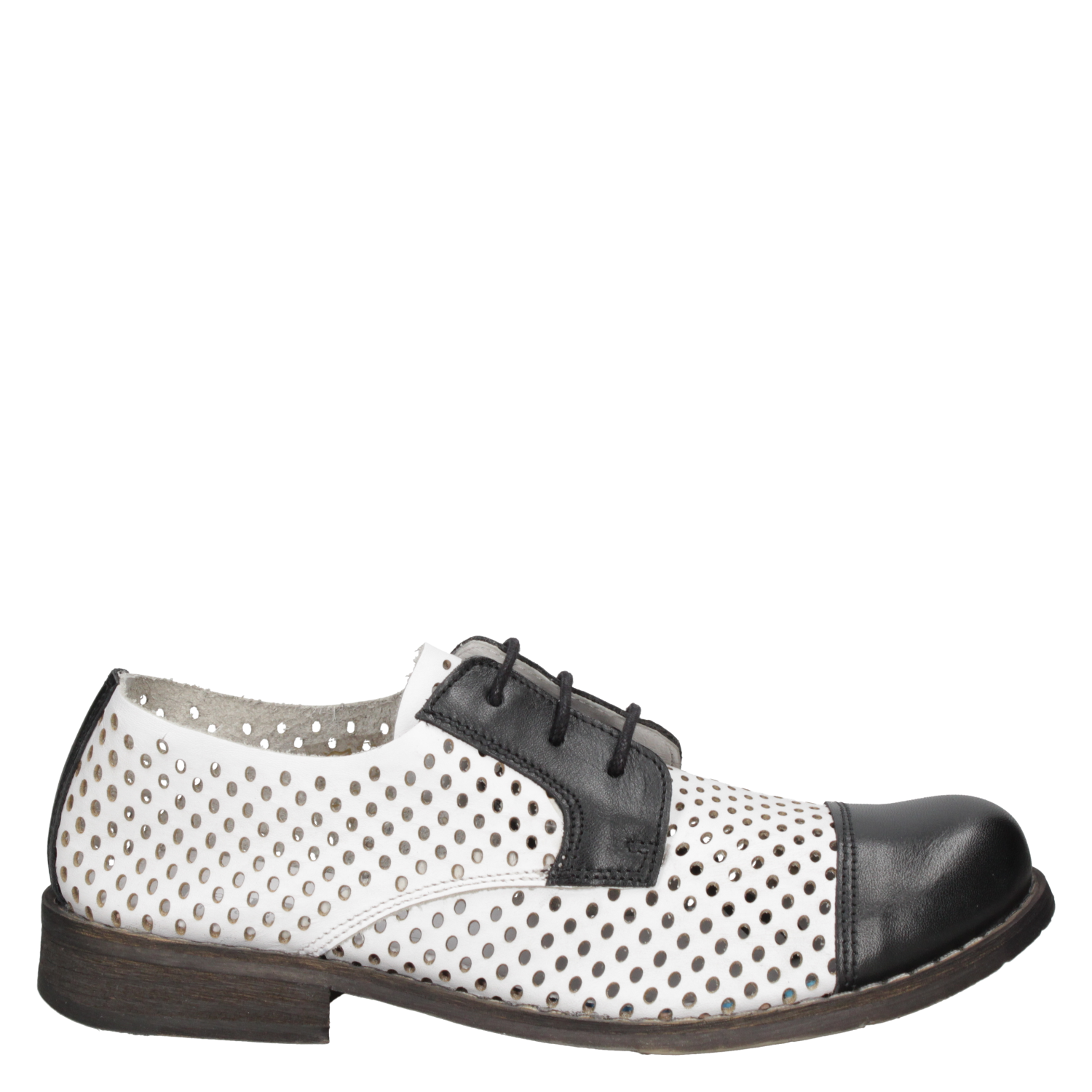 Descubre la elegancia atemporal con un toque moderno en el zapato de mujer de Felmini. Este diseño tipo Oxford, confeccionado en 100 % cuero, fusiona lo clásico con lo atrevido gracias a su diseño perforado que no solo es visualmente impactante, sino que también mejora la transpirabilidad. Los contrastes entre el área del talón y la puntera añaden un interés visual único, mientras que sus cordones formales y su suela robusta de taco bajo de 2 cm refuerzan su carácter contemporáneo. Ideal para combinar con pantalones culotte, faldas lápiz o vestidos camiseros, este zapato es perfecto para el trabajo, reuniones profesionales o eventos culturales, y se convierte en la elección perfecta para quienes buscan originalidad y estilo en su día a día. SKU: J565.