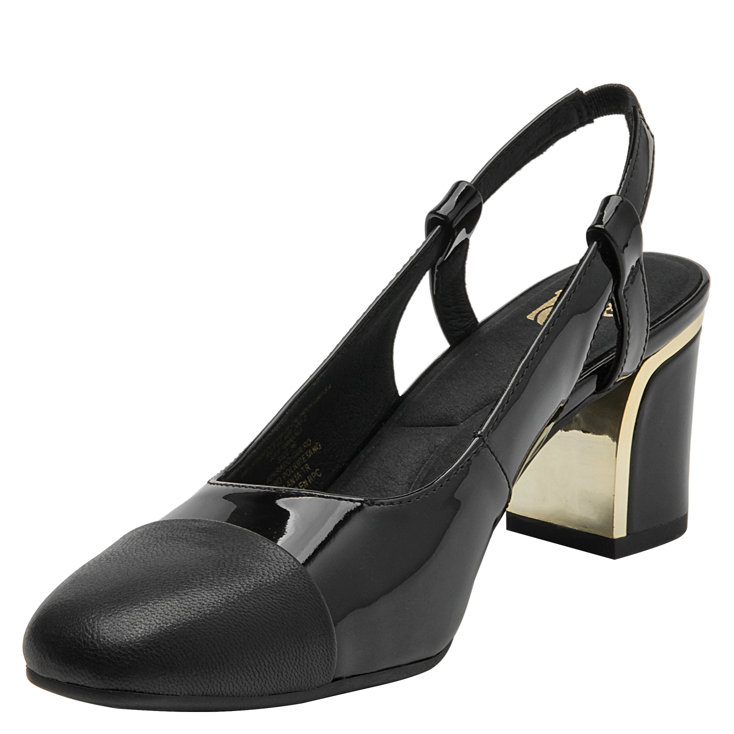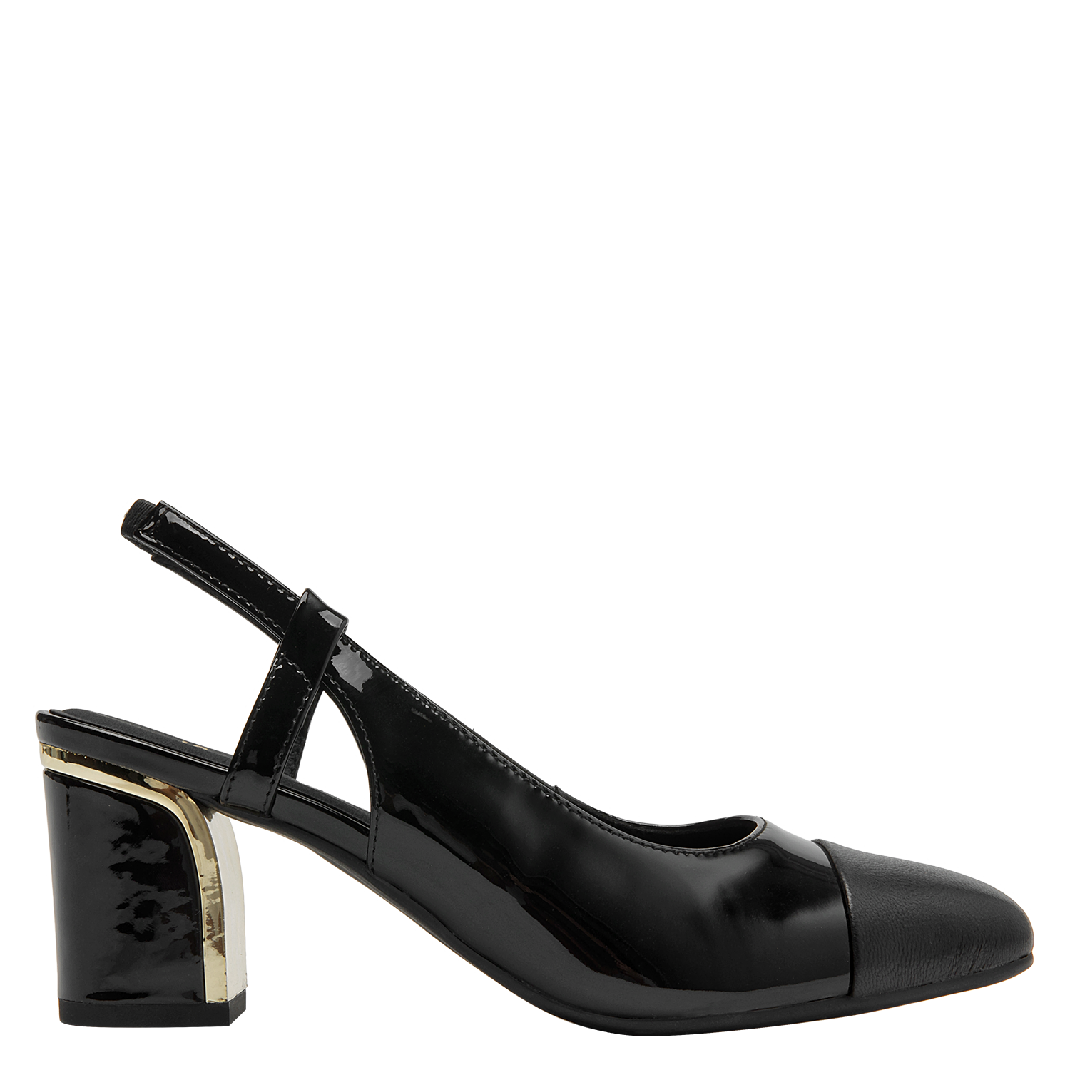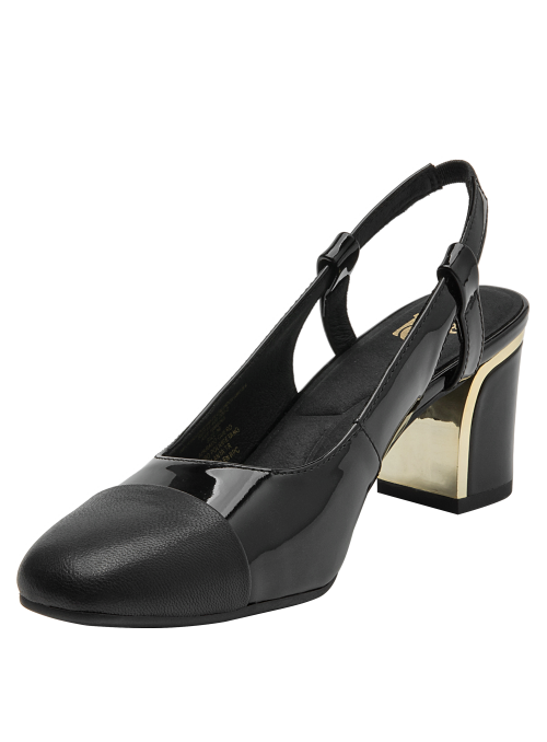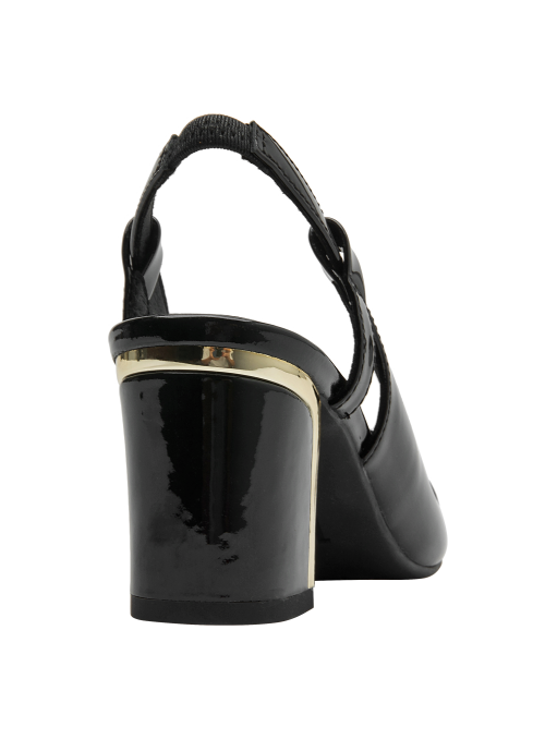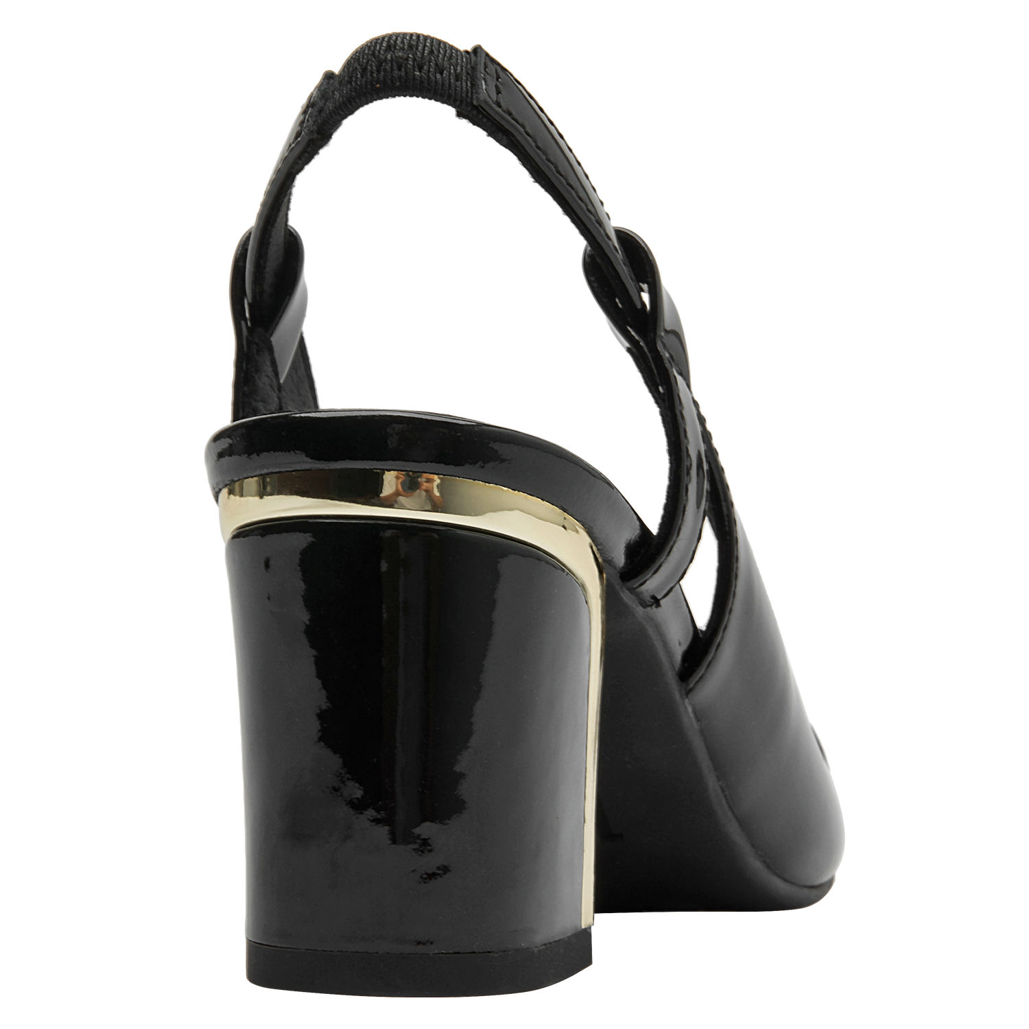 El zapato de mujer de 16 HRS combina elegancia y comodidad en un diseño que destaca por su acabado en cuero y charol negro brillante. Con una punta redonda y un taco bloque medio de 6.5 cm, ofrece un toque retro-chic ideal para quienes buscan un estilo sofisticado y moderno.