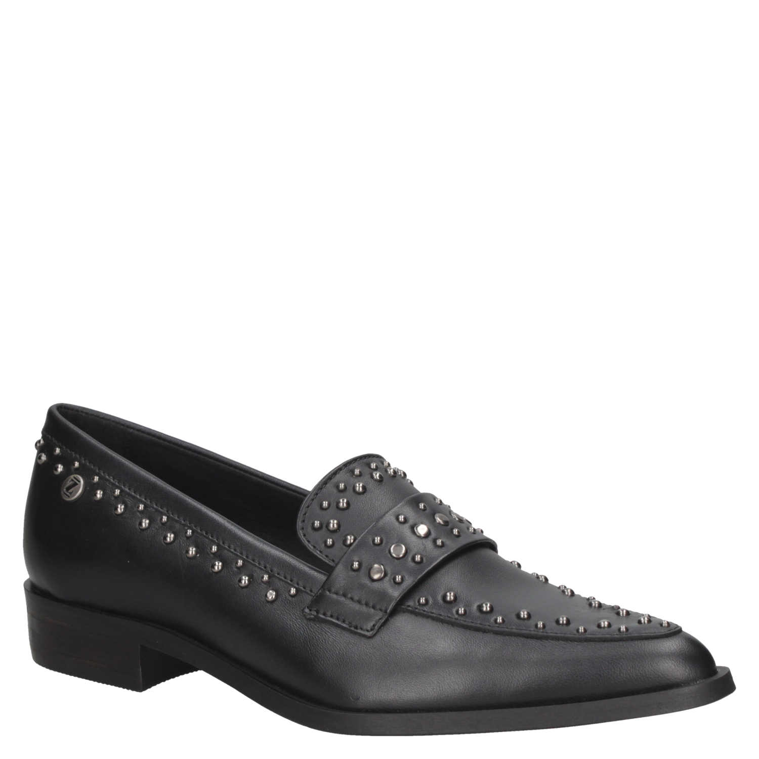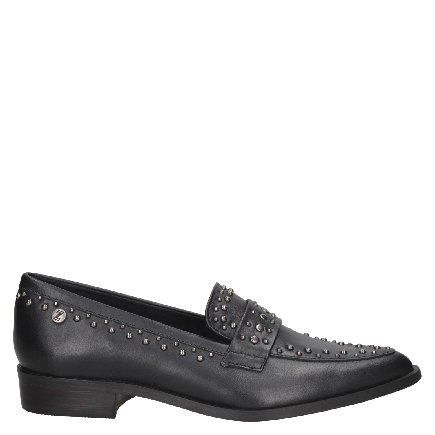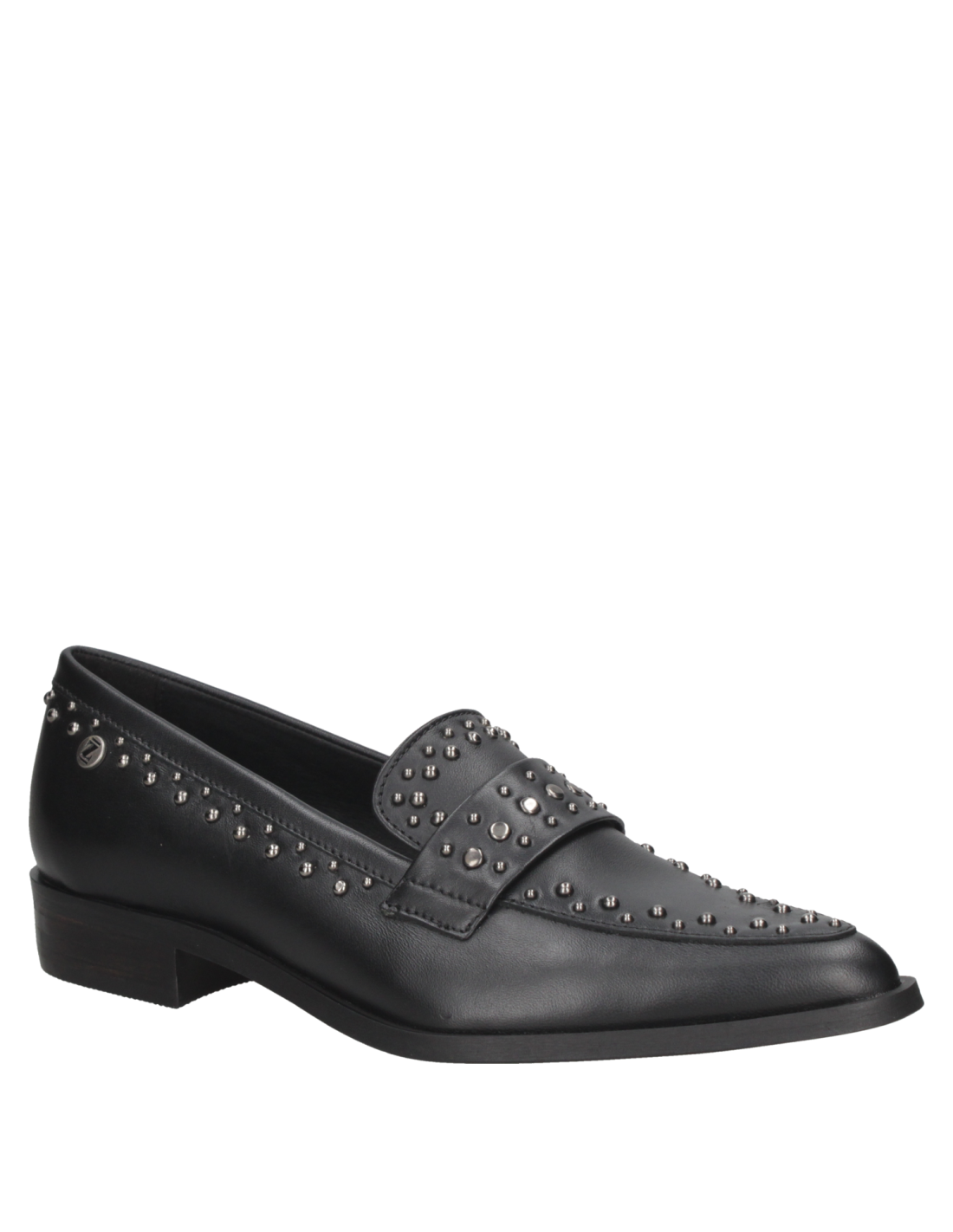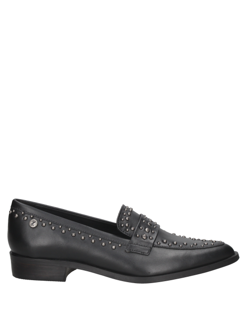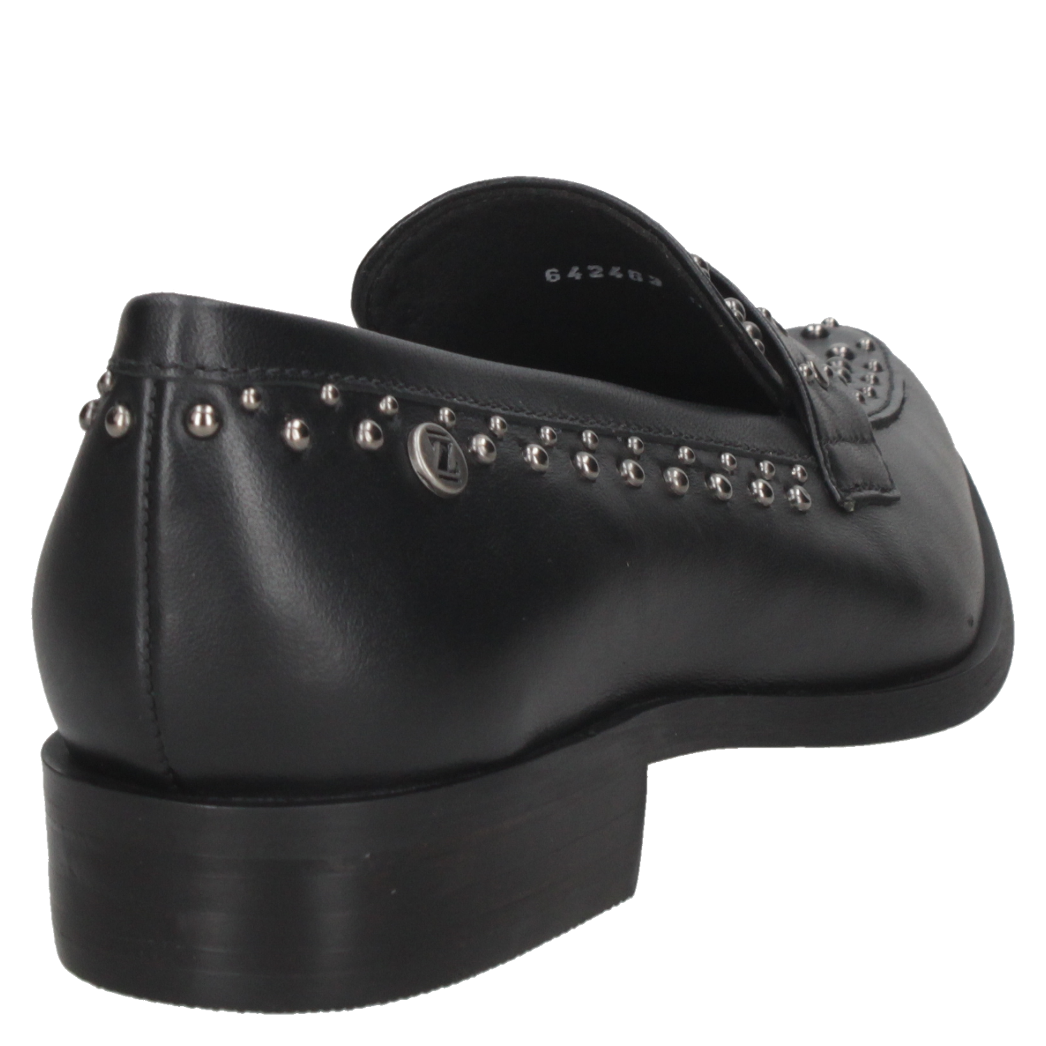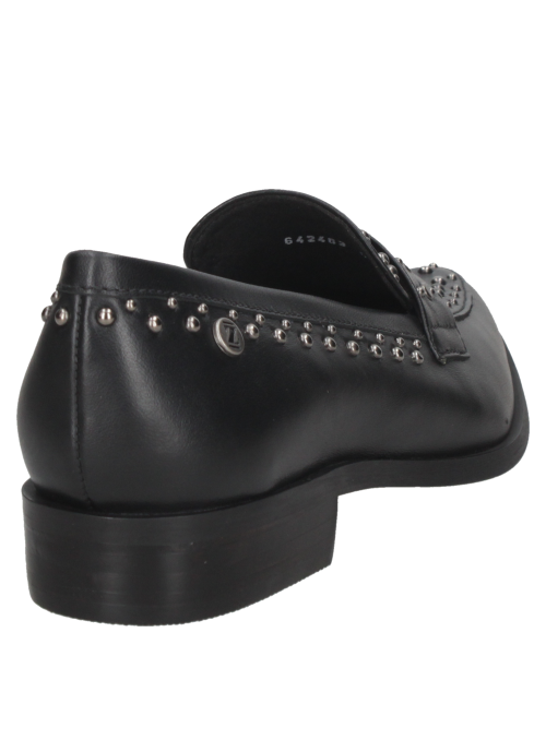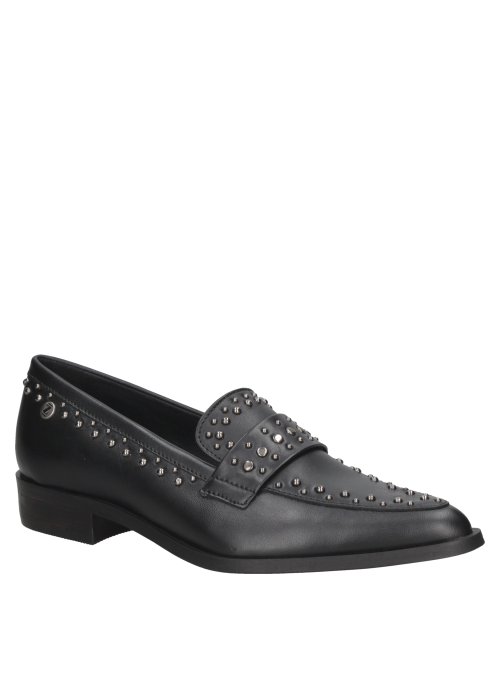 Descubre el mocasín de mujer de Zappa, en cuero negro que destaca por su diseño elegante y moderno. Las tachas metálicas plateadas añaden un toque sofisticado, mientras que el tacón bajo de 3 cm ofrece comodidad para el uso diario. Perfecto para quienes buscan un calzado clásico con un giro contemporáneo.