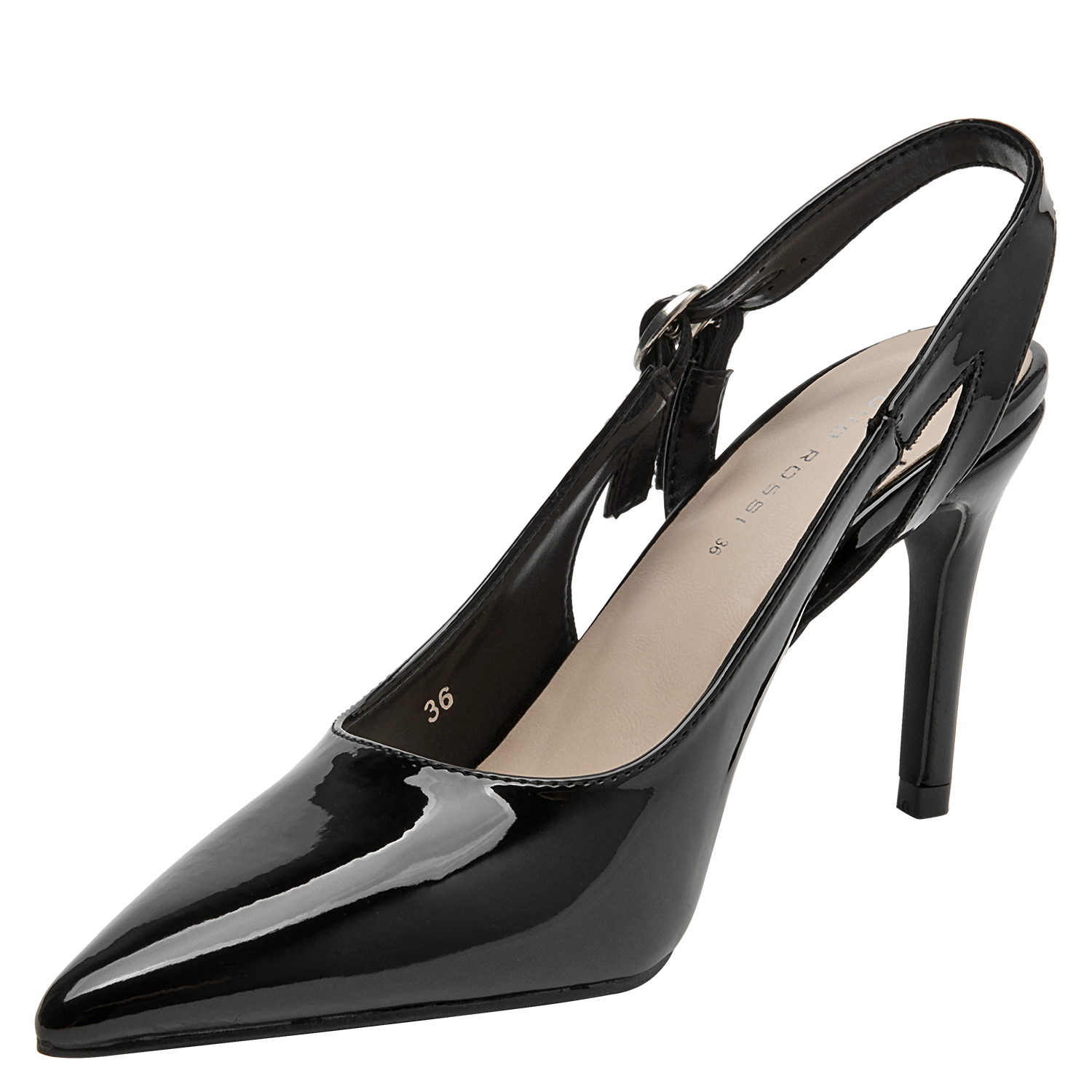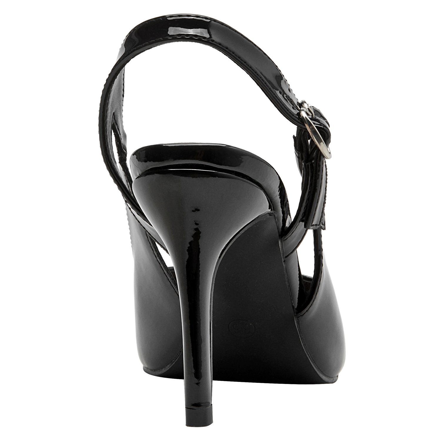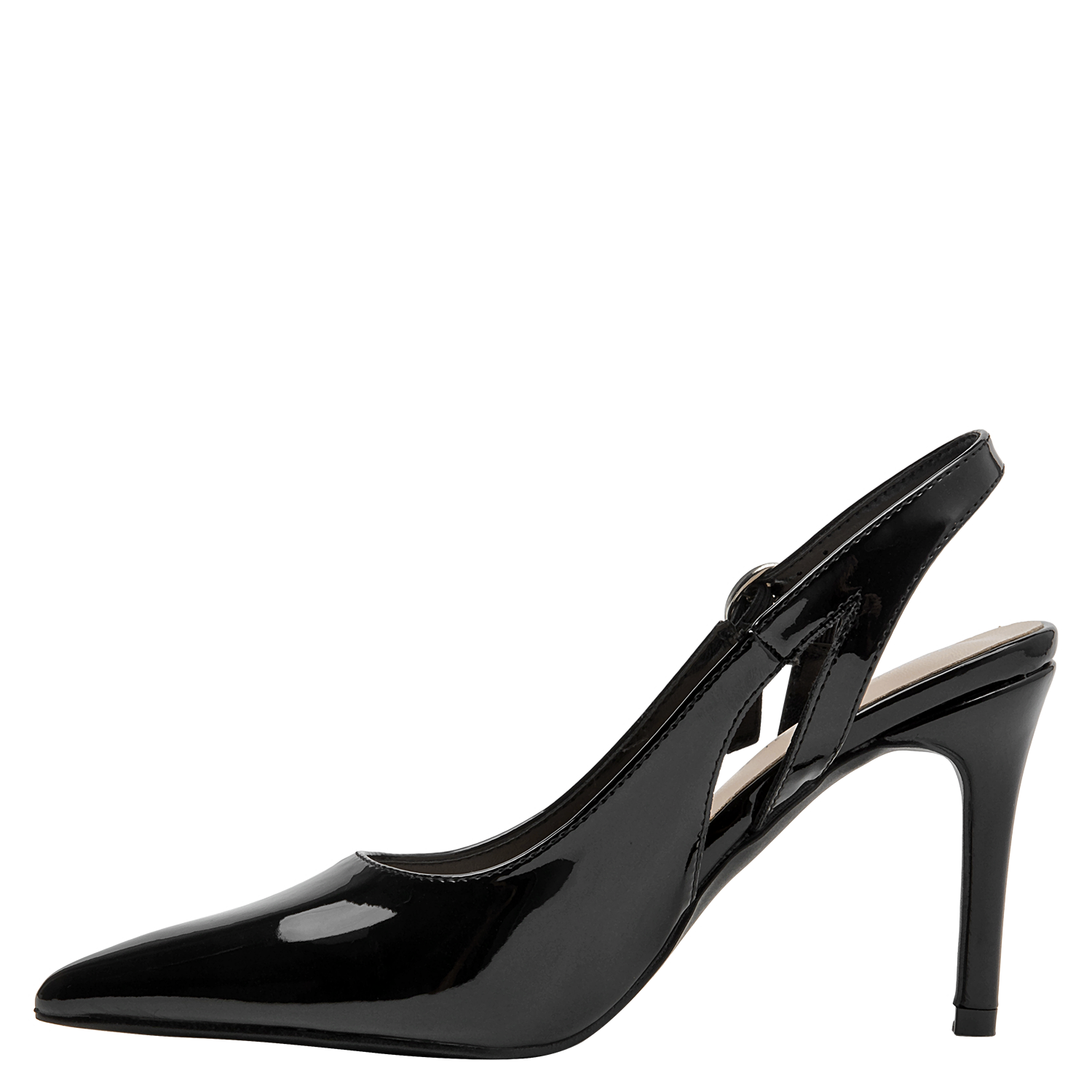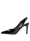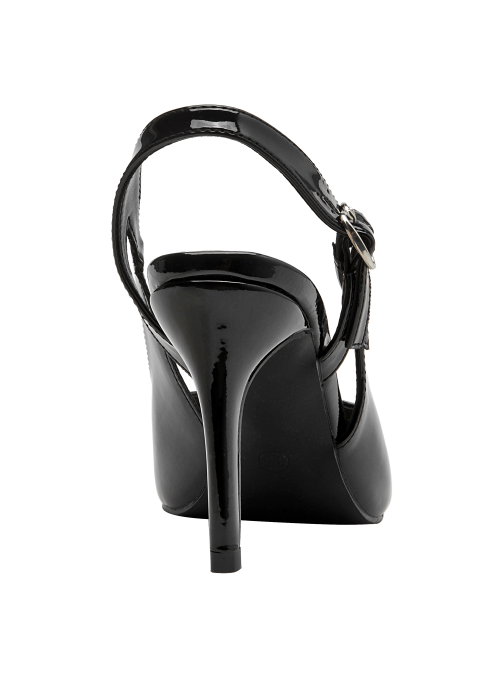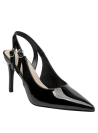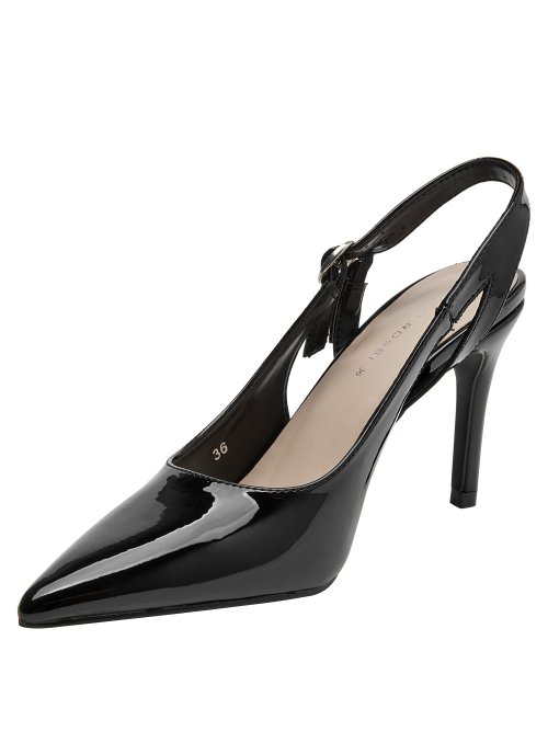 Zapato stiletto para mujer con taco medio tipo aguja en color negro charol. Fabricado en material sintético con forro PU, presenta punta puntiaguda que afina la silueta del pie y un taco de 5 cm que aporta altura sutil y porte elegante. Su diseño limpio y sofisticado lo convierte en un básico versátil para tenidas formales o semi formales.