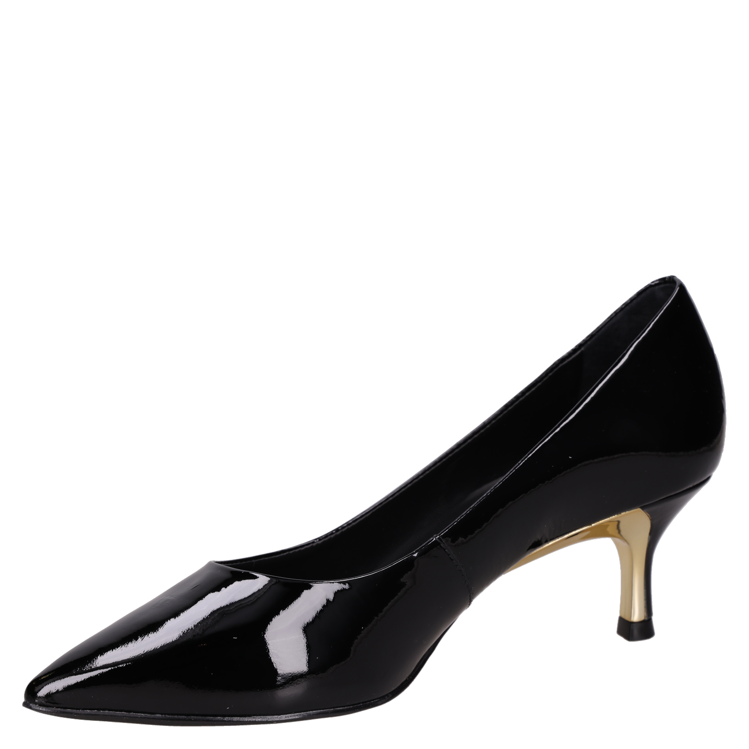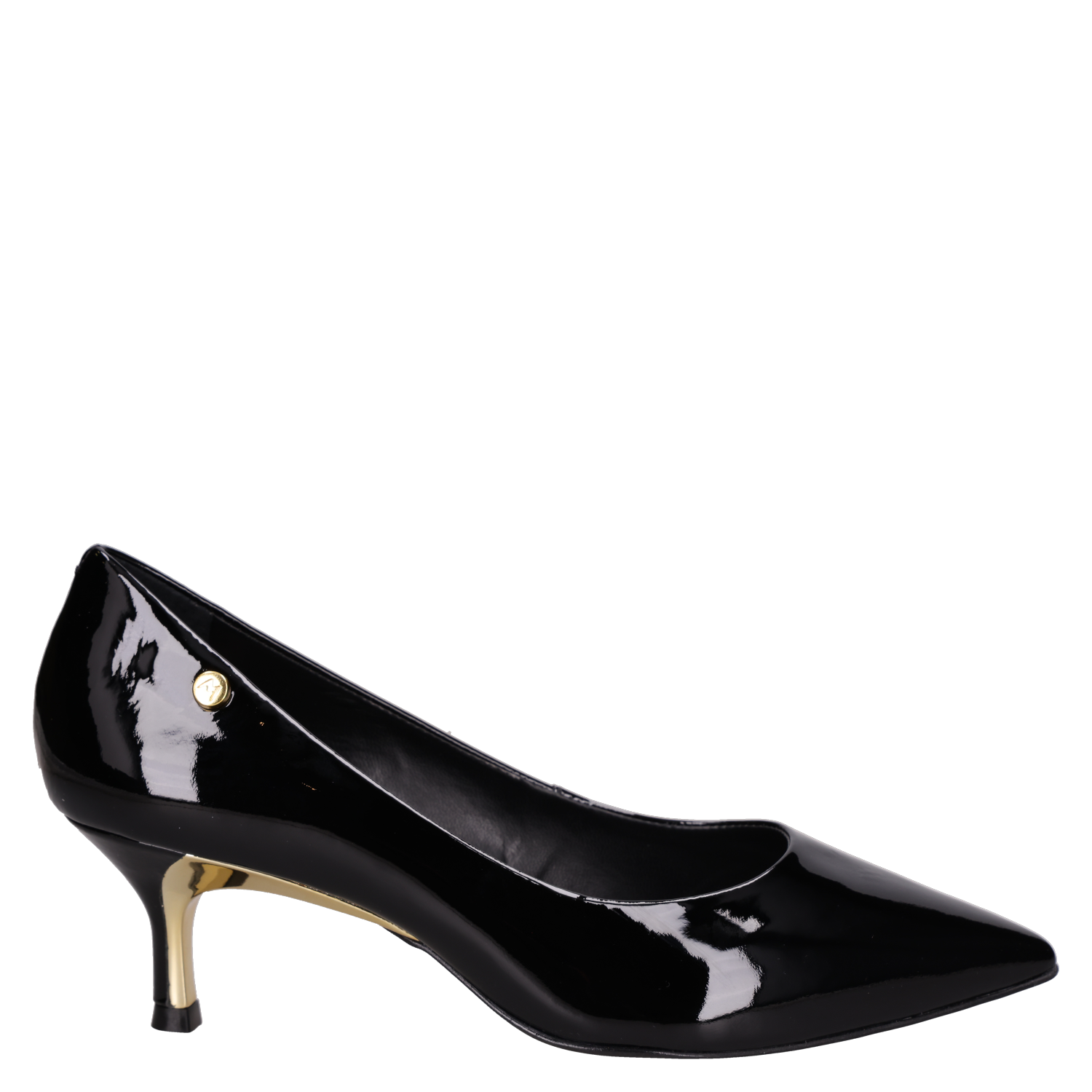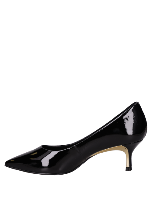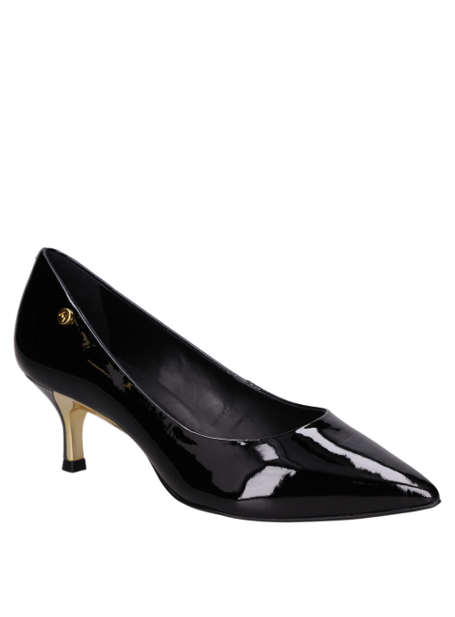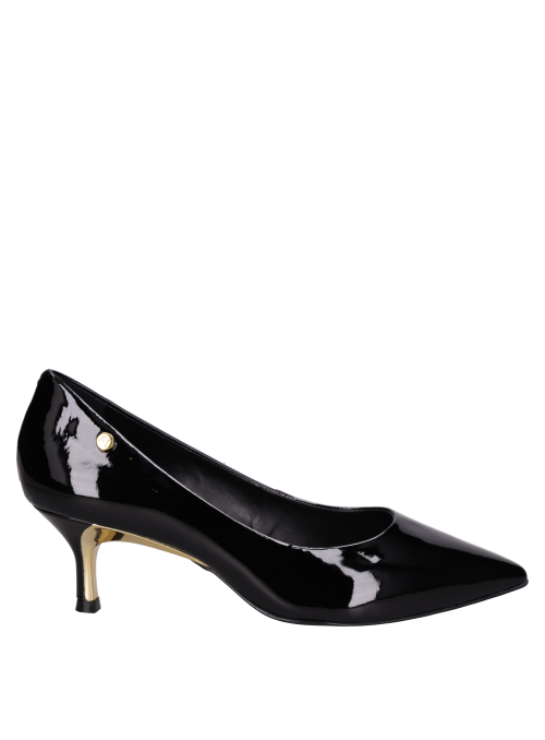 Stiletto de vestir para mujer en color negro, confeccionado en cuero charol con forro PU. Este diseño de salón resalta por su punta puntiaguda y el taco aguja de 6 cm, logrando una silueta estilizada y atemporal. Acabado liso que facilita combinaciones formales y smart-casual, con calce ceñido.