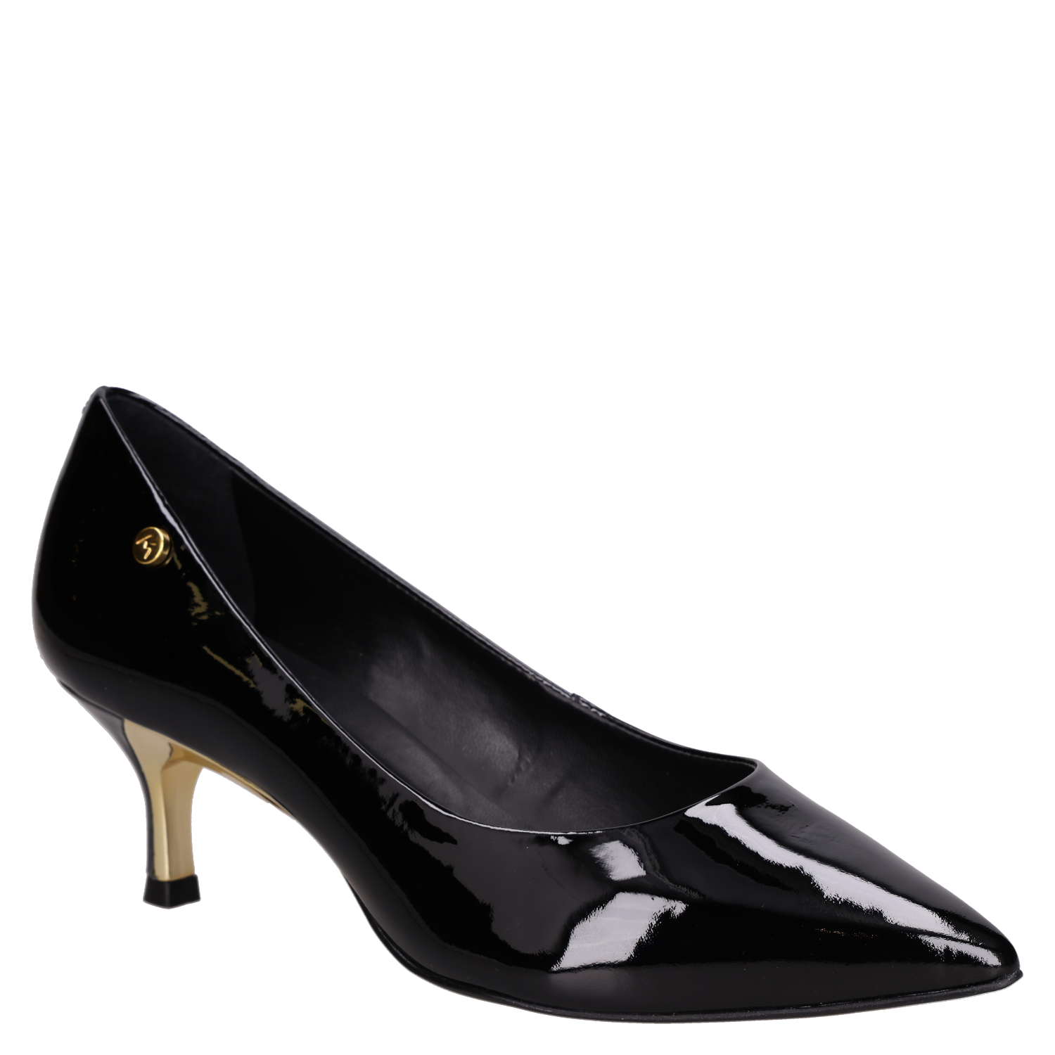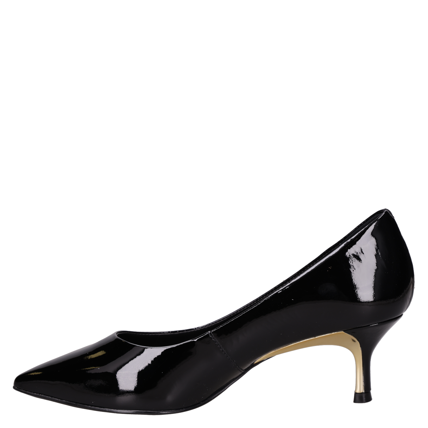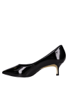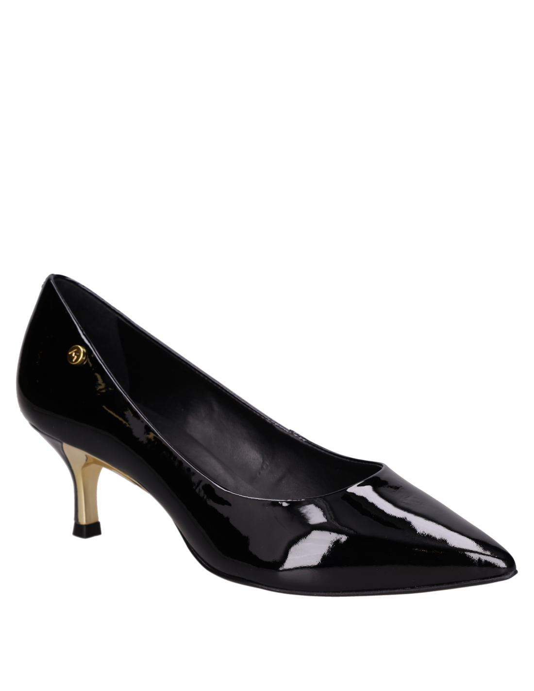 Stiletto de vestir para mujer en color negro, confeccionado en cuero charol con forro PU. Este diseño de salón resalta por su punta puntiaguda y el taco aguja de 6 cm, logrando una silueta estilizada y atemporal. Acabado liso que facilita combinaciones formales y smart-casual, con calce ceñido.
