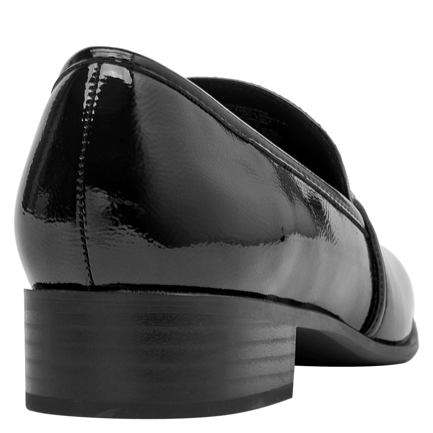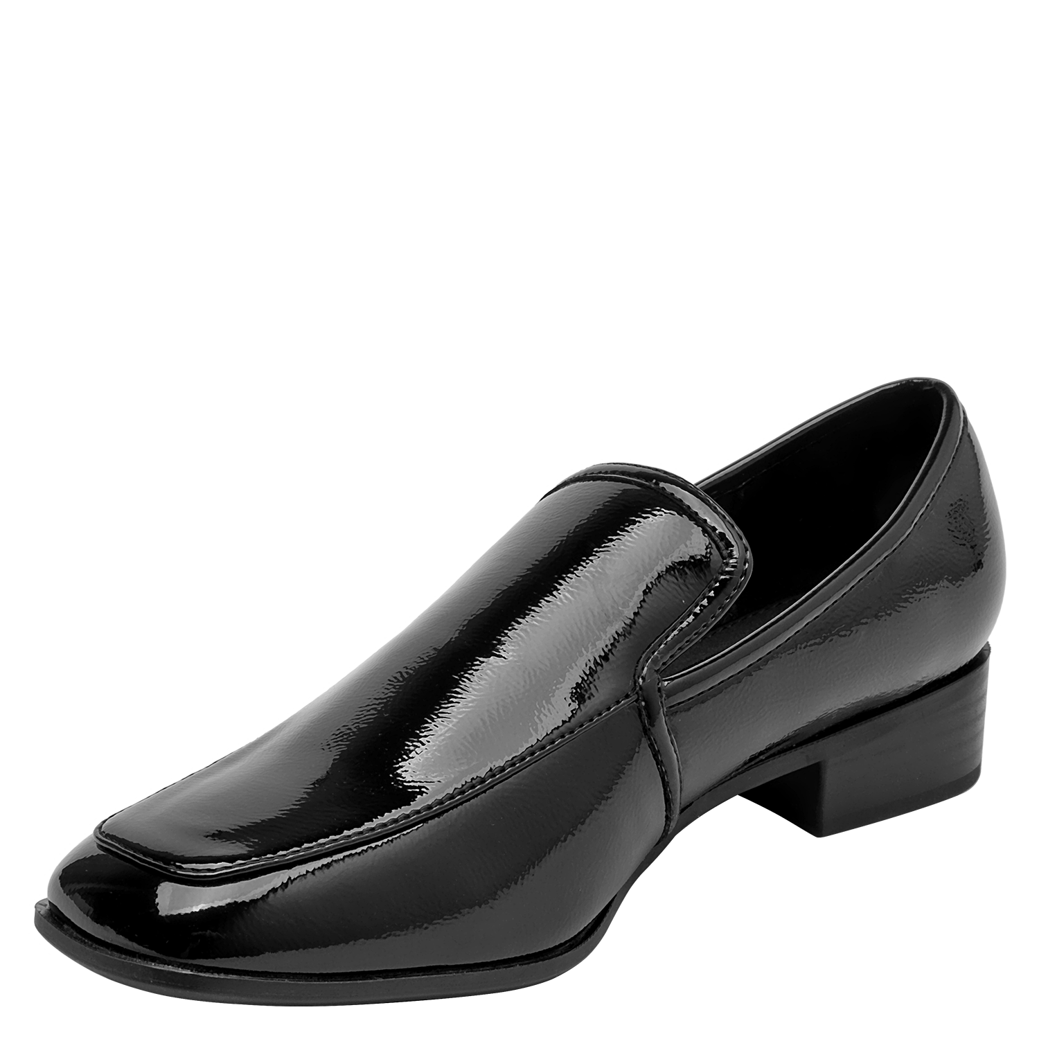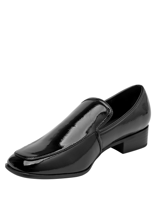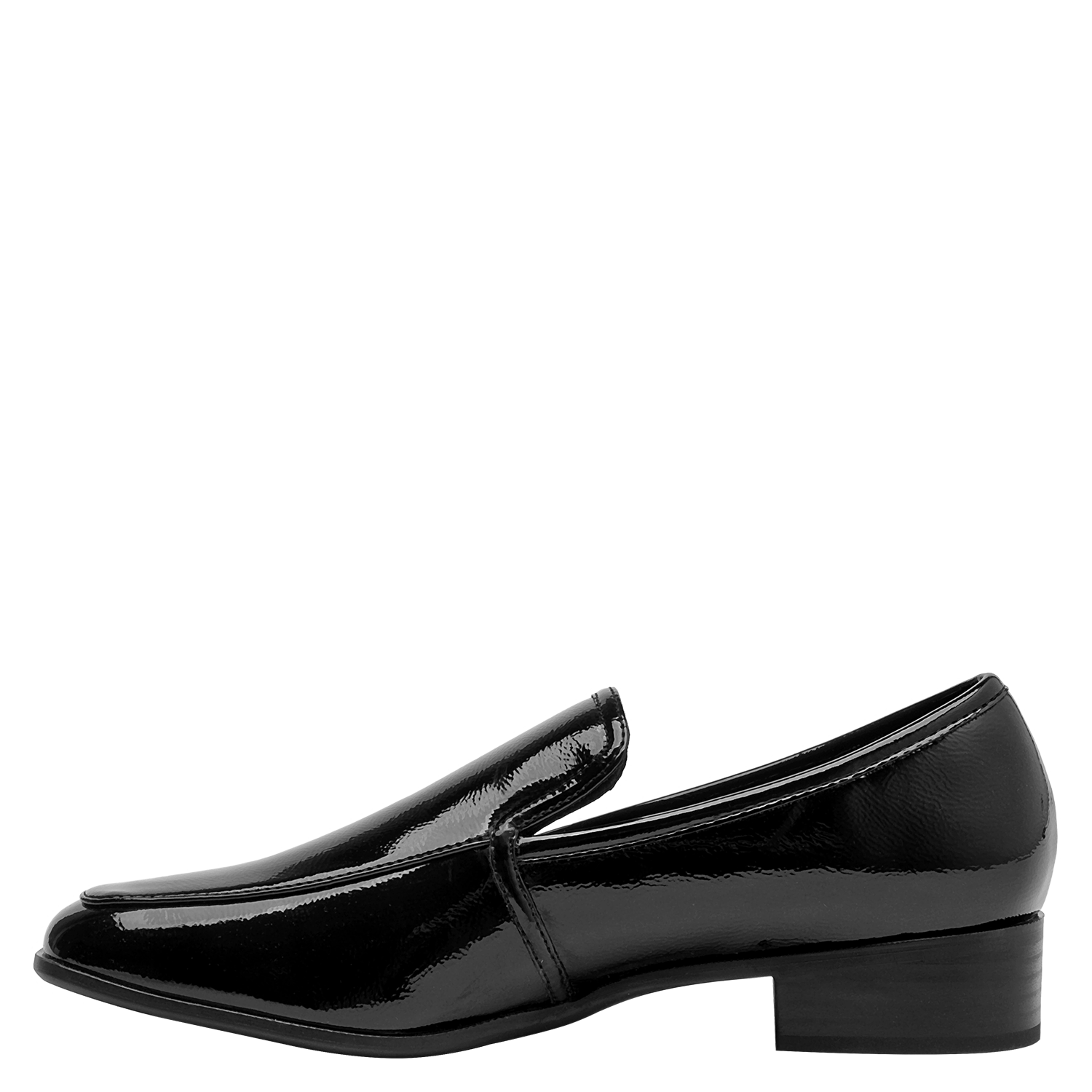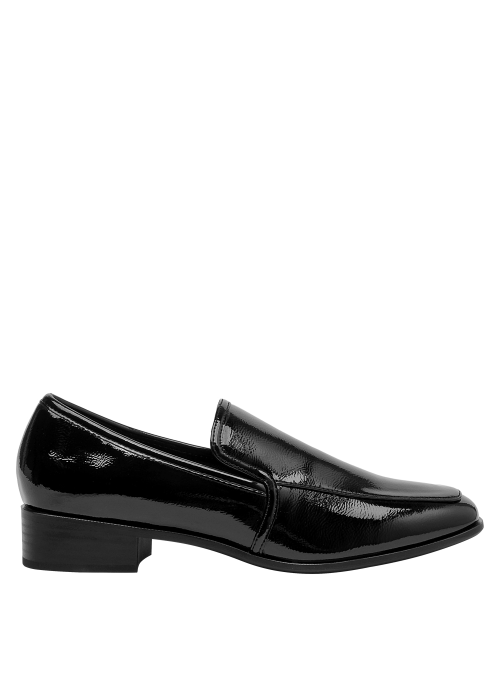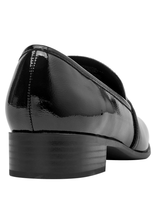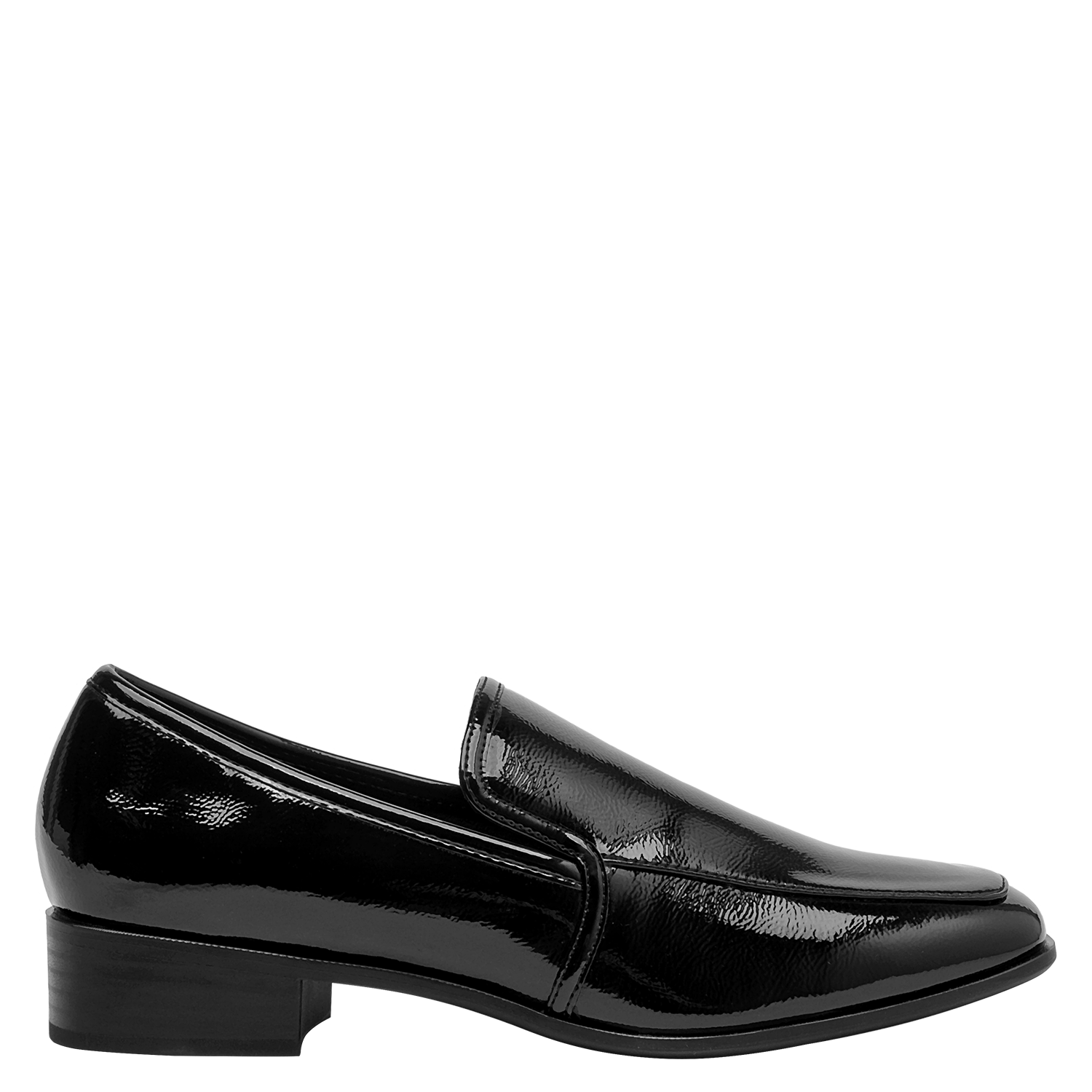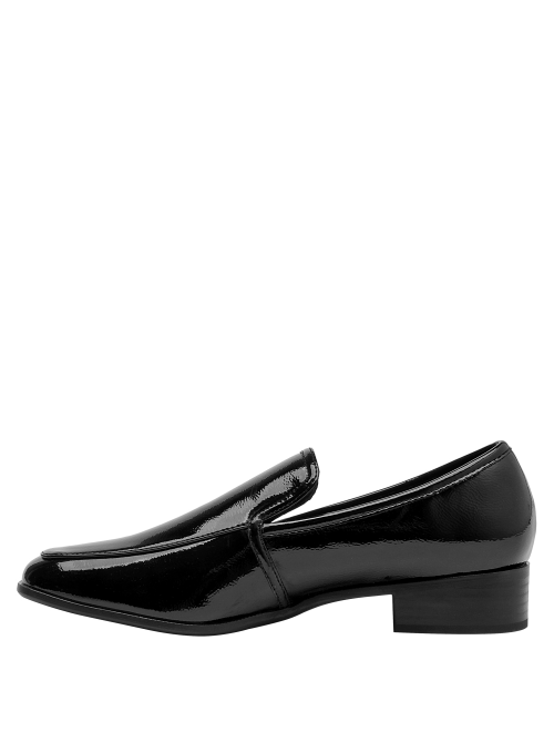 Mocasín clásico de cuero charol para mujer en color negro, pensado para un look pulido sin esfuerzo. Su diseño de punta redonda y taco bloque de 3 cm aporta estabilidad y un perfil atemporal, mientras el forro de microfibra entrega una sensación suave al contacto. La construcción en cuero realza la estética minimalista y permite integrarlo fácilmente en contextos urbanos, de oficina o salidas informales.