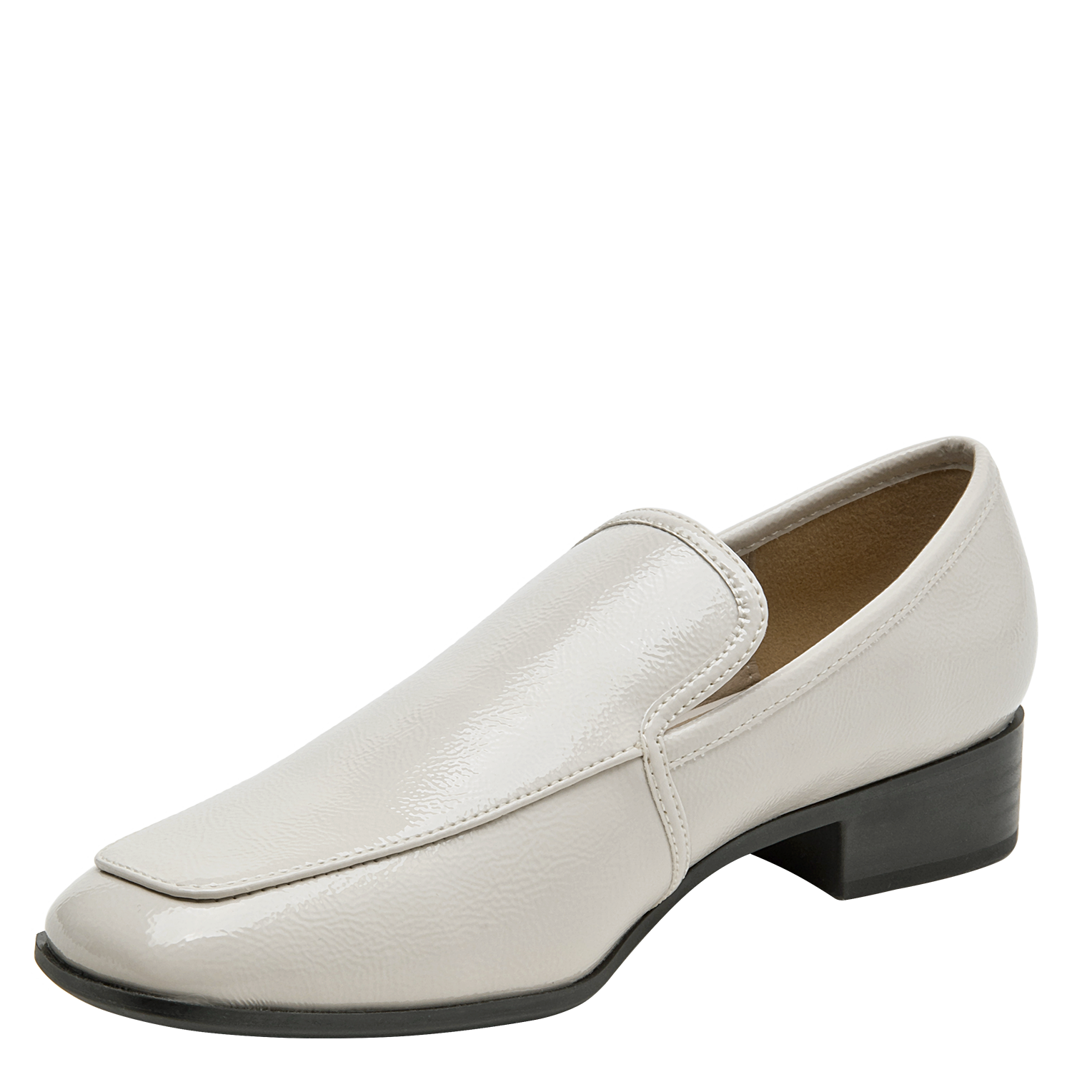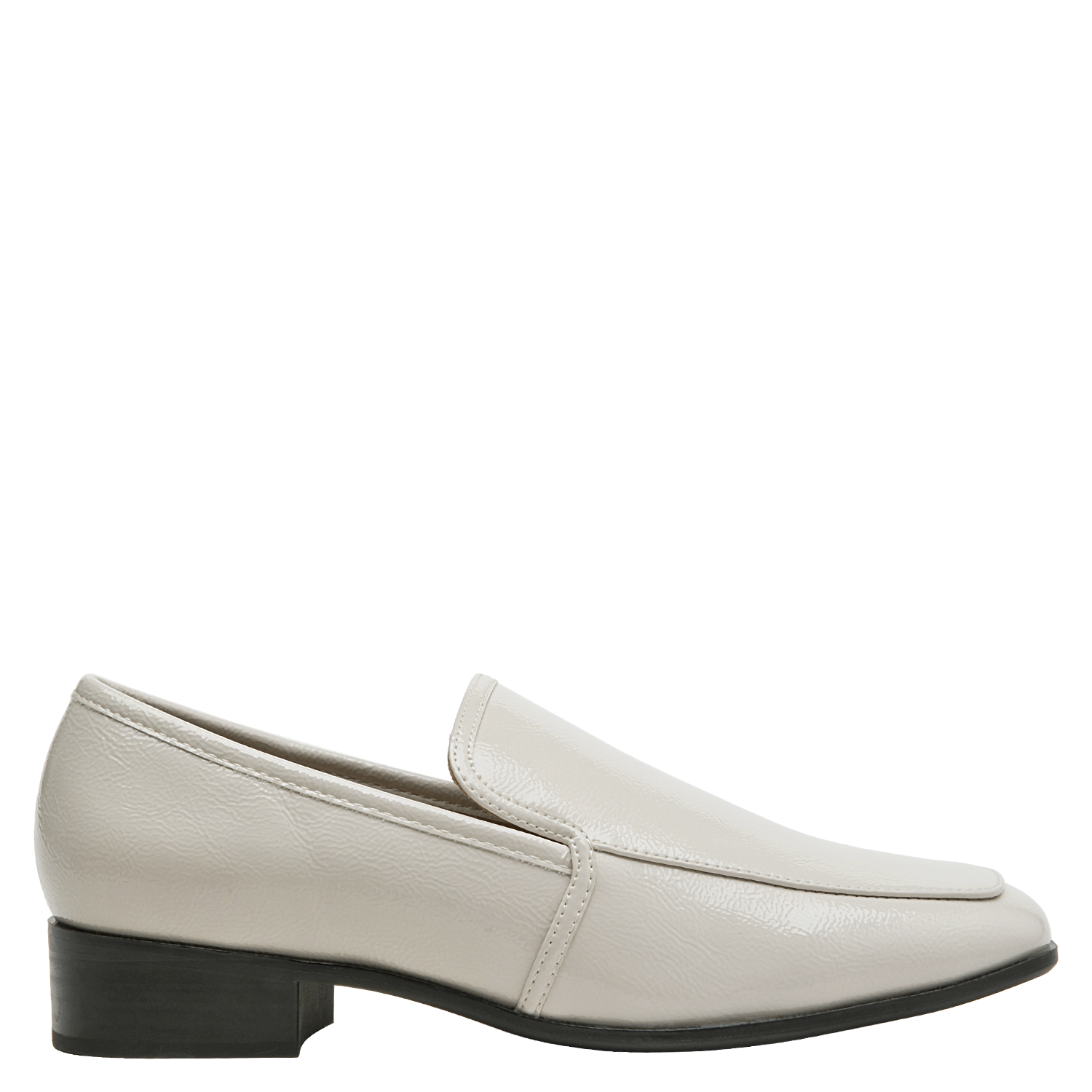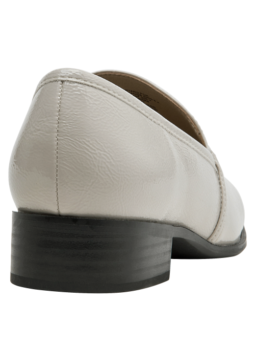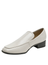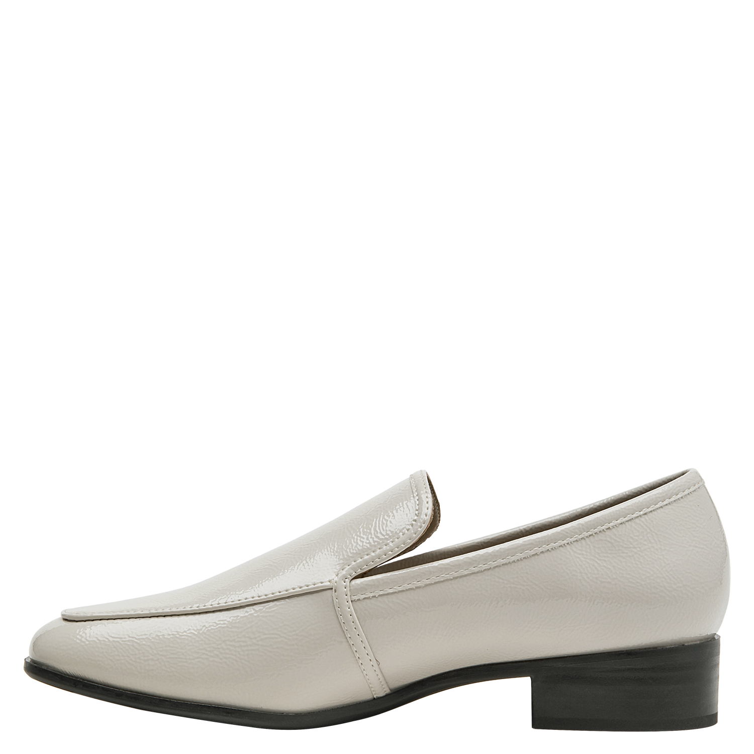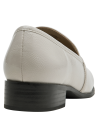 Mocasin de cuero para mujer de estilo casual, en color beige, con punta redonda y taco bloque de 3 cm. El exterior en cuero ofrece una apariencia versátil, mientras que el forro de microfibra aporta suavidad al contacto. El diseño limpio y el taco bajo favorecen la estabilidad y el uso diario.