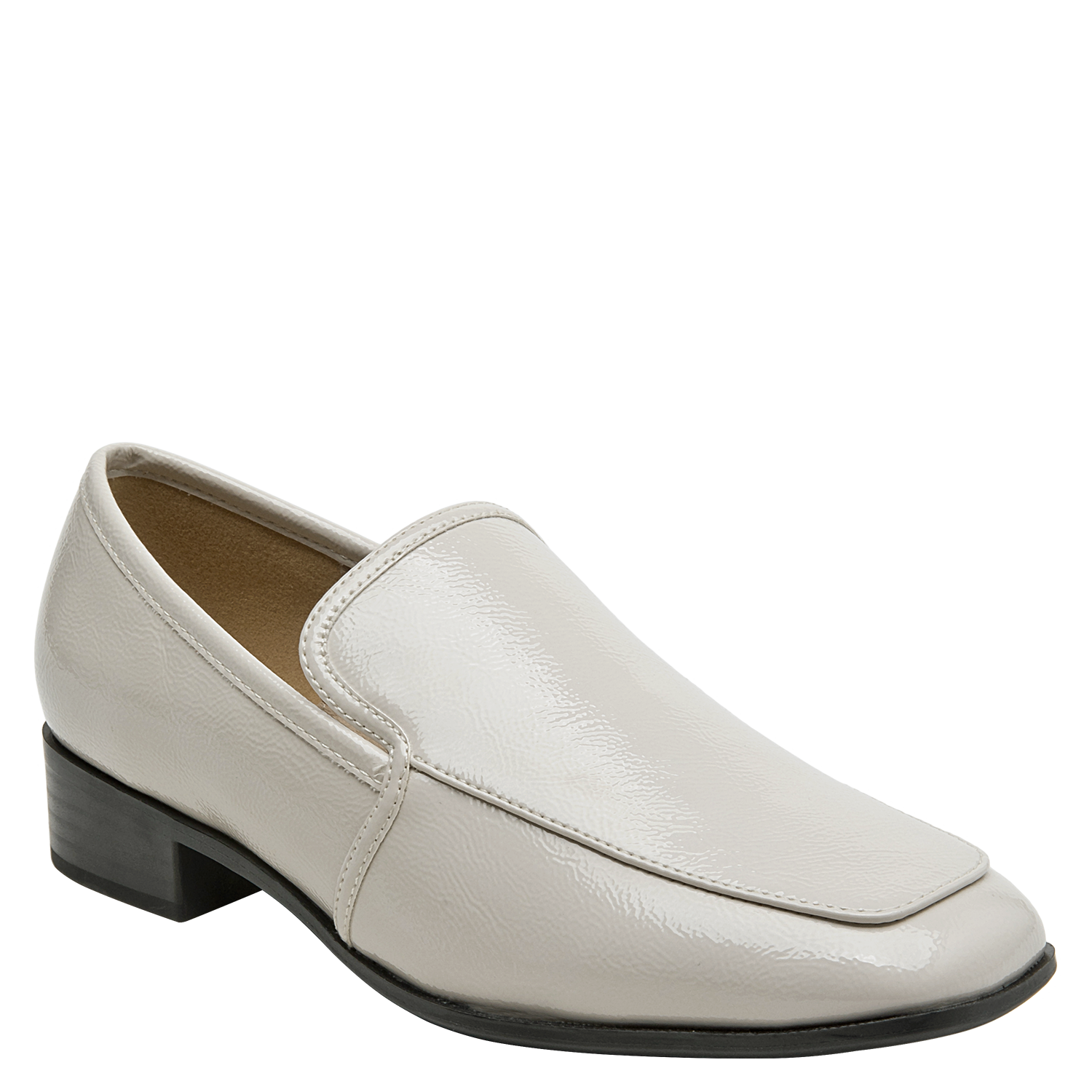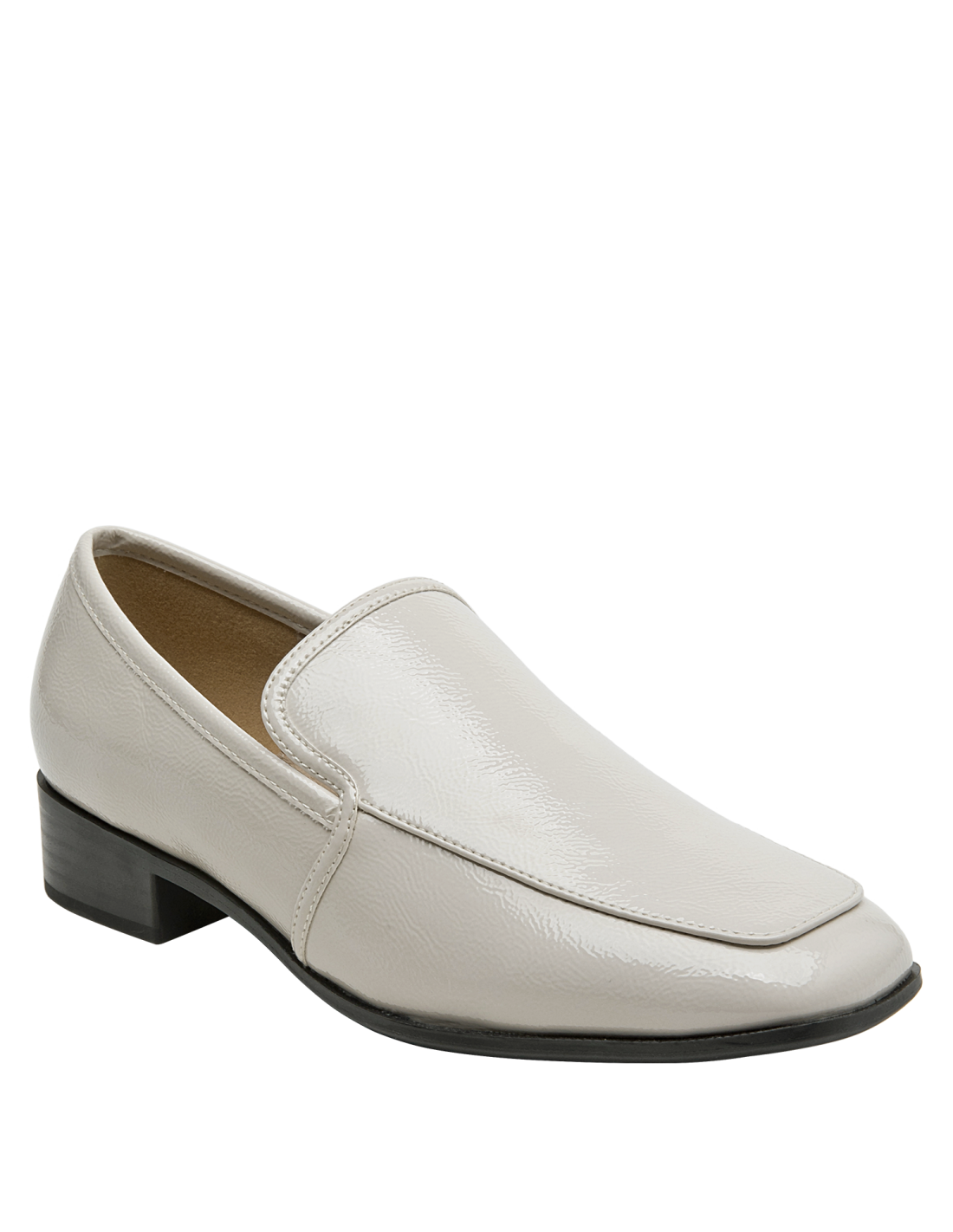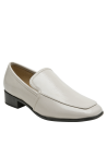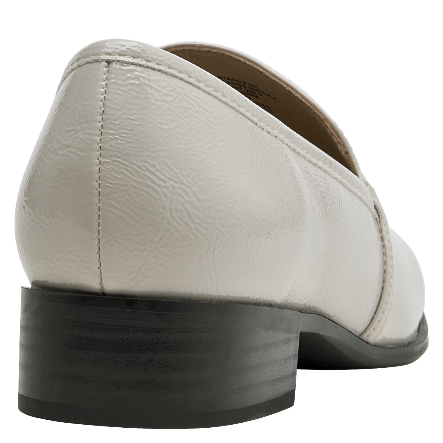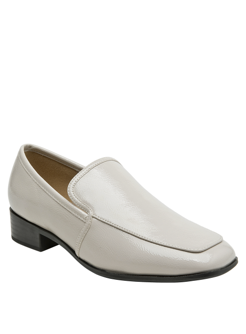 Mocasin de cuero para mujer de estilo casual, en color beige, con punta redonda y taco bloque de 3 cm. El exterior en cuero ofrece una apariencia versátil, mientras que el forro de microfibra aporta suavidad al contacto. El diseño limpio y el taco bajo favorecen la estabilidad y el uso diario.