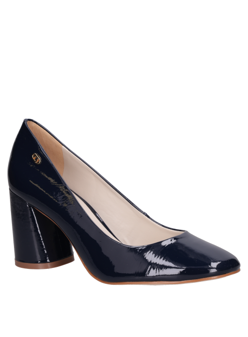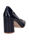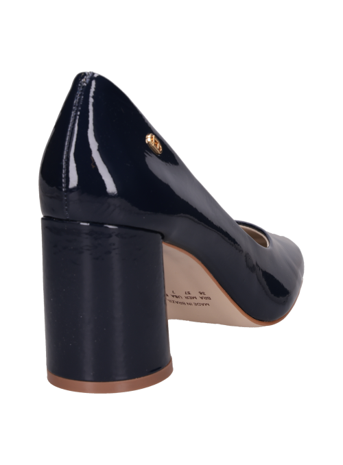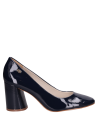 Zapato mujer de cuero charol de taco bloque para mujer en color azul, confeccionado en cuero con forro sintético. Incorpora punta redonda y una altura de 7.5 cm que realza el perfil sin exagerar. Su diseño limpio y atemporal se adapta a jornadas de oficina y salidas urbanas, con un acabado prolijo y un tono azul que aporta un toque distintivo a tus combinaciones.