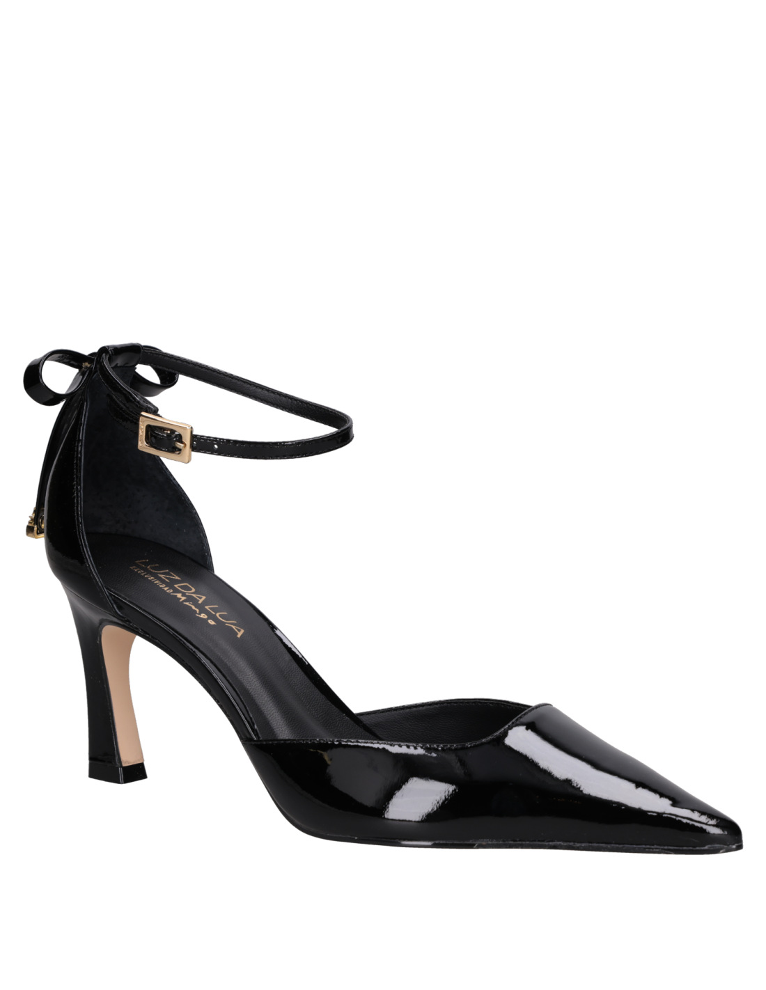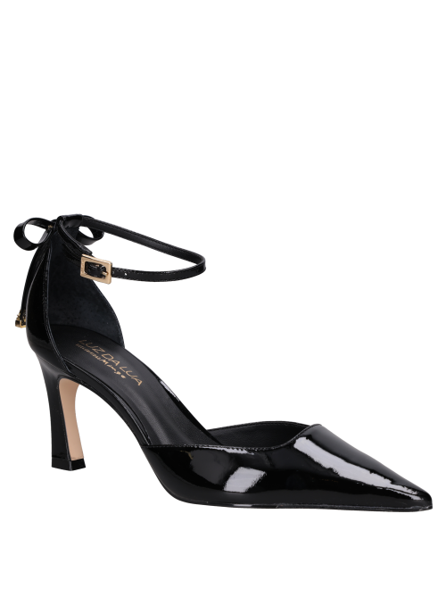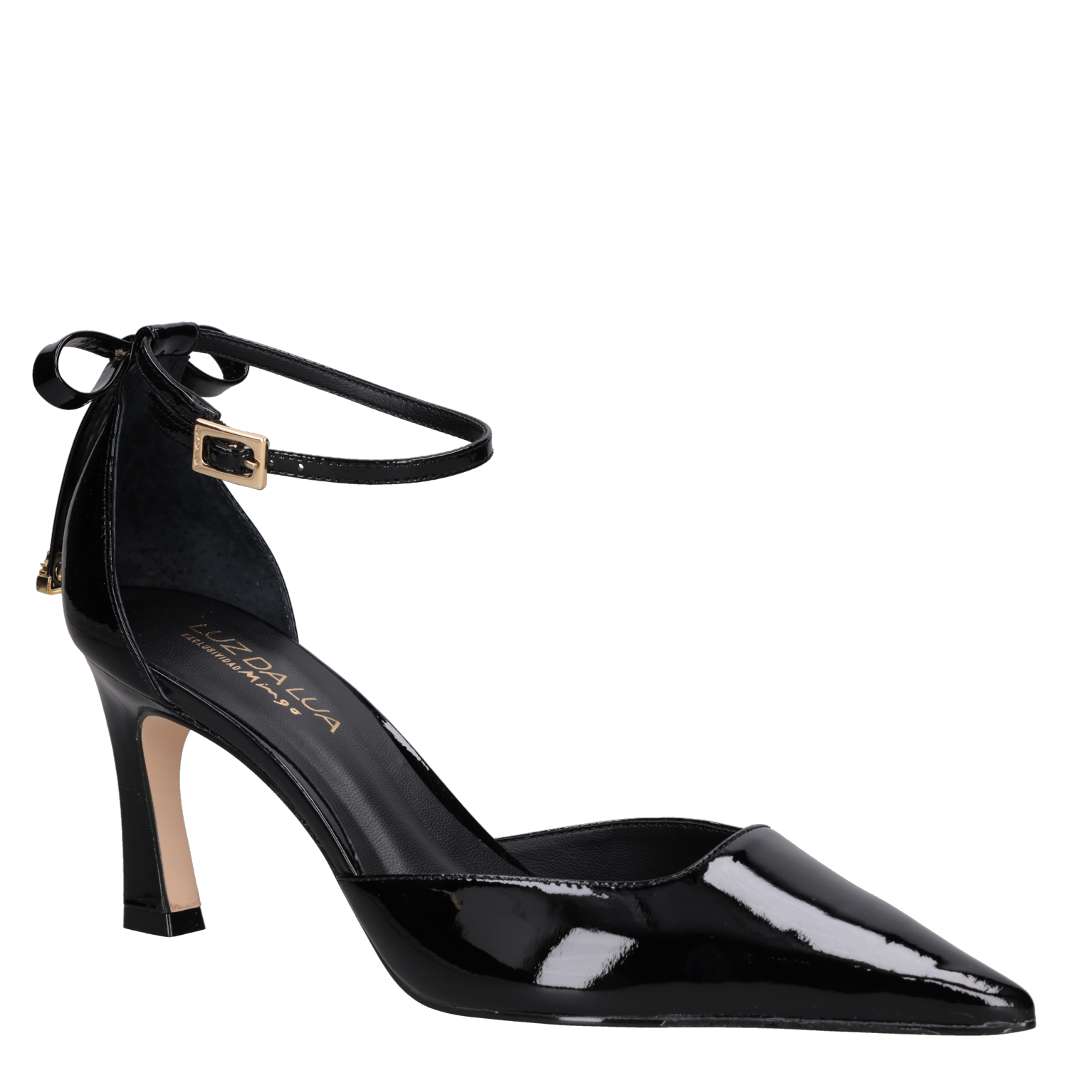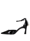 Stiletto de cuero para mujer con taco aguja, un básico elegante para elevar tus looks. En color negro, destaca por su acabado liso de charol, punta puntiaguda y taco de 8 cm. Exterior en cuero y forro sintético para una sensación firme y pulida. Su perfil minimalista lo hace versátil para oficina y eventos, con una estética atemporal y sofisticada. Combínalo con vestido tubo o cruzado, falda midi y blusa, jeans ajustados con blazer, traje sastre o pantalón recto con chaqueta de cuero.