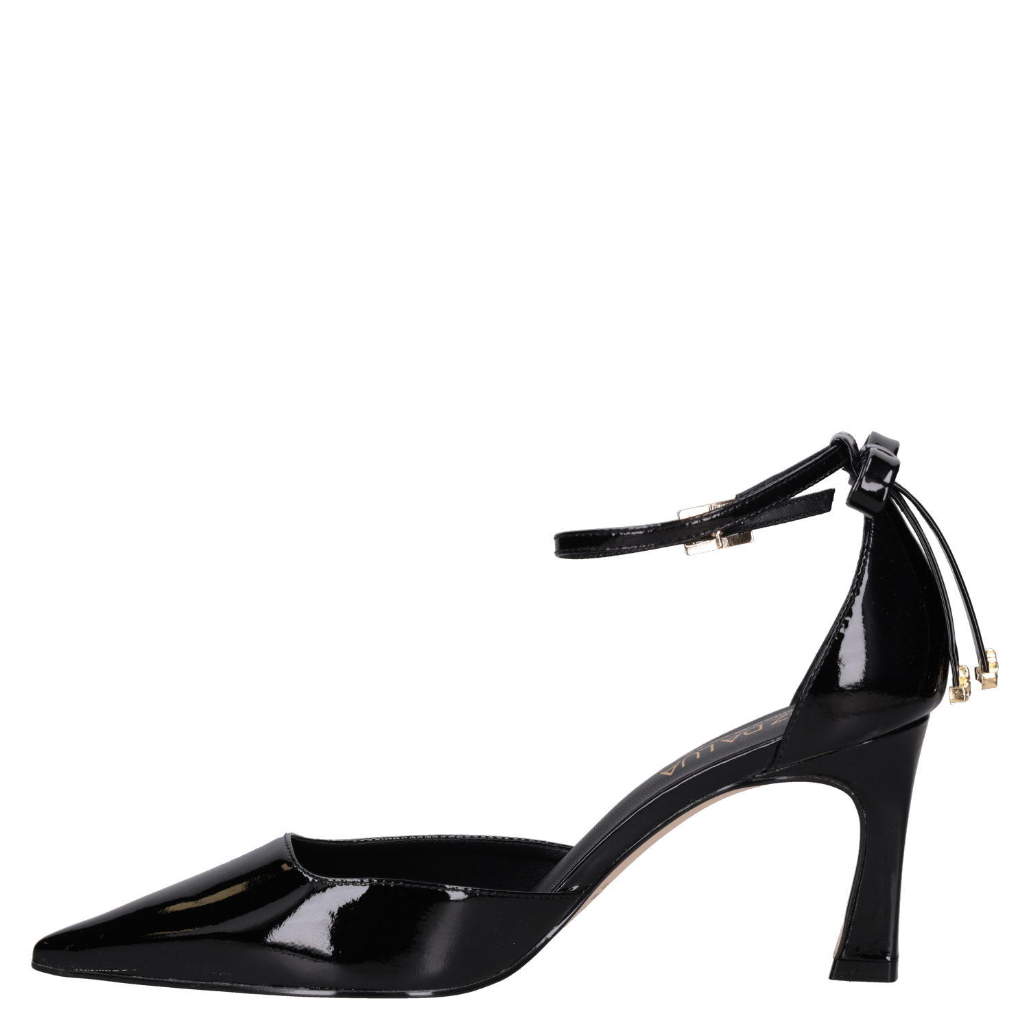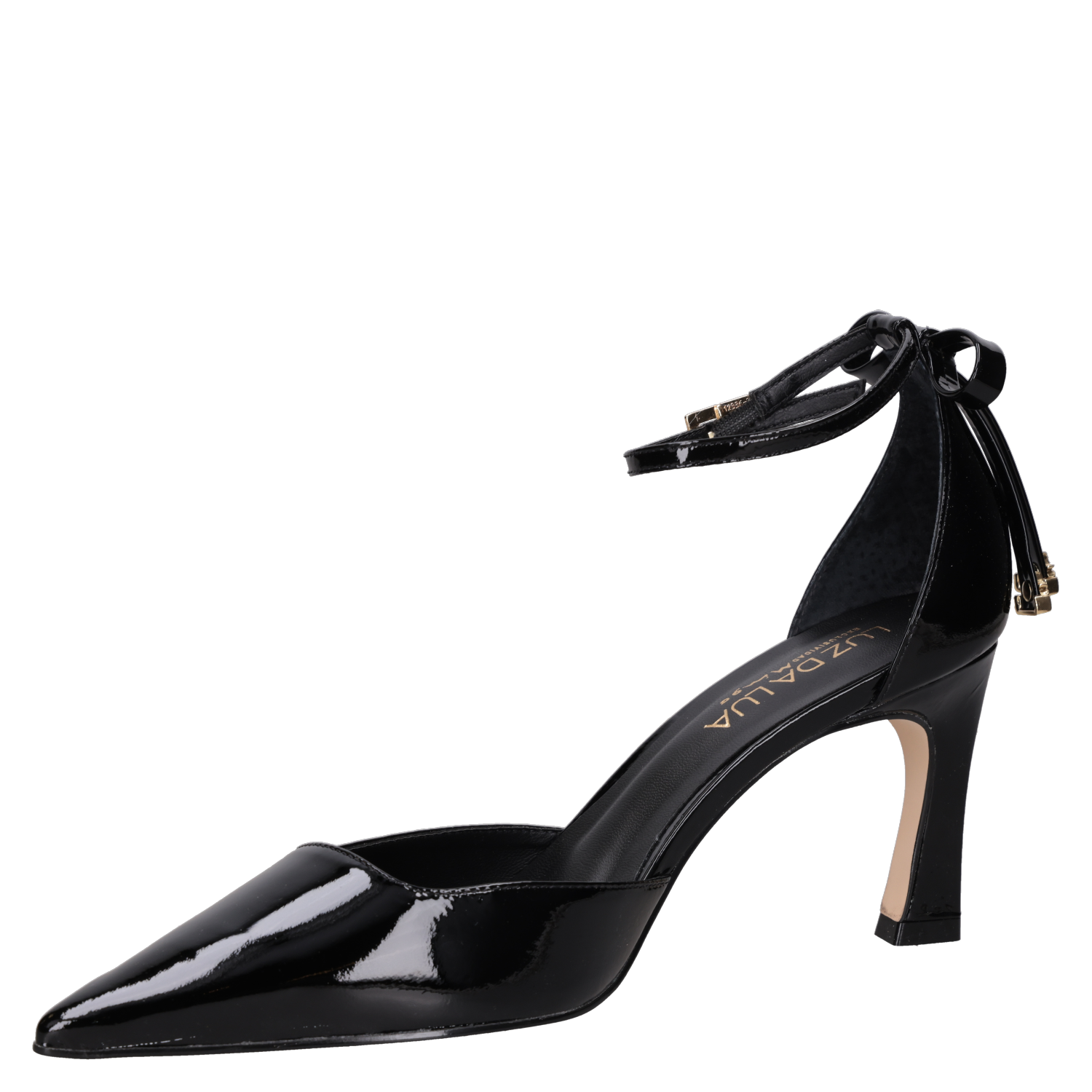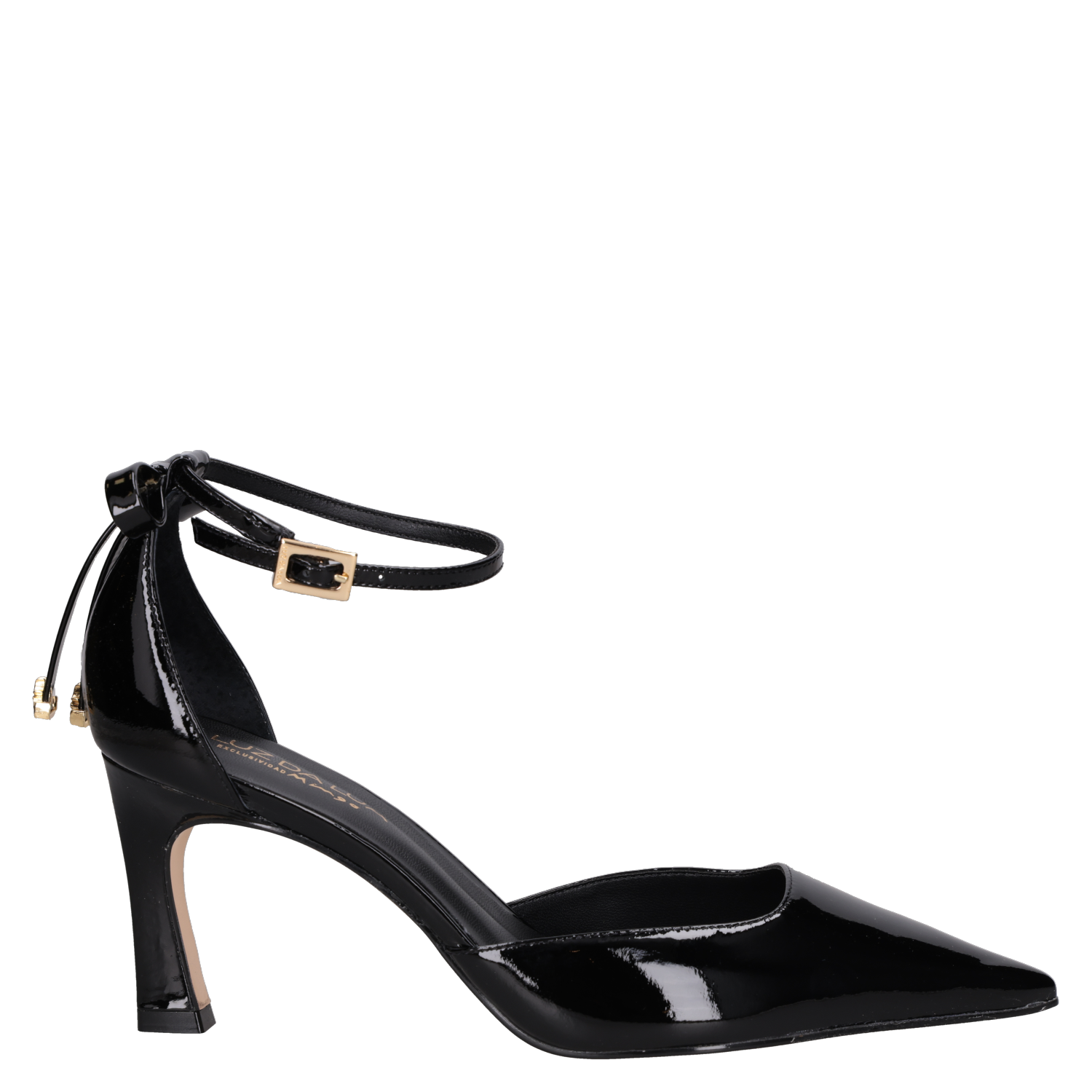 Stiletto de cuero para mujer con taco aguja, un básico elegante para elevar tus looks. En color negro, destaca por su acabado liso de charol, punta puntiaguda y taco de 8 cm. Exterior en cuero y forro sintético para una sensación firme y pulida. Su perfil minimalista lo hace versátil para oficina y eventos, con una estética atemporal y sofisticada. Combínalo con vestido tubo o cruzado, falda midi y blusa, jeans ajustados con blazer, traje sastre o pantalón recto con chaqueta de cuero.