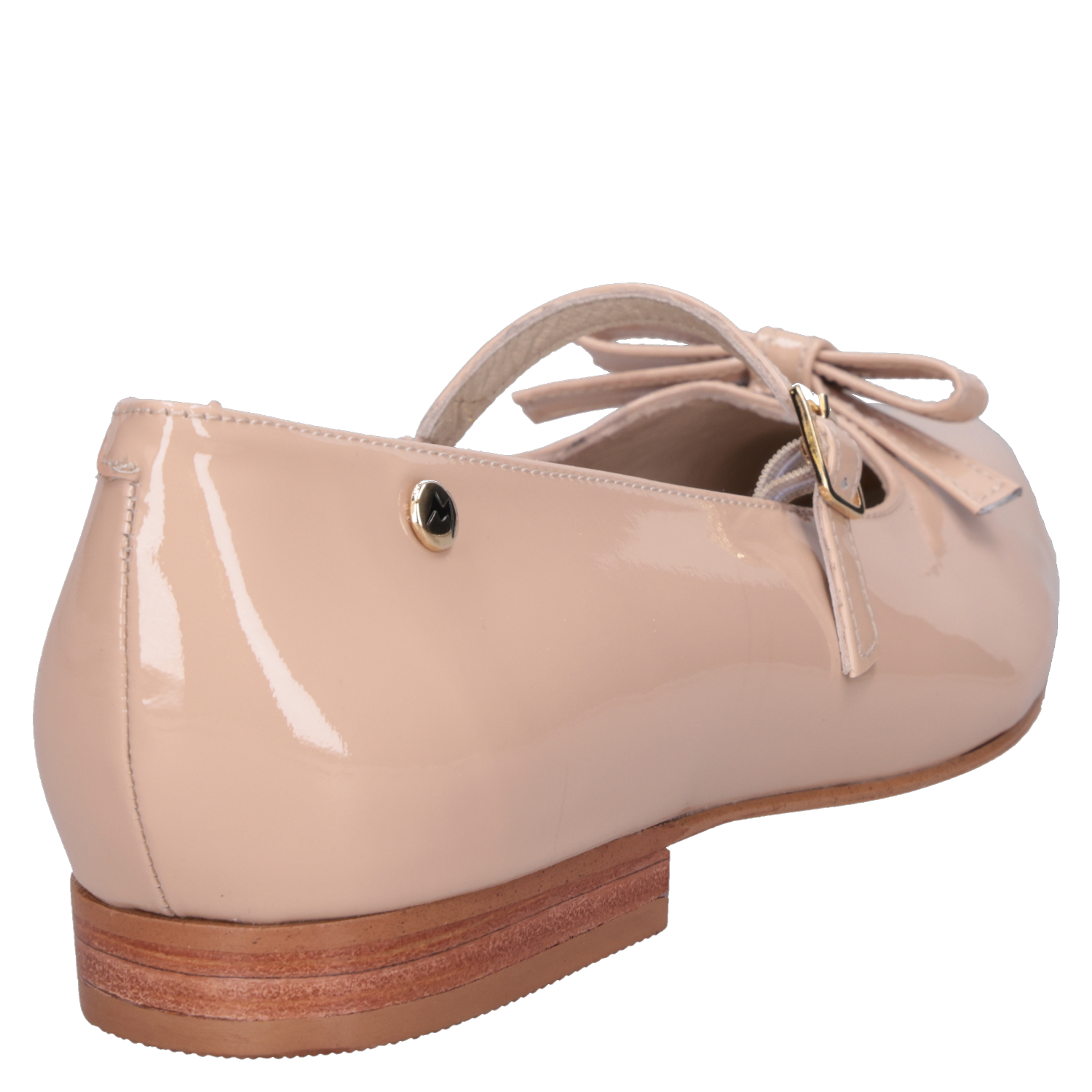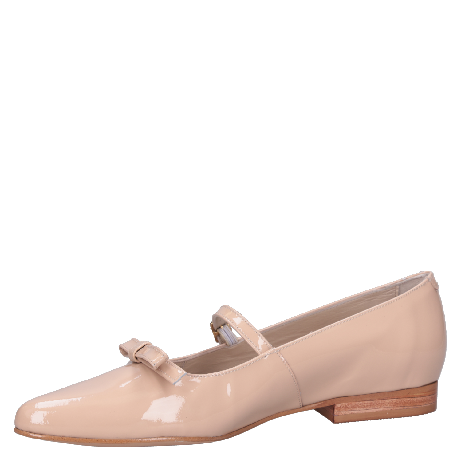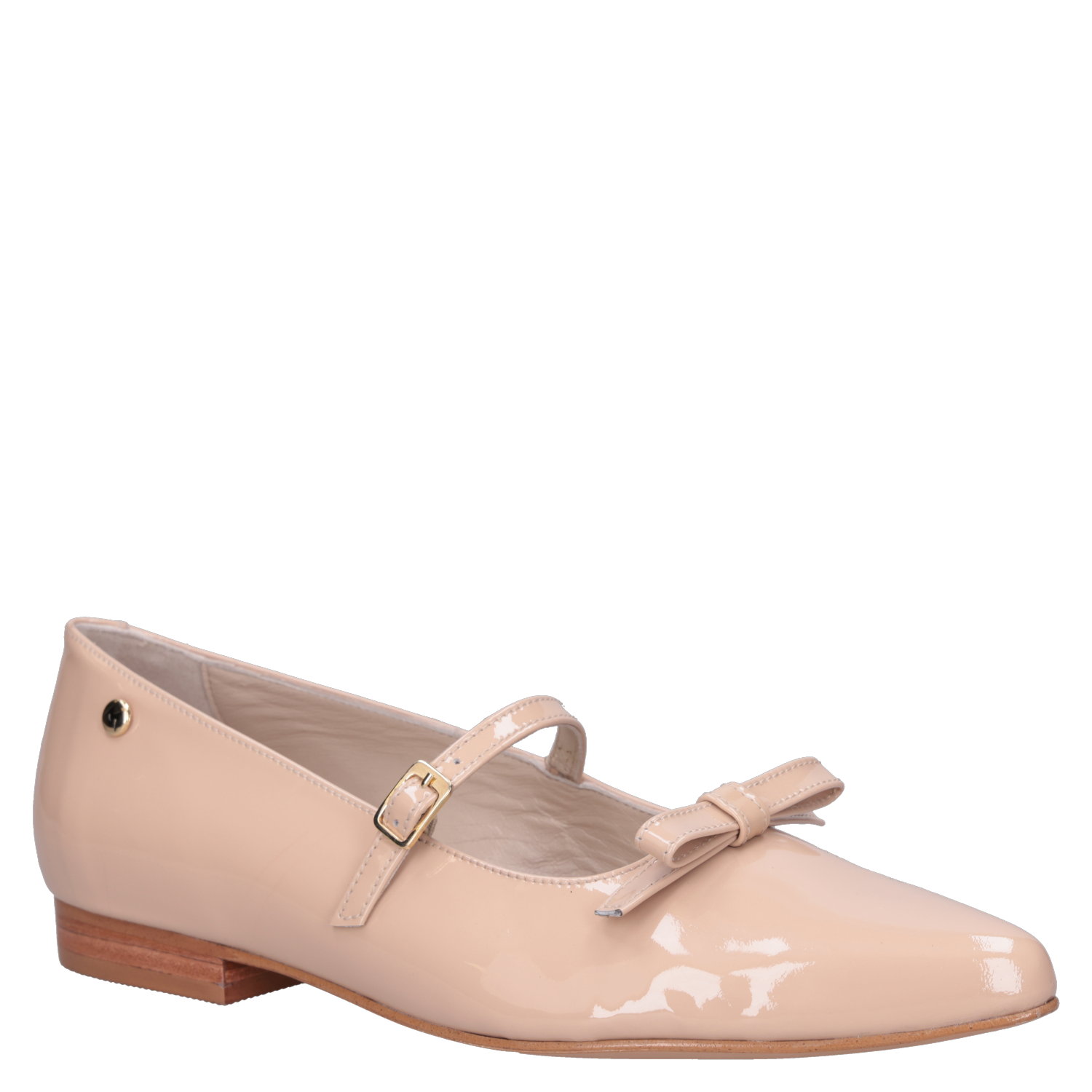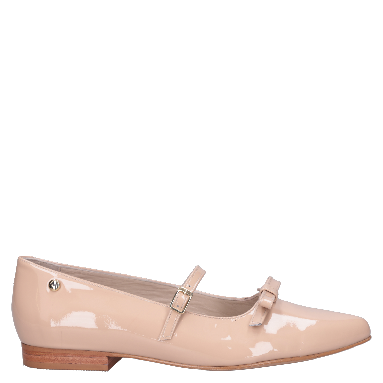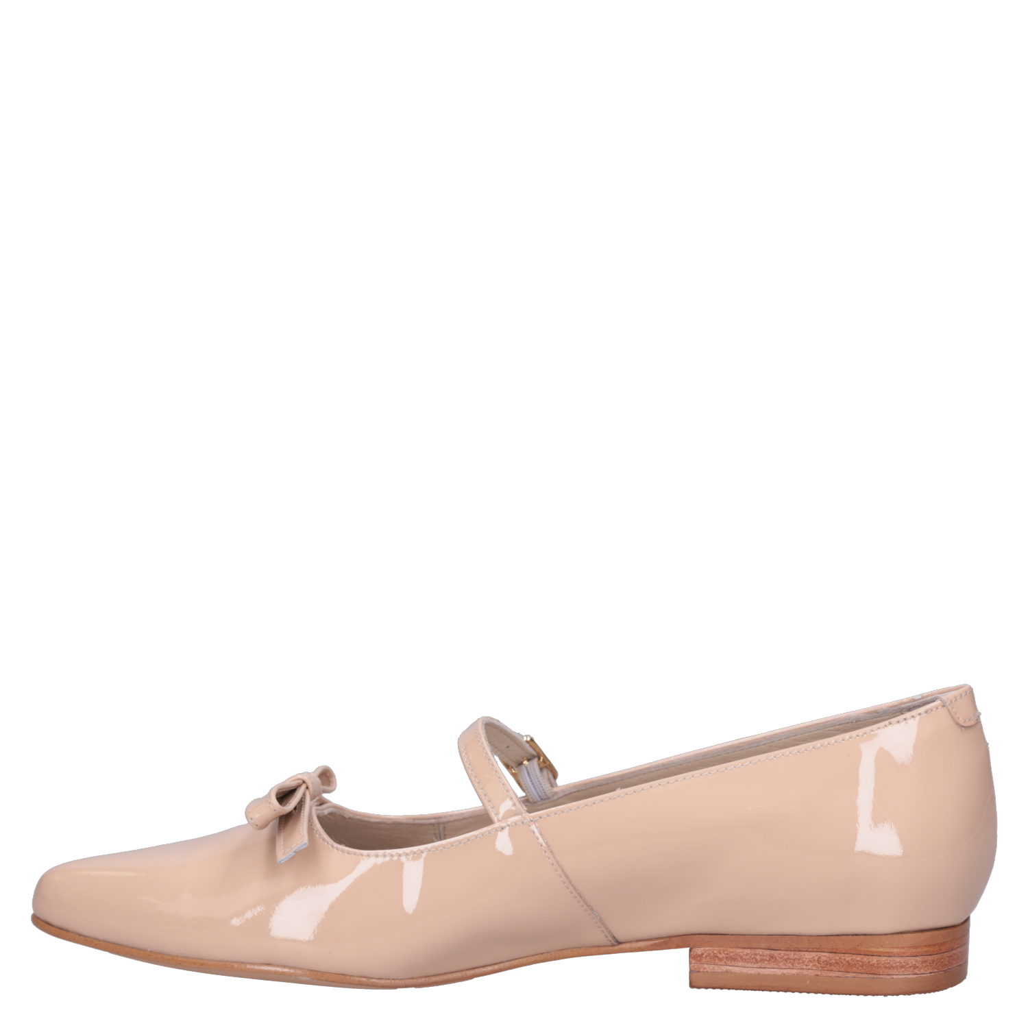 Zapato plano de cuero para mujer en color beige, de silueta estilizada con punta puntiaguda. Su taco plano de 2 cm ofrece un leve realce, mientras el forro de cuero acompaña el calce con sensación agradable. Diseño minimalista y versátil para looks limpios y modernos, ideal para transitar del día a la noche con estética pulida.