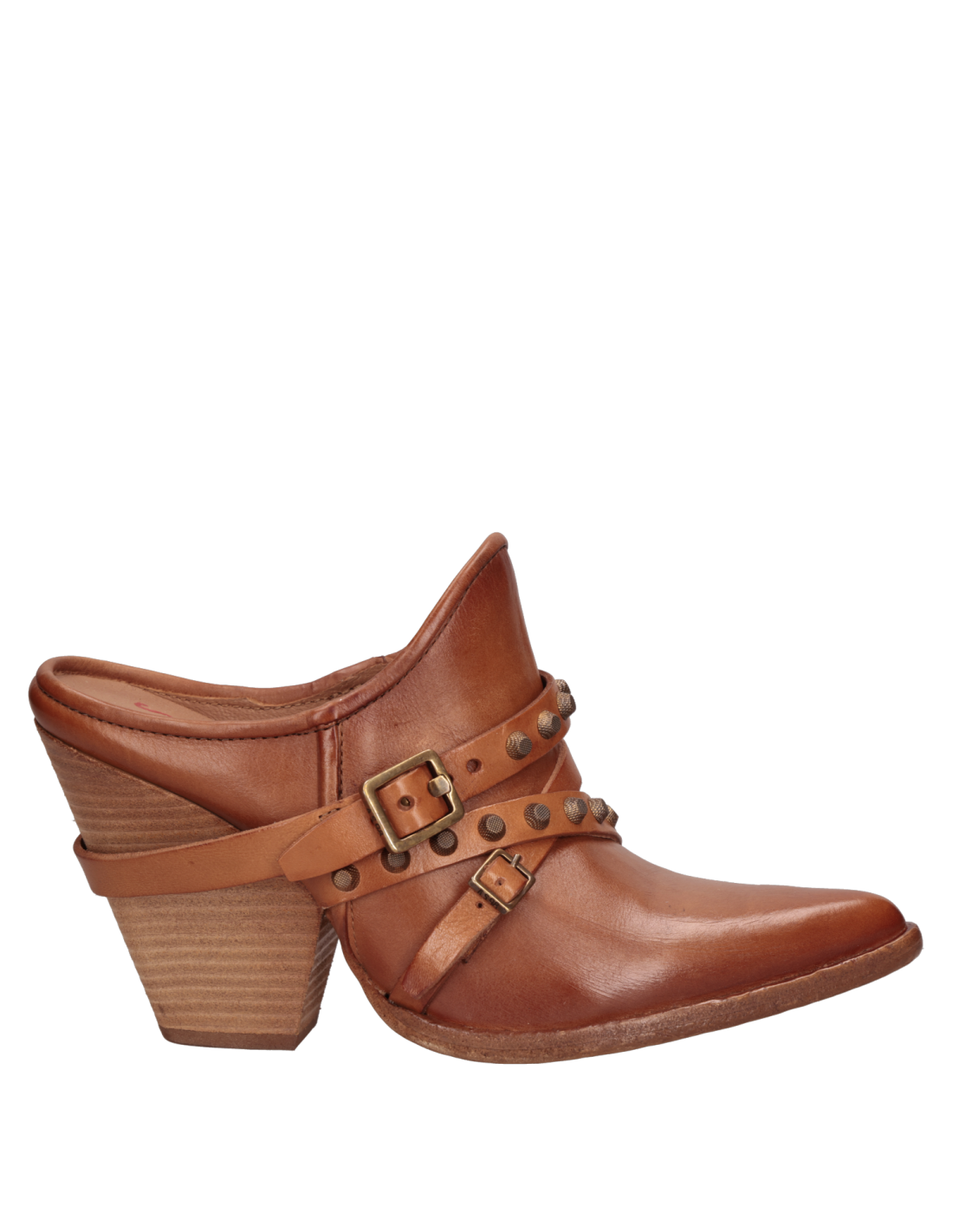 Zapato de salón de cuero para mujer en color camel, con taco bloque de 9,8 cm y punta puntiaguda. Forrado en cuero, muestra líneas limpias y un acabado sobrio que aporta un toque sofisticado a tus looks, desde la oficina hasta una salida de noche.