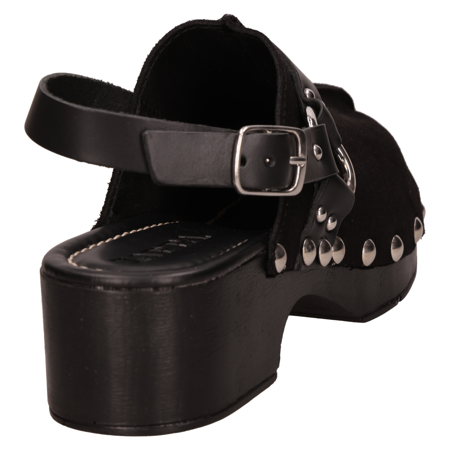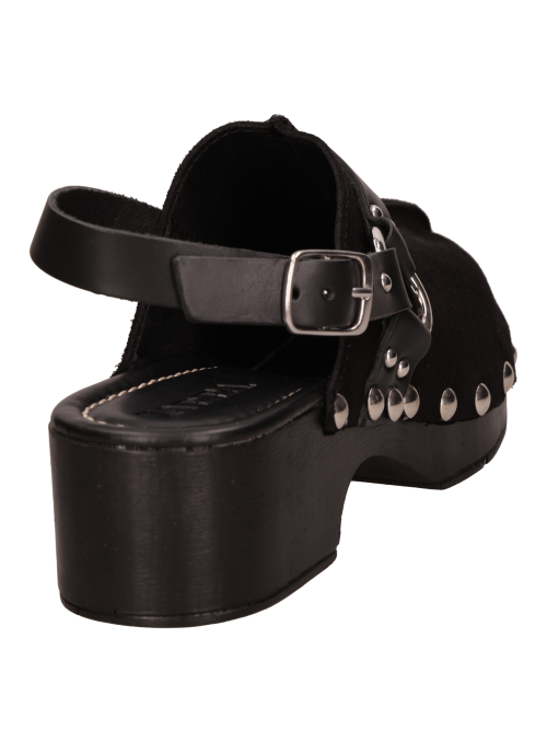 Zapato de taco bloque para mujer en color negro, confeccionado en cuero con punta redonda y terminaciones limpias. Su taco de 6 cm entrega altura moderada y estabilidad, mientras el interior sin forro favorece una sensación ligera y flexible.