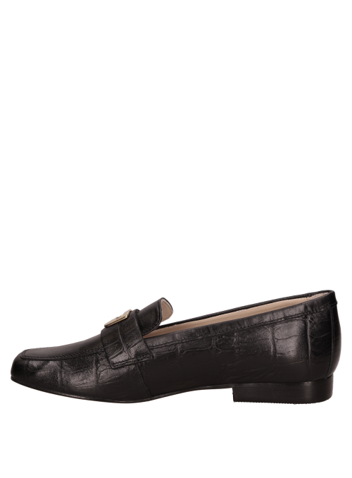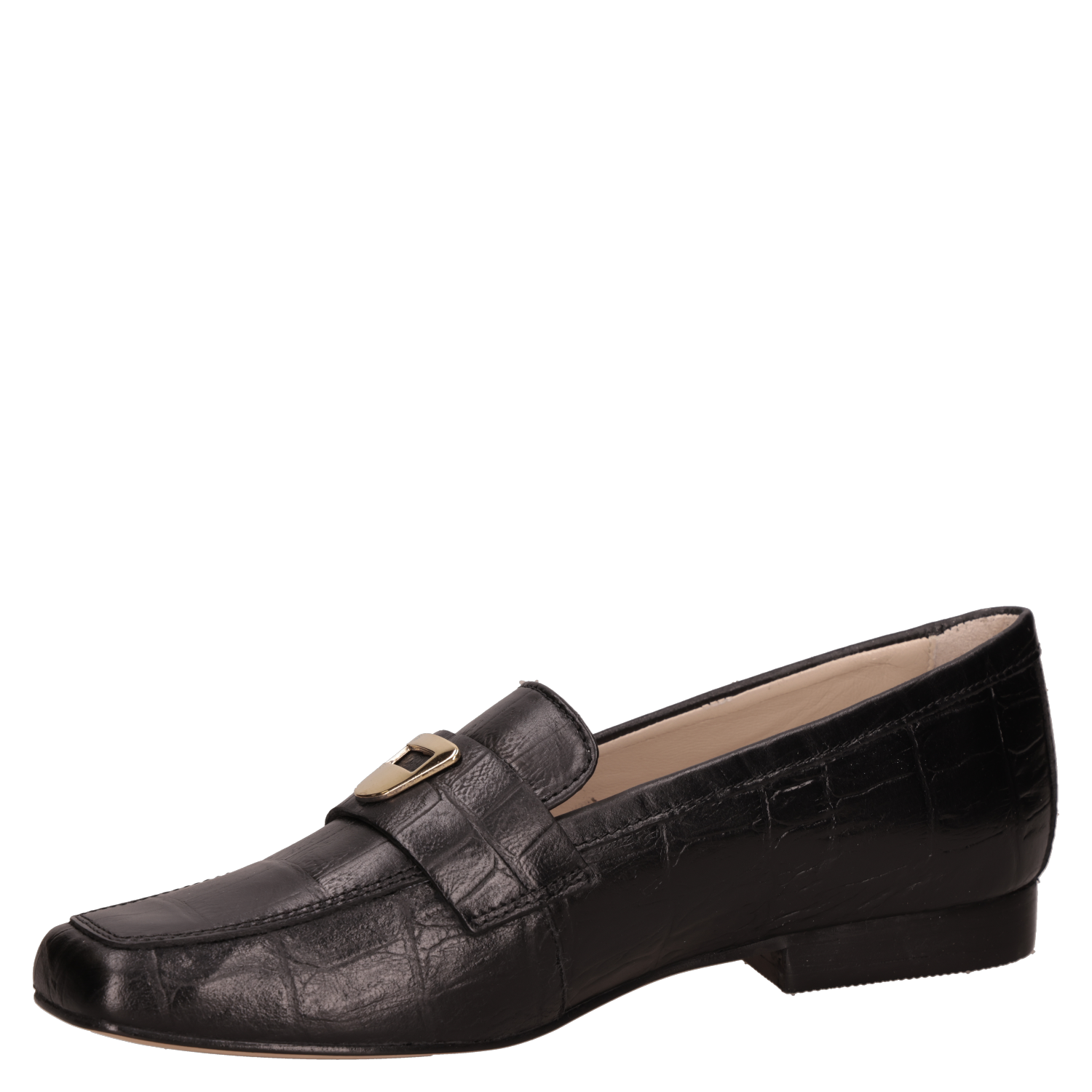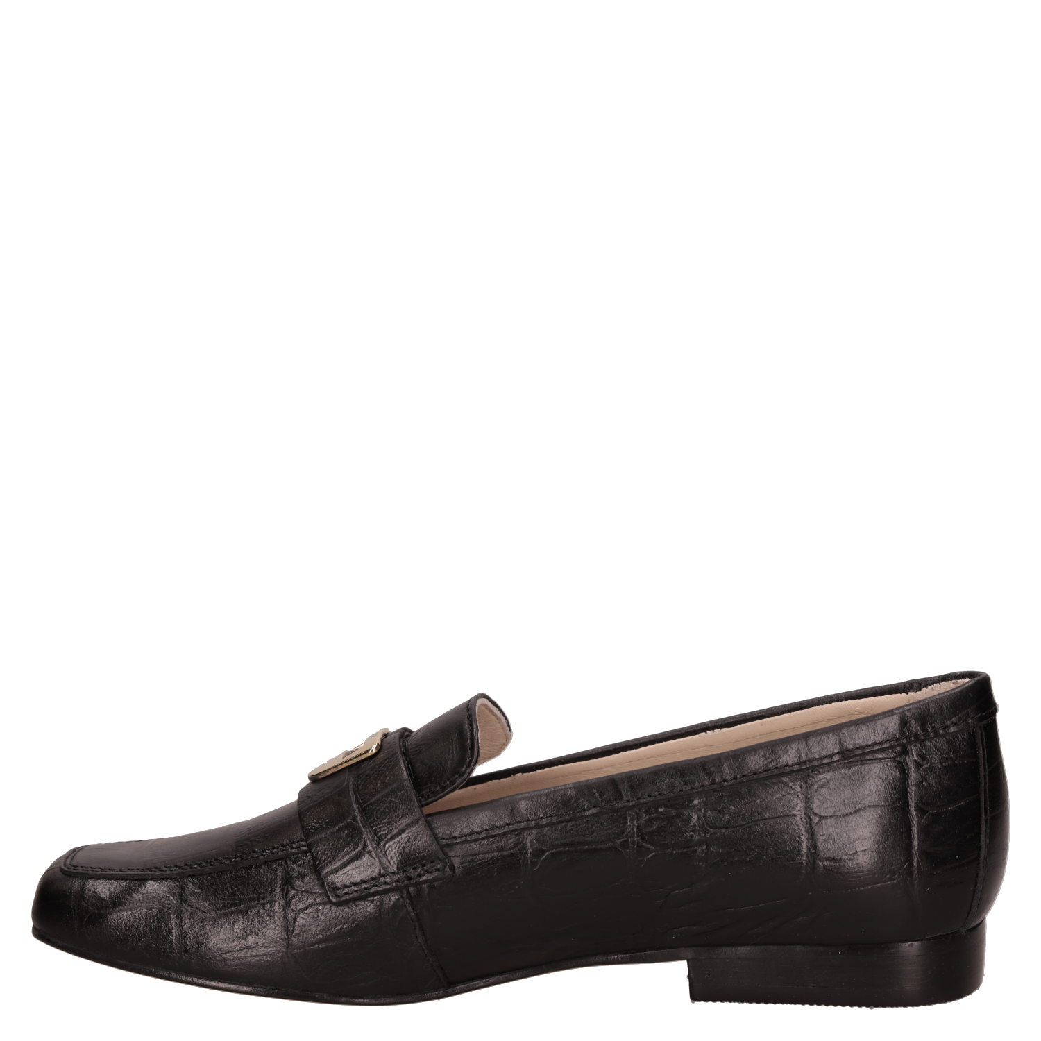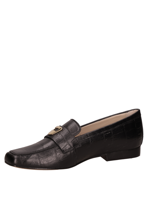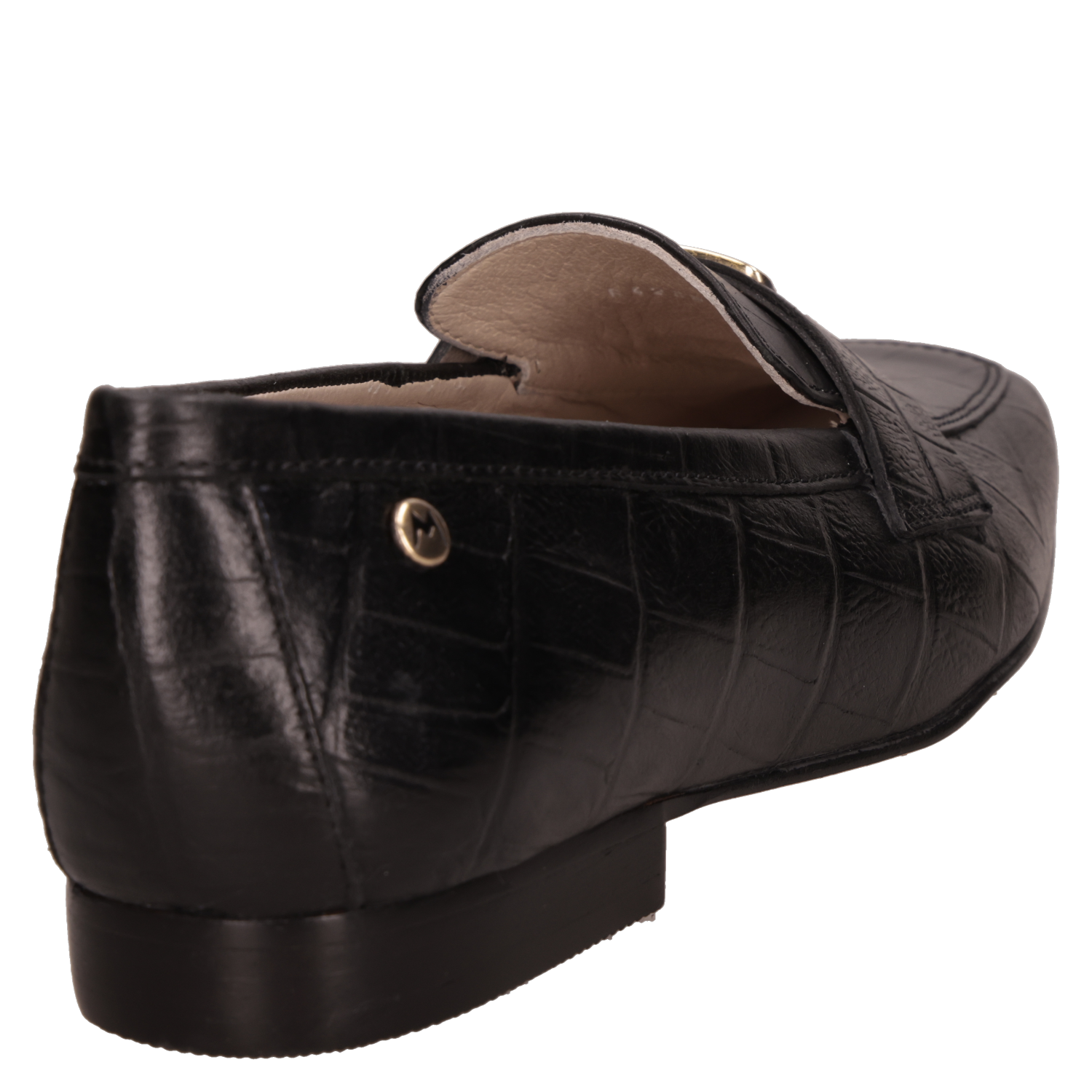 Mocasín de cuero para mujer en color negro, con punta cuadrada y taco de 2 cm. Su exterior y forro de cuero aportan un acabado sobrio y duradero, mientras la silueta minimalista ofrece un toque contemporáneo fácil de combinar.