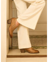 Este zapato de mujer Bruno Rossi, en un cálido tono camel, fusiona cuero de alta calidad con un toque de gamuza, creando un acabado sofisticado. Su diseño de taco bloque de 6 cm proporciona un estilo funcional y cómodo sin sacrificar la elegancia. La punta puntiaguda añade un aire moderno que resalta la silueta. Ideal para combinar con un vestido casual o jeans, este calzado se adapta a cada versión de la mujer empoderada que busca marcar la diferencia en su día a día.