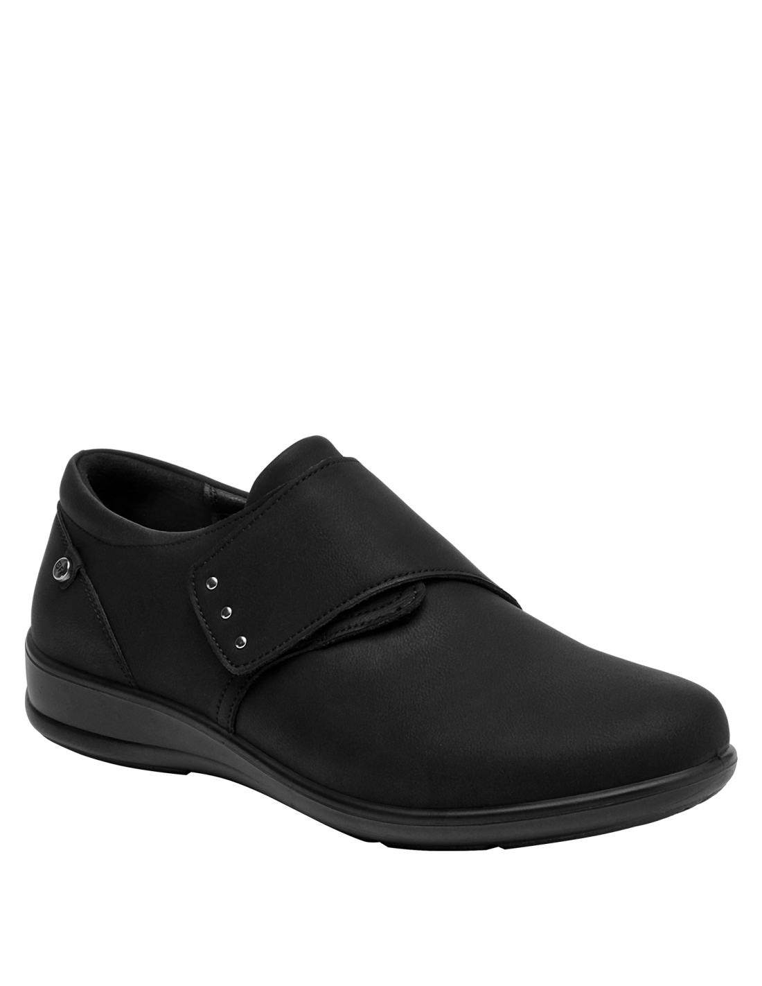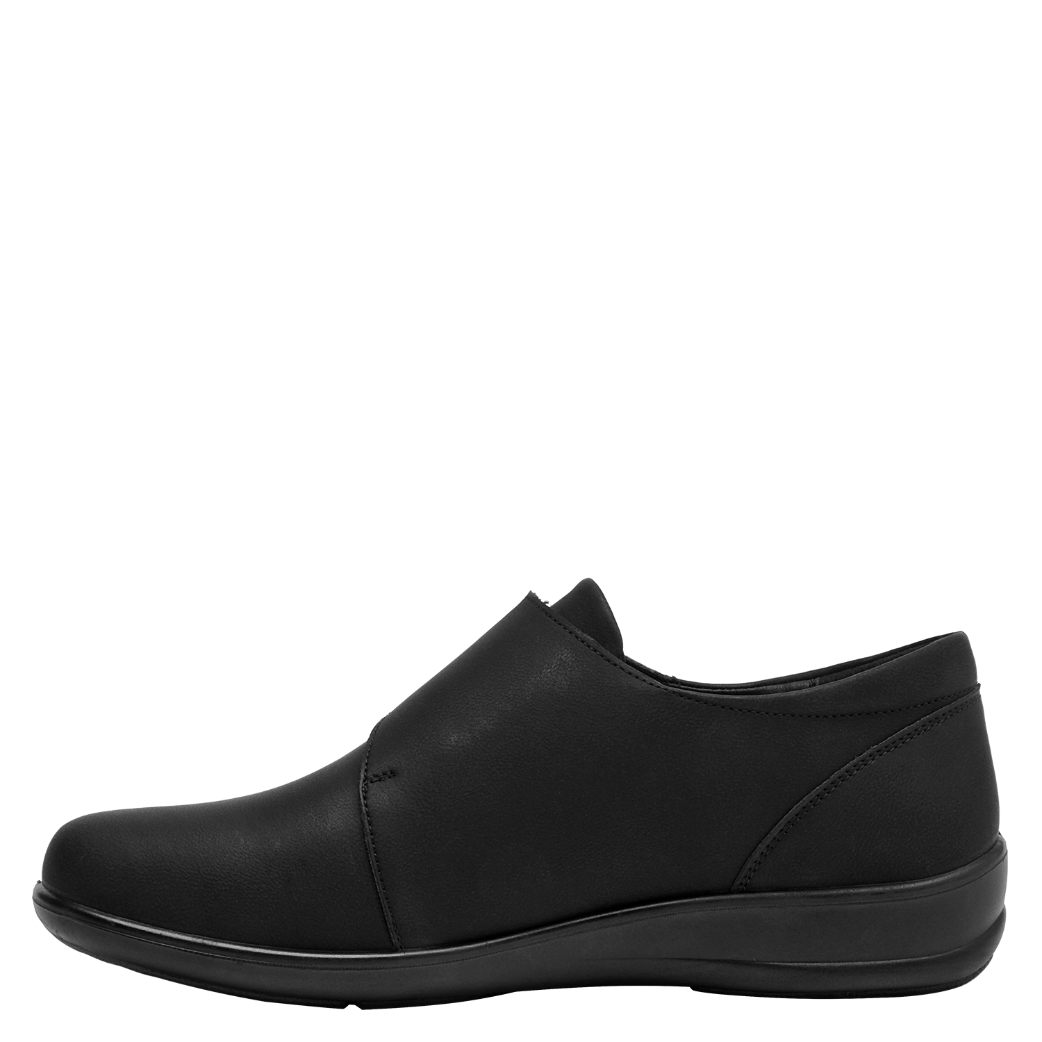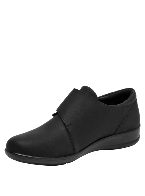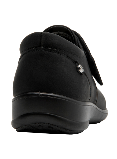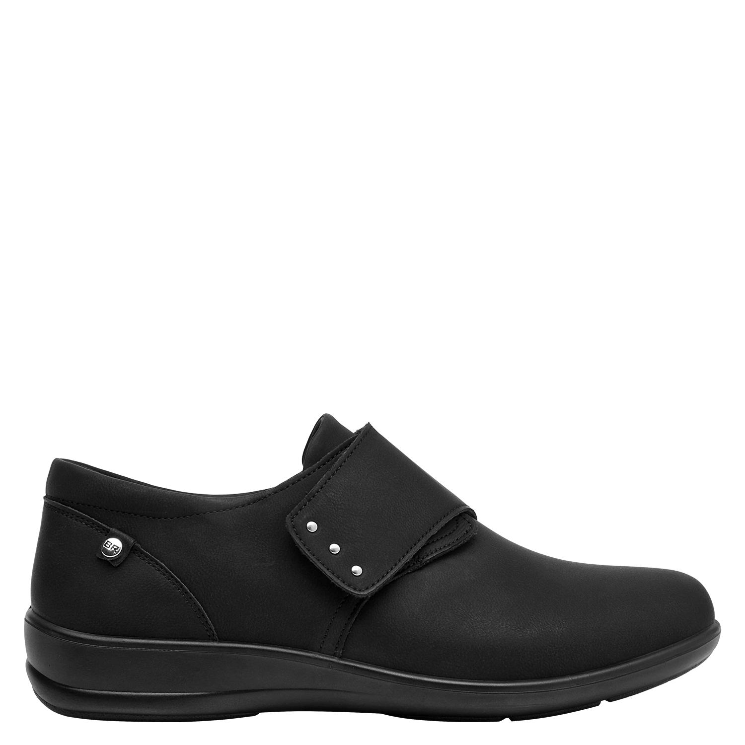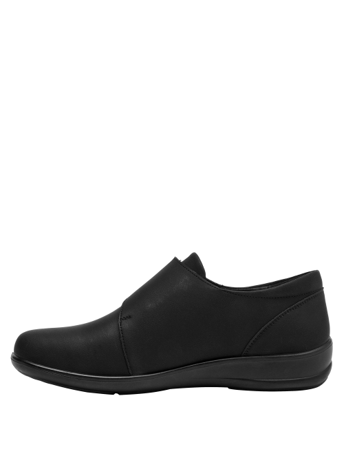 Zapato plano de cuero para mujer en color negro, de diseño depurado y versátil. Presenta punta redonda, taco de 3 cm que aporta una leve elevación, forro sintético/textil para un interior suave y terminaciones prolijas con costuras discretas. Su silueta minimalista lo hace ideal para uso diario o para elevar looks sencillos sin recargar.