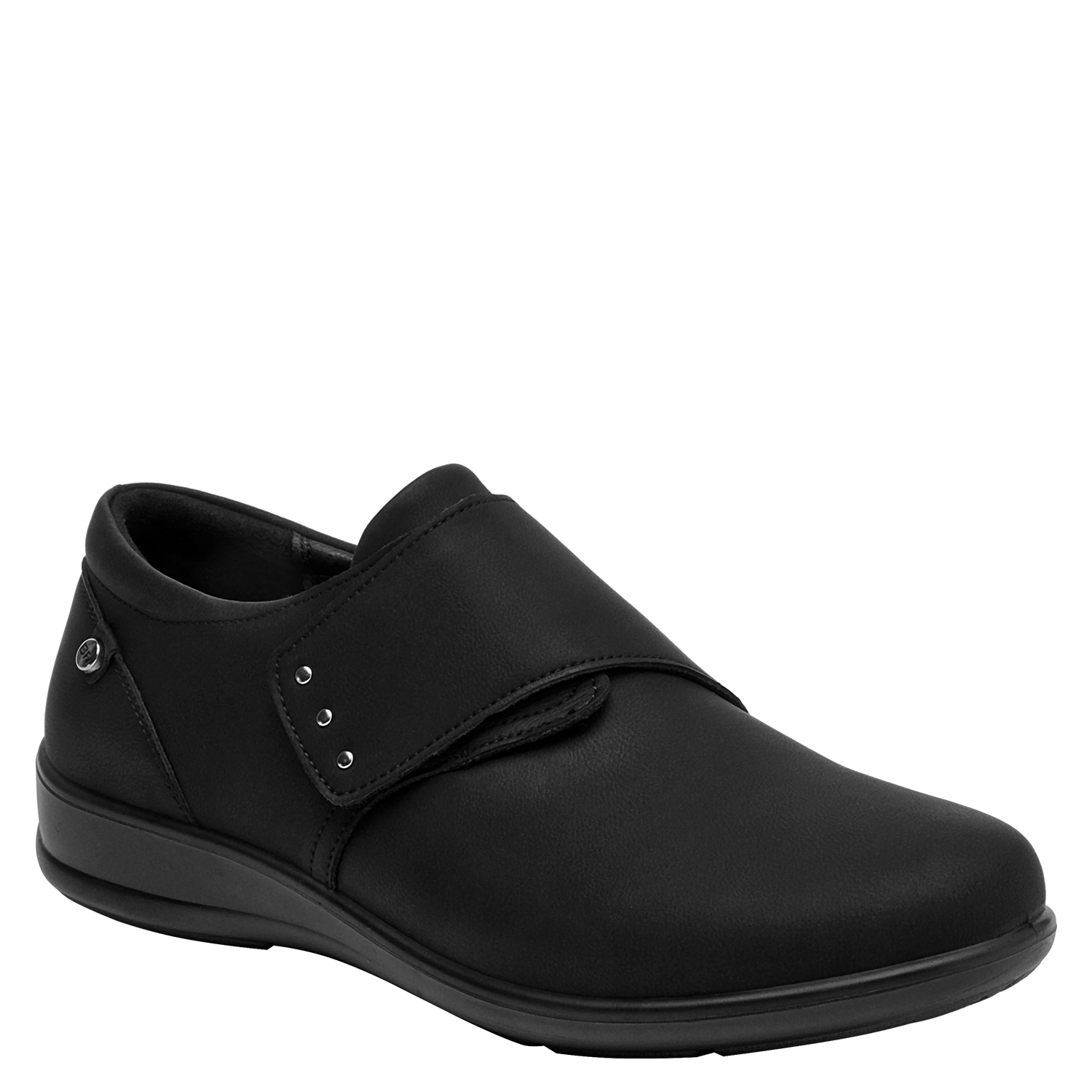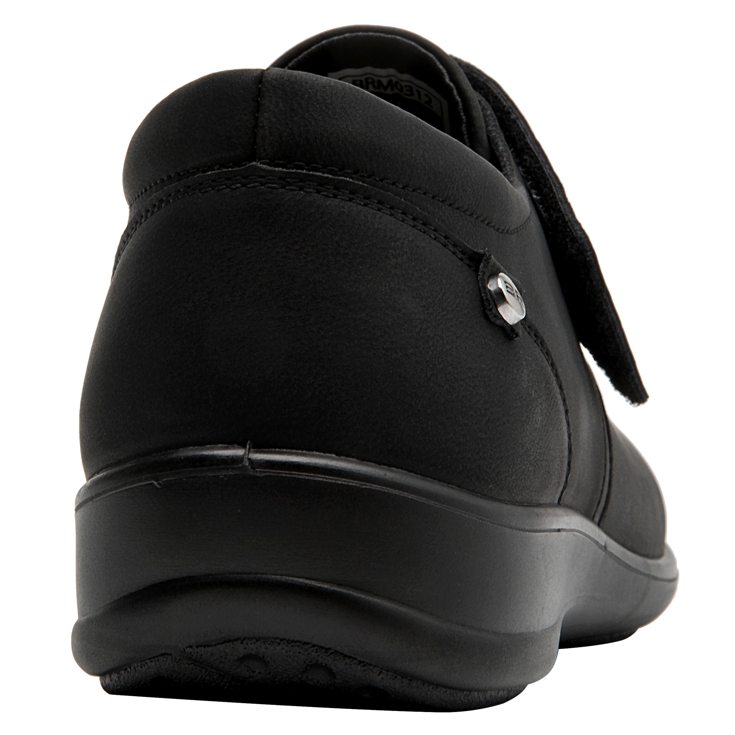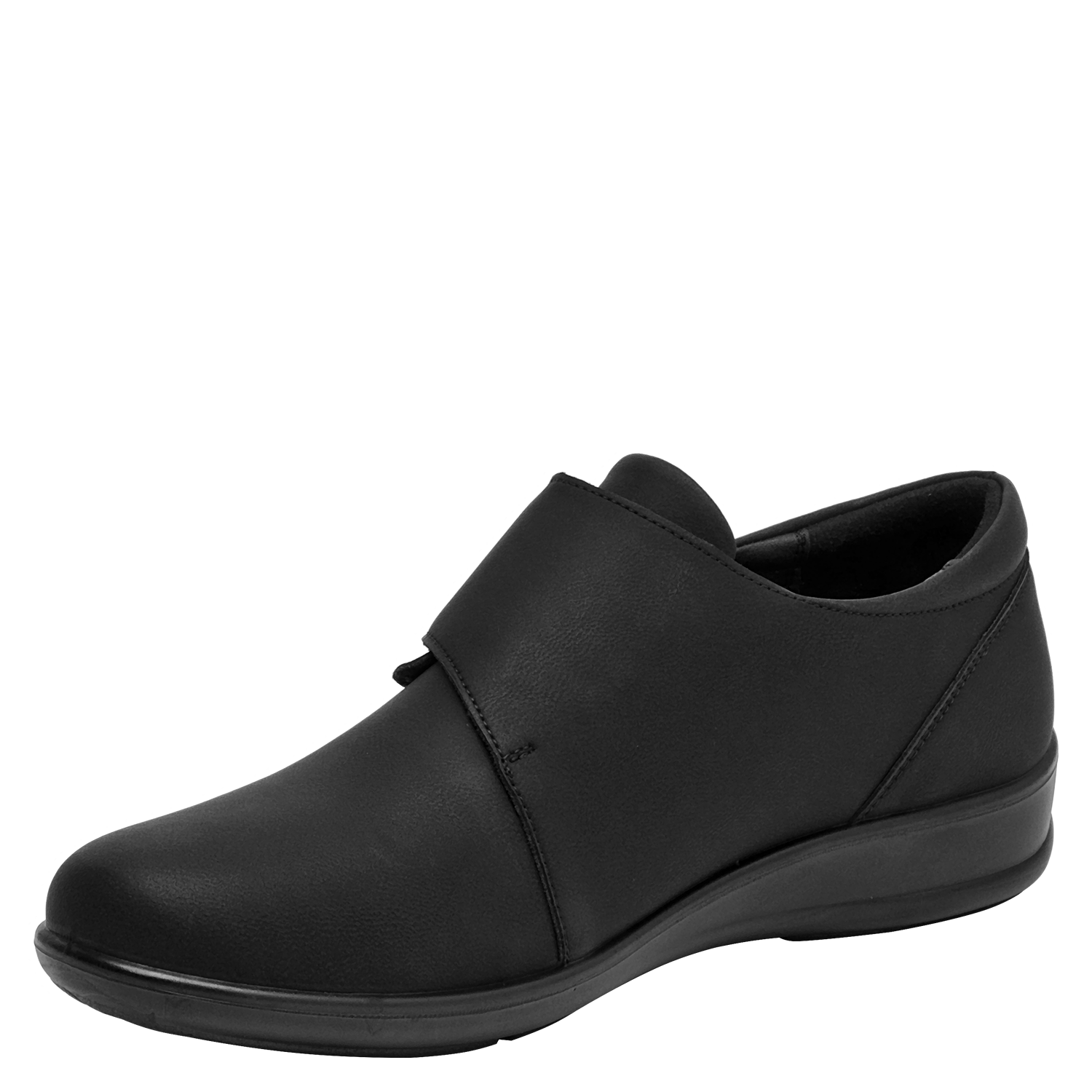 Zapato plano de cuero para mujer en color negro, de diseño depurado y versátil. Presenta punta redonda, taco de 3 cm que aporta una leve elevación, forro sintético/textil para un interior suave y terminaciones prolijas con costuras discretas. Su silueta minimalista lo hace ideal para uso diario o para elevar looks sencillos sin recargar.