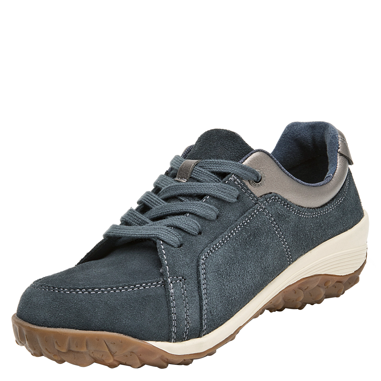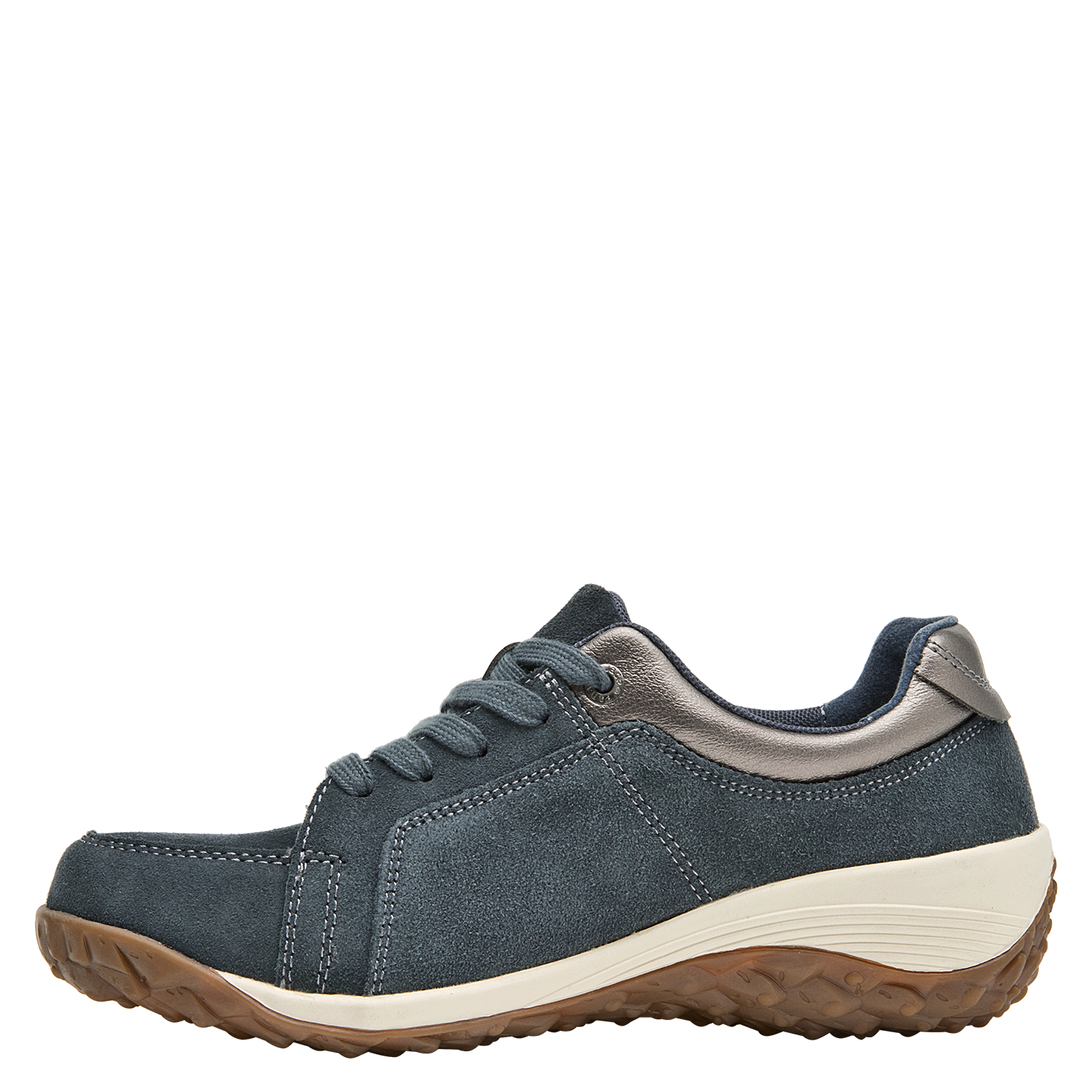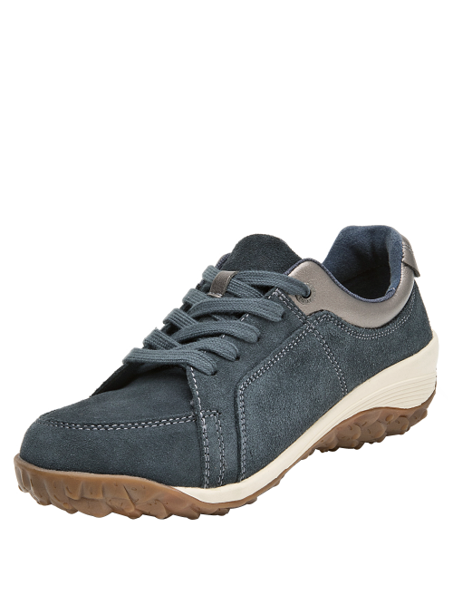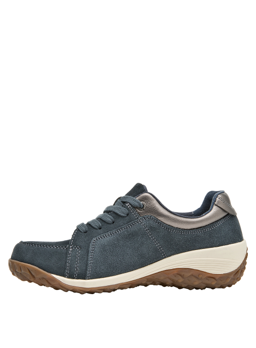 Zapato casual de cuero para mujer en color azul, con punta redonda y suela plana de 5 cm que aporta un look moderno tipo plataforma. Presenta acabado liso, forro sintético, costuras discretas y un diseño minimalista que se adapta a distintos estilos. La línea limpia y la altura uniforme de la suela refuerzan una estética urbana depurada.