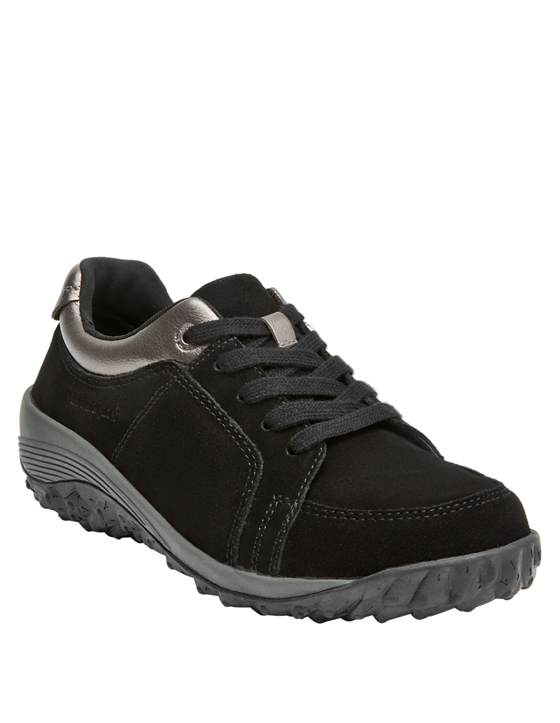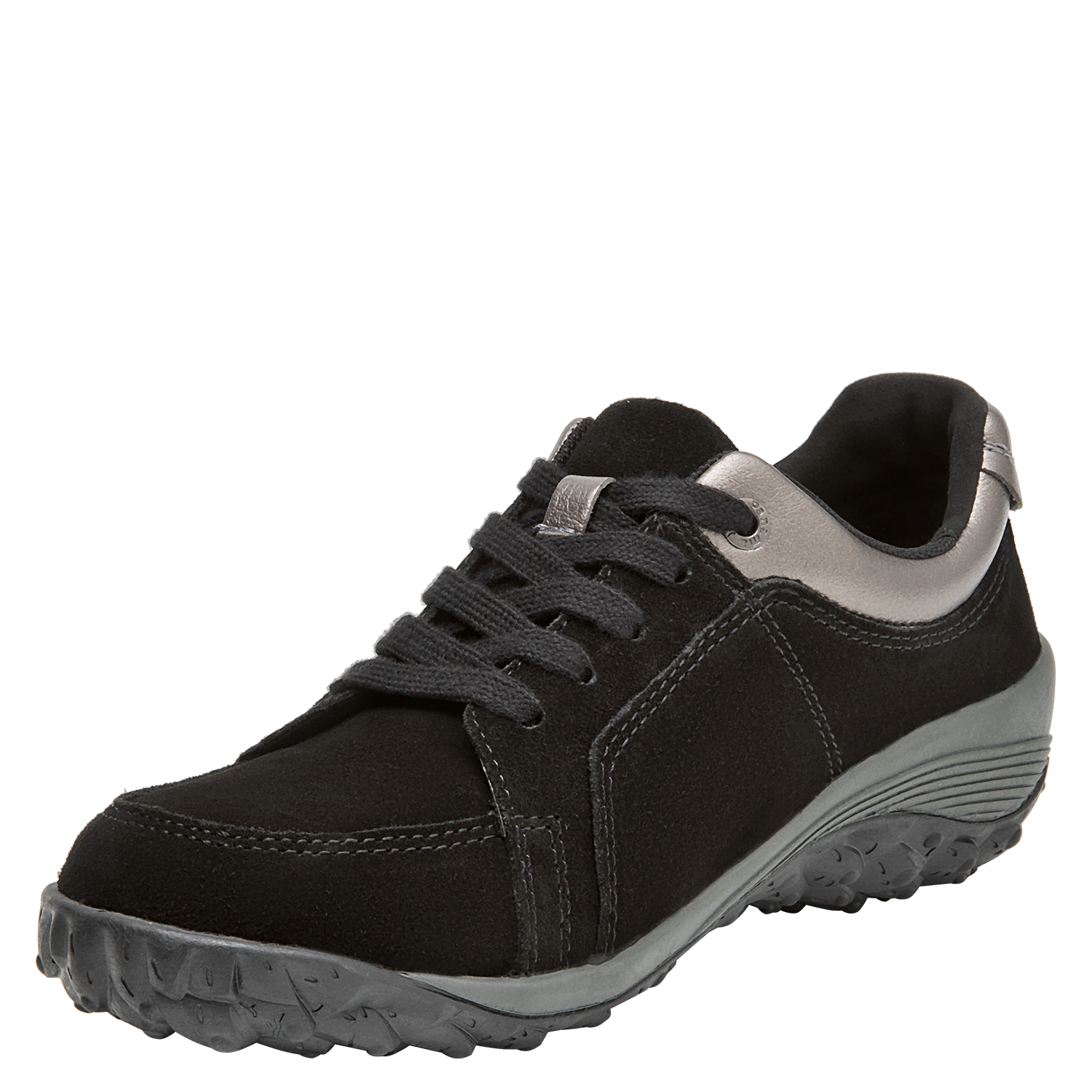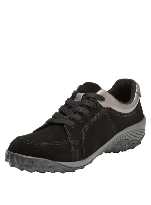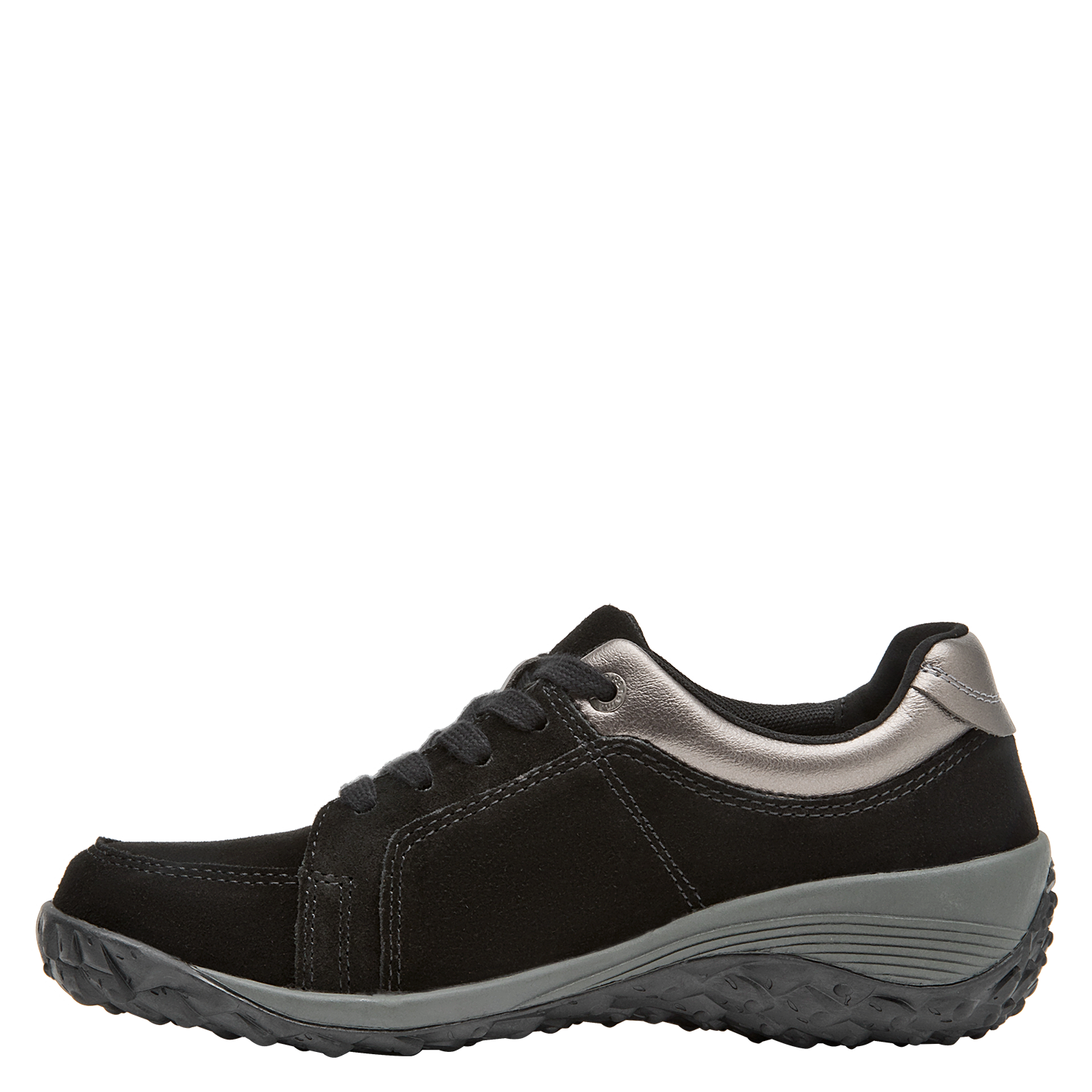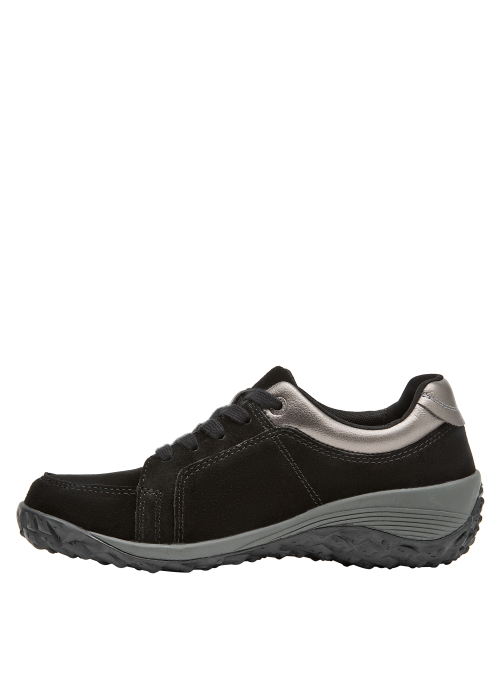 Zapato casual de cuero para mujer en color negro, con punta redonda y taco plano de 5 cm que aporta un perfil equilibrado. Presenta acabados pulidos y costuras discretas, mientras el forro sintético reviste el interior con una terminación prolija. Su línea limpia y versátil lo convierte en un básico infaltable para combinar en distintas ocasiones, del día a la tarde, con un estilo sobrio y actual.