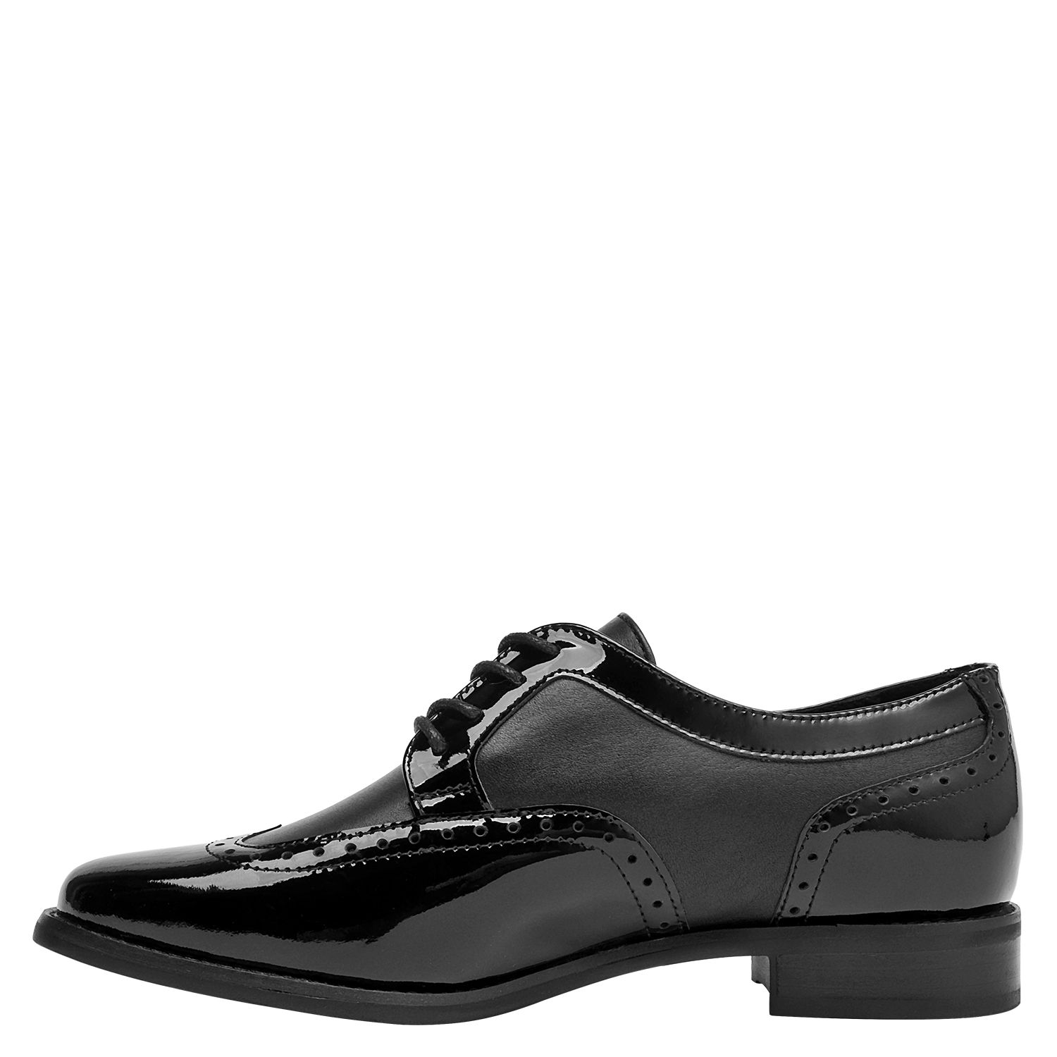 Zapato de cuero plano para mujer en color negro, con punta redonda y taco de 2,7 cm. Su forro On Steam y la construcción en cuero ofrecen un acabado prolijo y versátil, ideal para transitar del día a la tarde sin complicaciones, manteniendo un perfil sobrio que se adapta a distintos estilos.