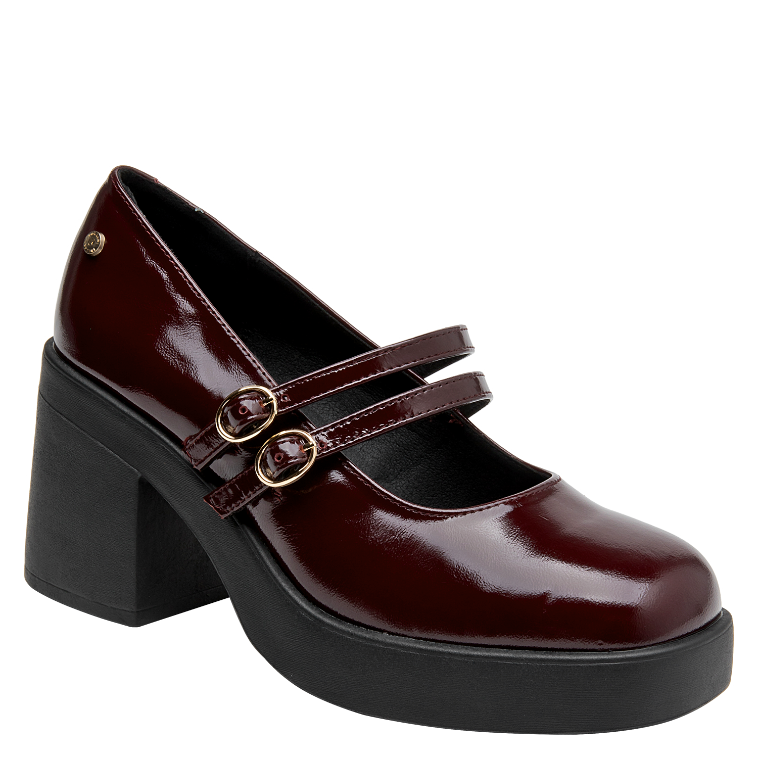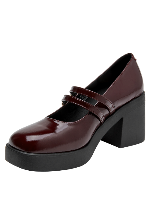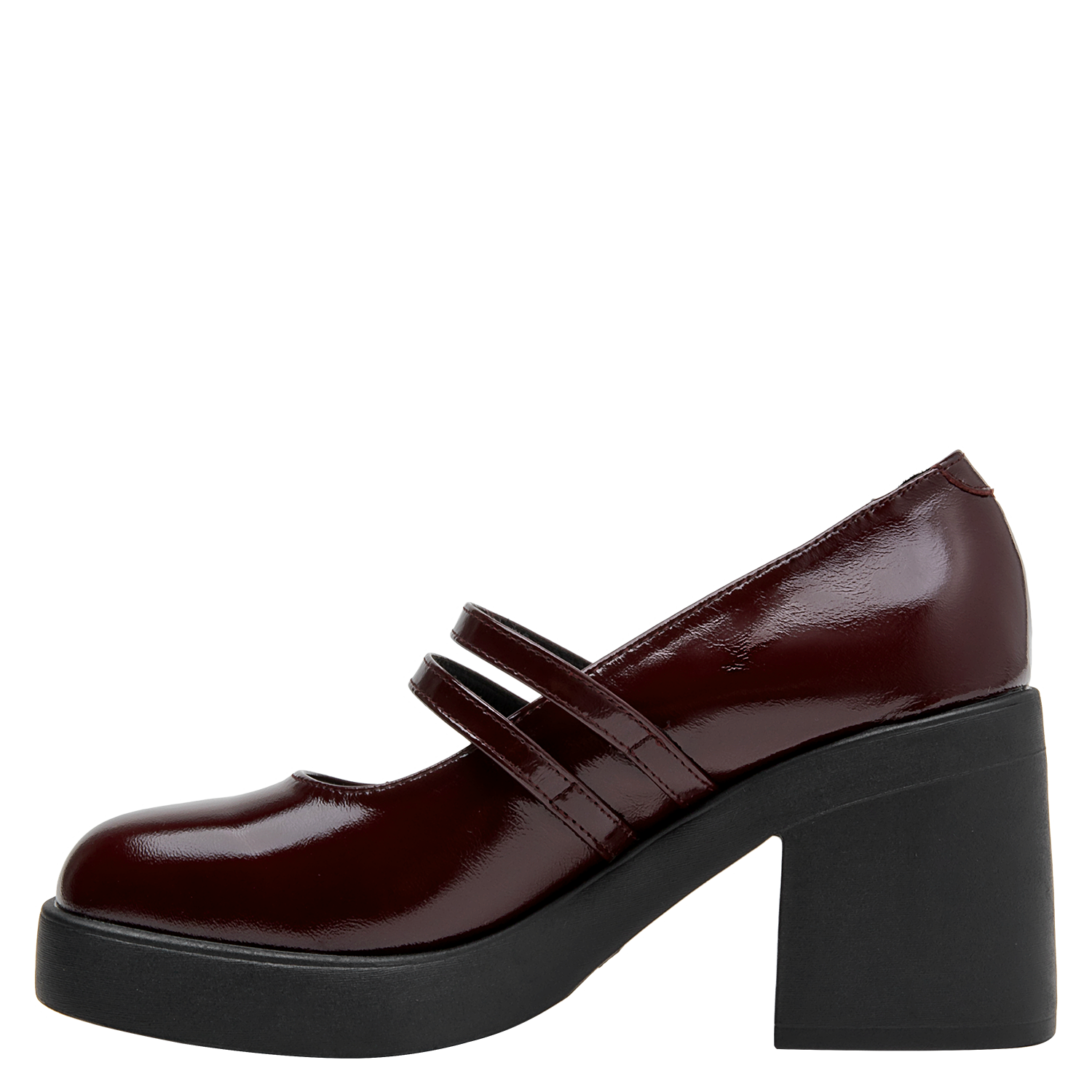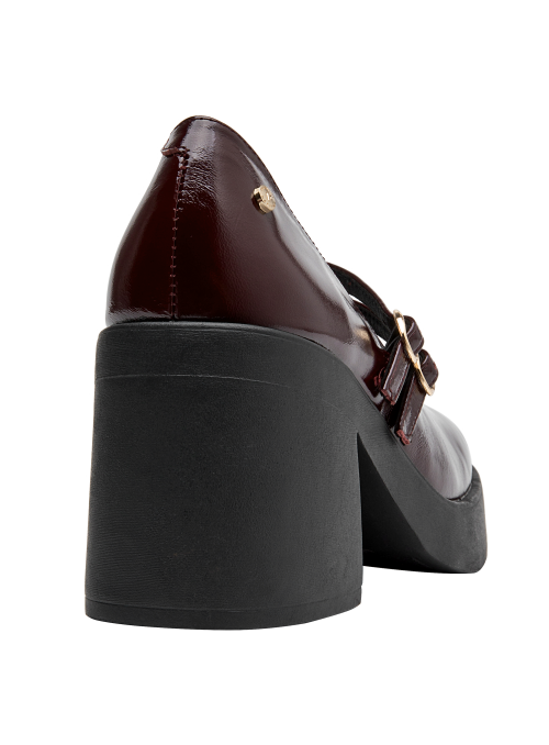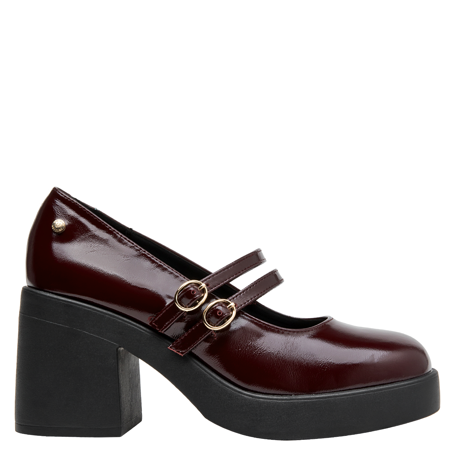 Zapato de tacón bloque de cuero en color burdeo, ideal para elevar tus looks con un toque moderno. Presenta punta cuadrada y un taco estable de 8,4 cm que estiliza con carácter, con acabado liso y forro técnico suave al tacto para una sensación agradable. Su silueta limpia y contemporánea lo vuelve una pieza versátil para múltiples ocasiones.
