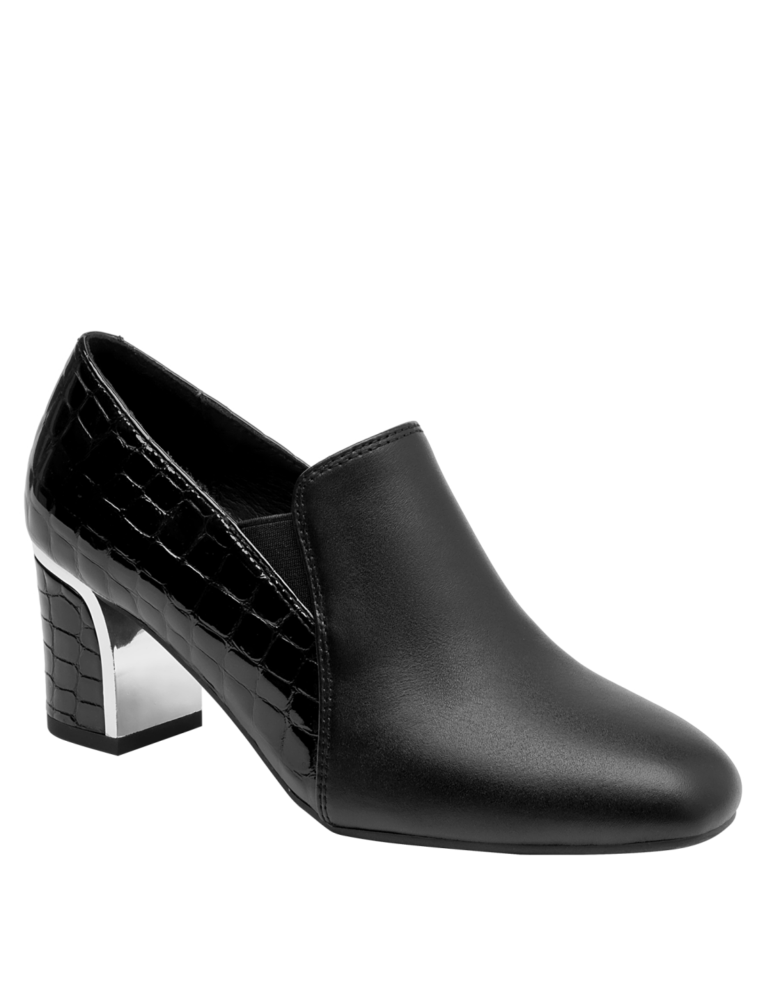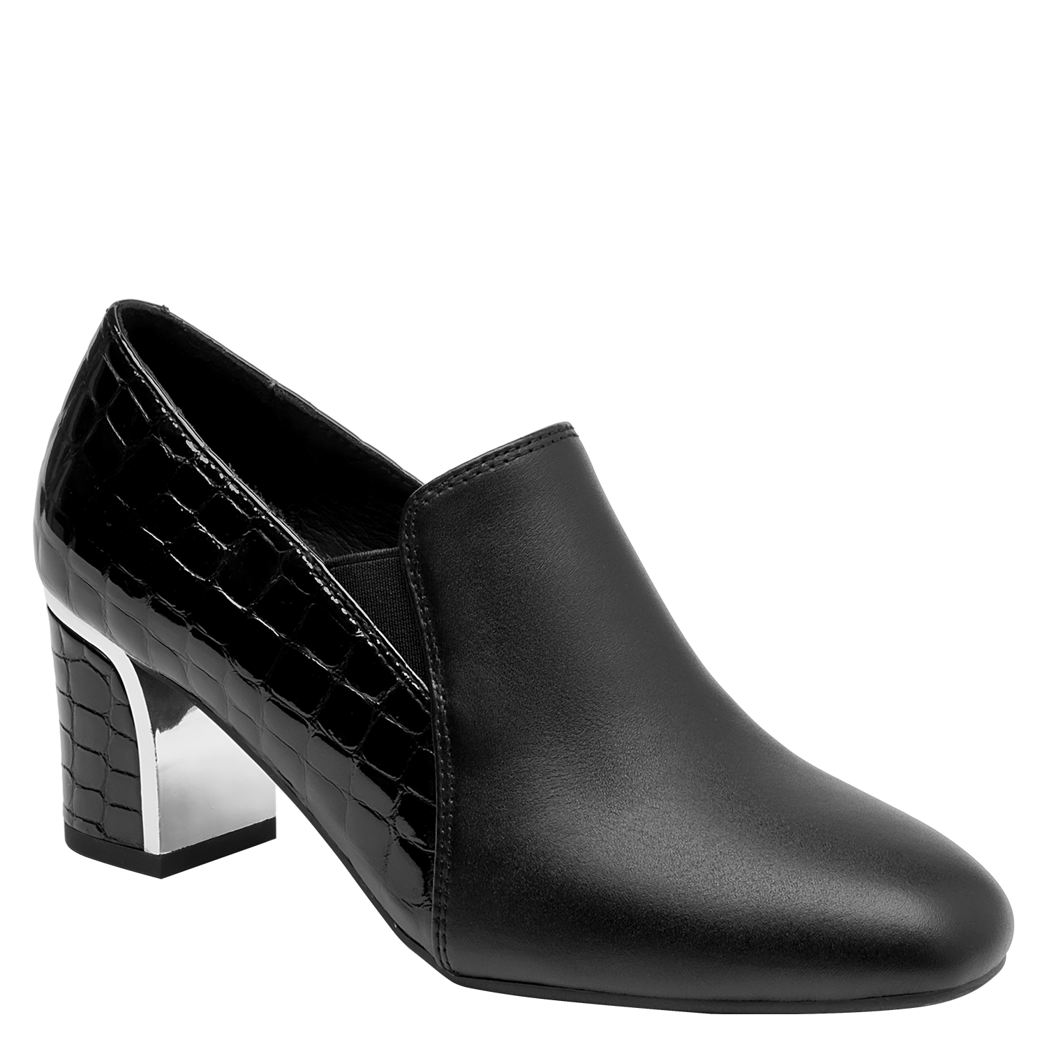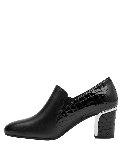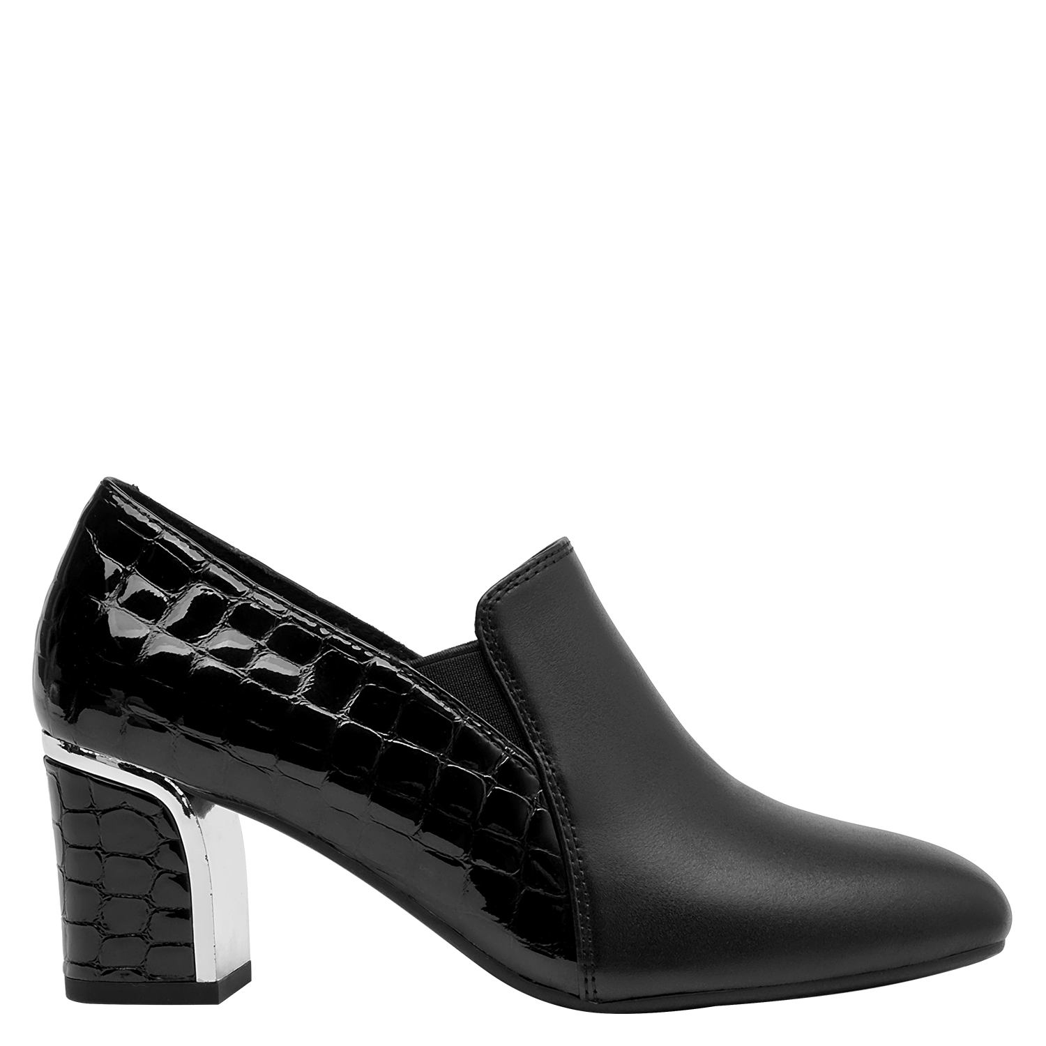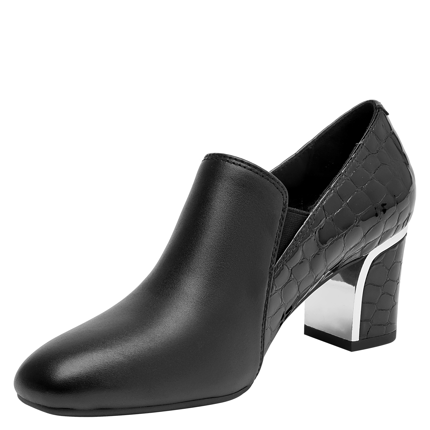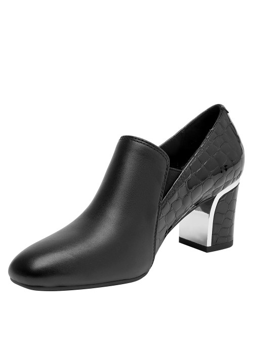 Botín de cuero para mujer en color negro, de estilo urbano y depurado. Presenta punta redonda y un taco bloque de 6.5 cm que favorece una pisada estable, con acabado liso y costuras discretas. El forro On Steam complementa su construcción en cuero, mientras la suela robusta acompaña el uso diario. Un diseño versátil que se adapta a distintas ocasiones.