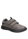 Calzado masculino urbano en gris oscuro, textil con etiqueta discreta, suela beige contrastante. Calzado masculino urbano en gris oscuro, textil con etiqueta discreta, suela beige contrastante.